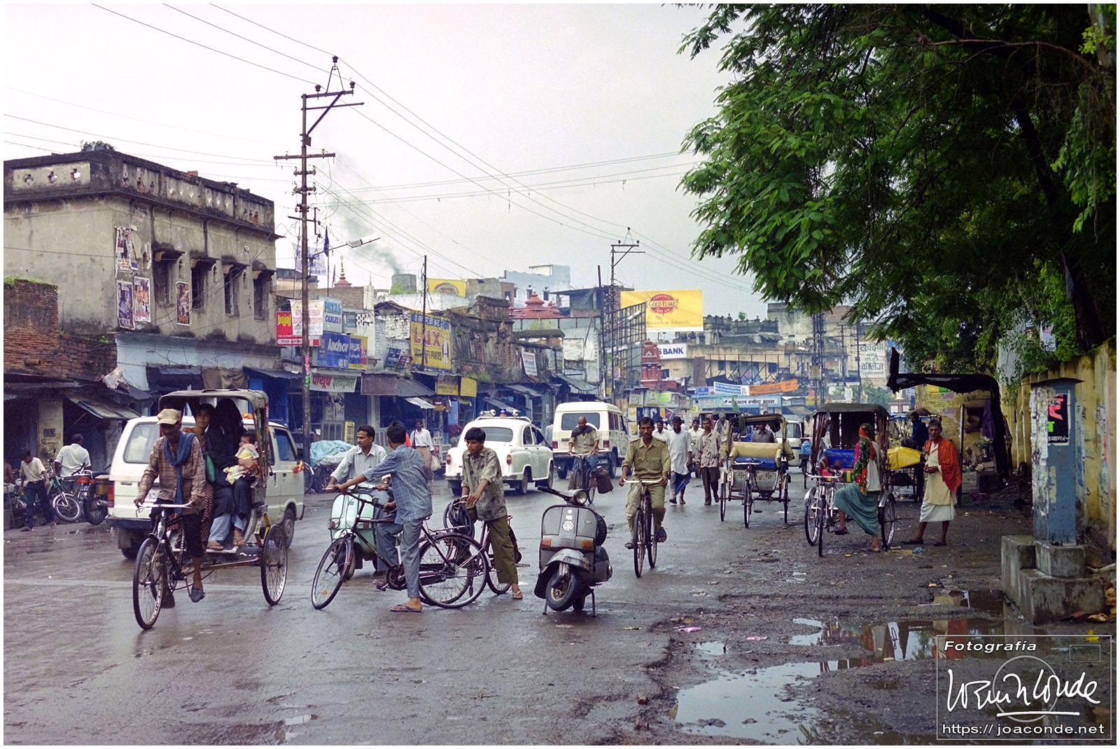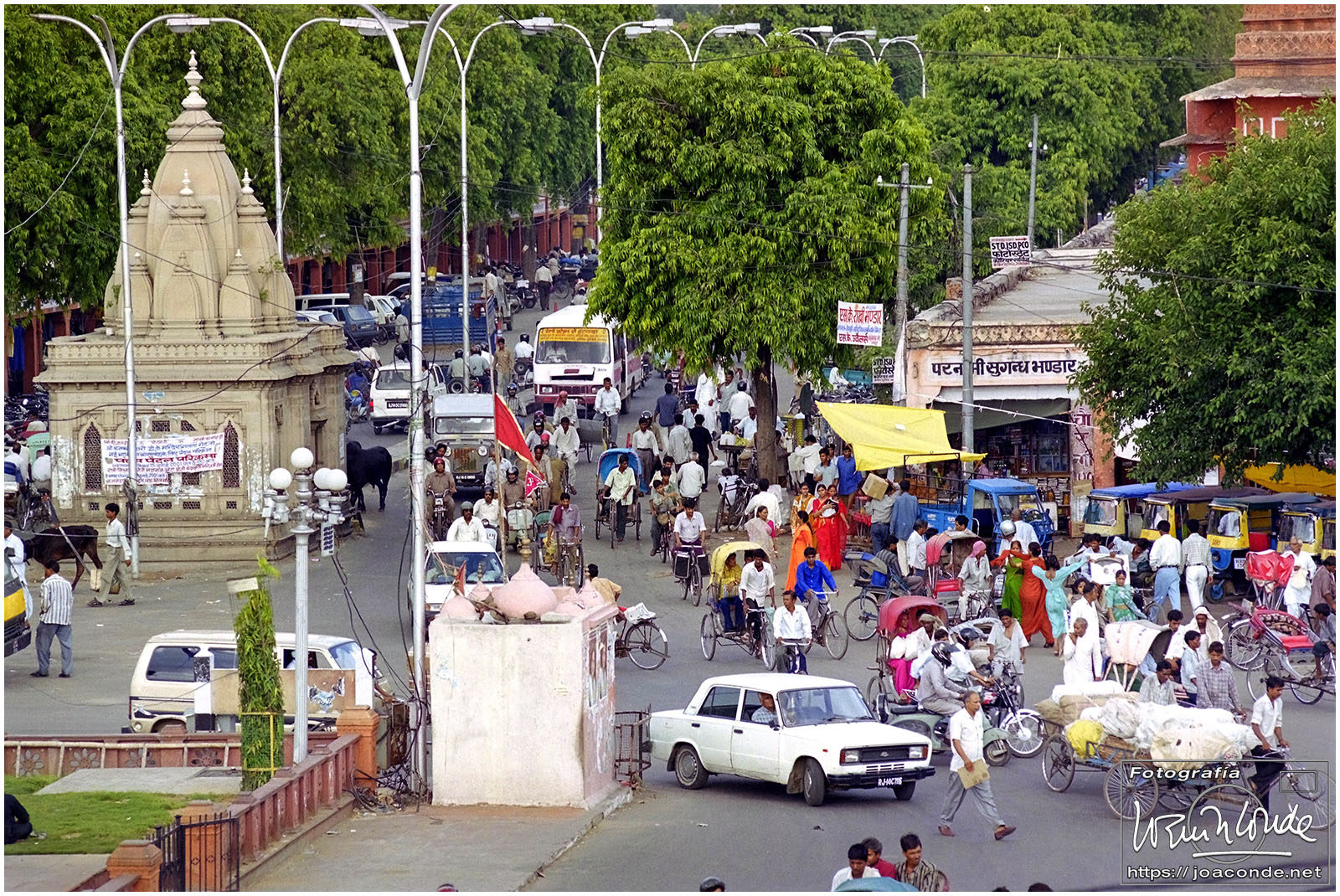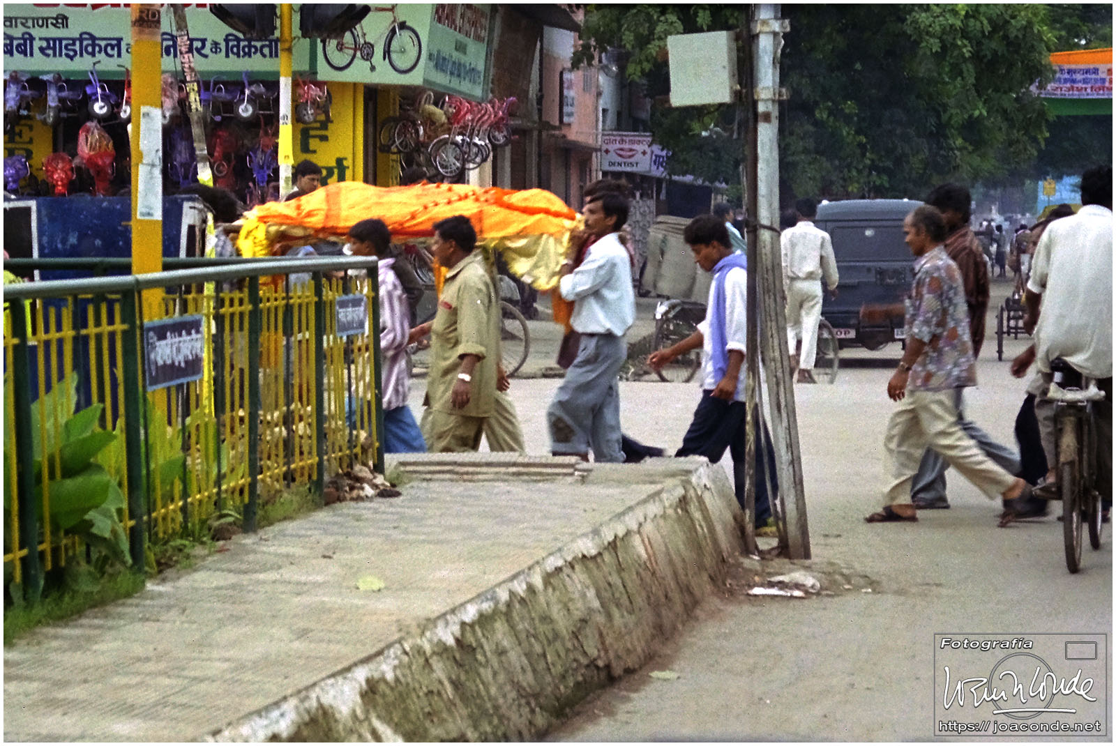 Volamos con Sahara Airlines a Benarés, la más sagrada de las 7 ciudades sagradas de la India. Camino al hotel Clarks vimos muchos peregrinos —yo los llamaba «los de las gaitas»— y algún que otro «entierro». Pasamos la tarde paseando entre atascos, vacas y montones de basura. A última hora fuimos a un telar; la seda, bonita y barata. Y nos acostamos muy temprano.