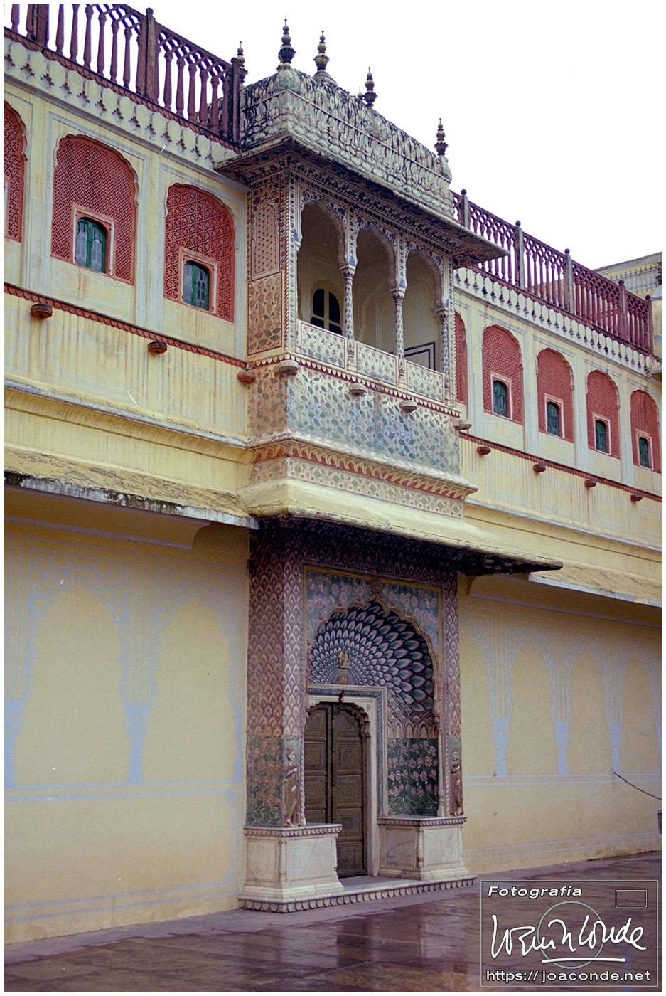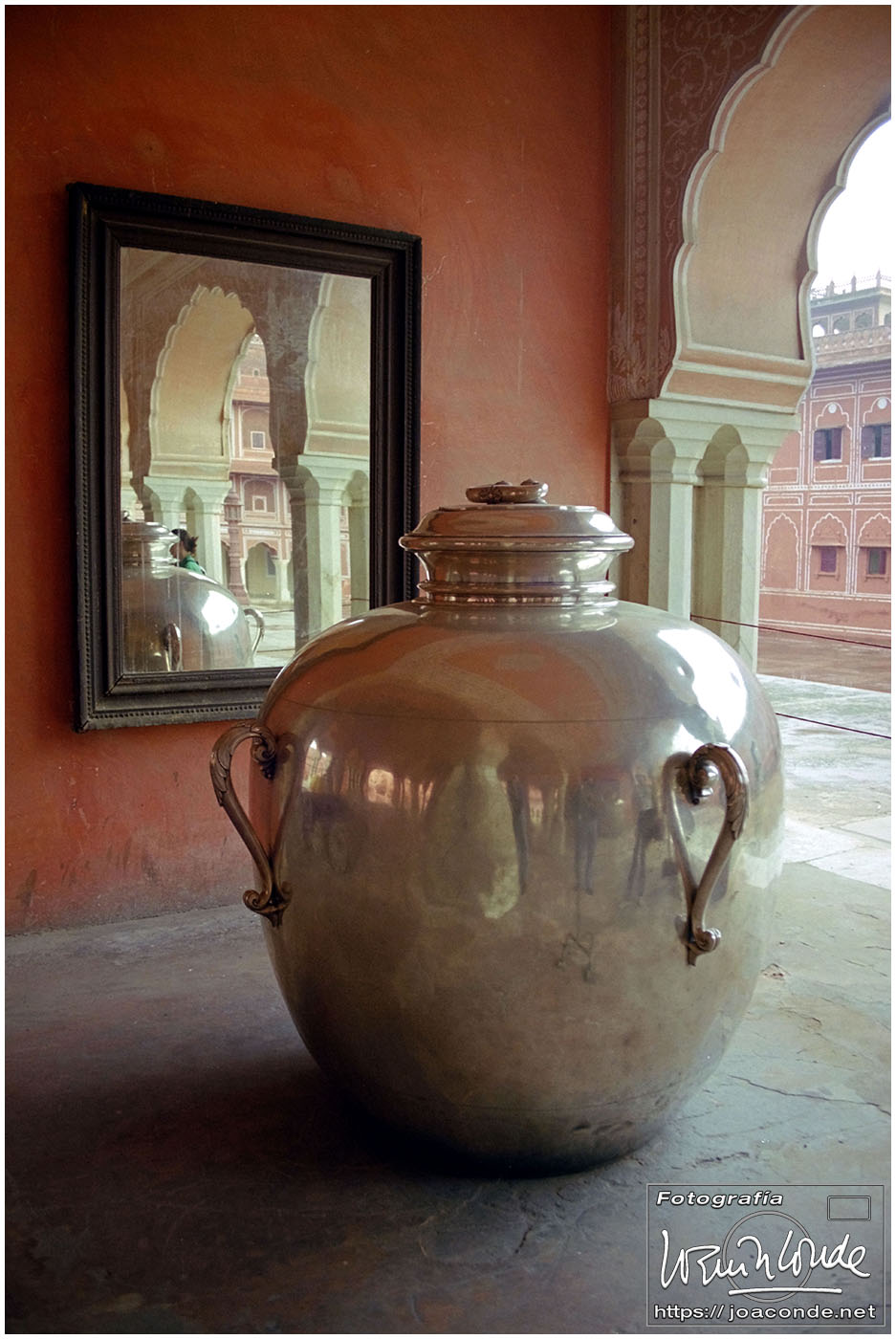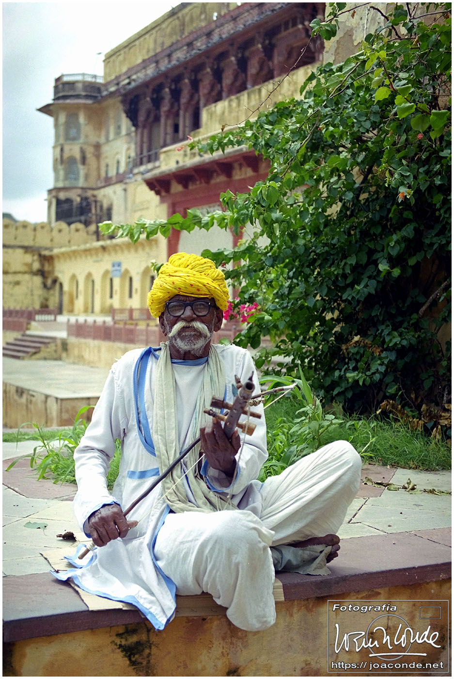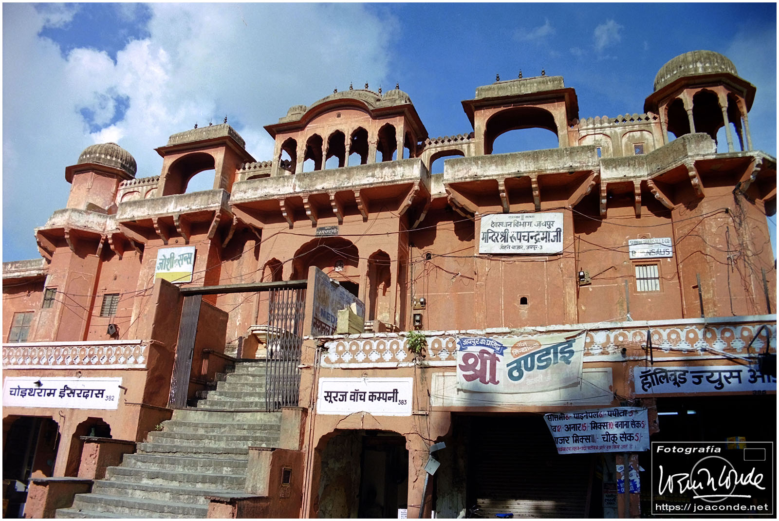 Por la tarde, después de comer —en la India todo lo cocinaban muy, pero que muy spicy— se puso a diluviar. Estábamos en el Observatorio Solar y solo pude hacer una foto de la torre. Entonces entramos en el Palacio de Jaipur, parte de la residencia del Marajá que se podía visitar. Después echamos un rato con un encantador de serpientes —a ver si le cogía el truco— y fuimos a un taller donde engastaban joyas. Los zafiros de Cachemira estaban a muy buen precio.