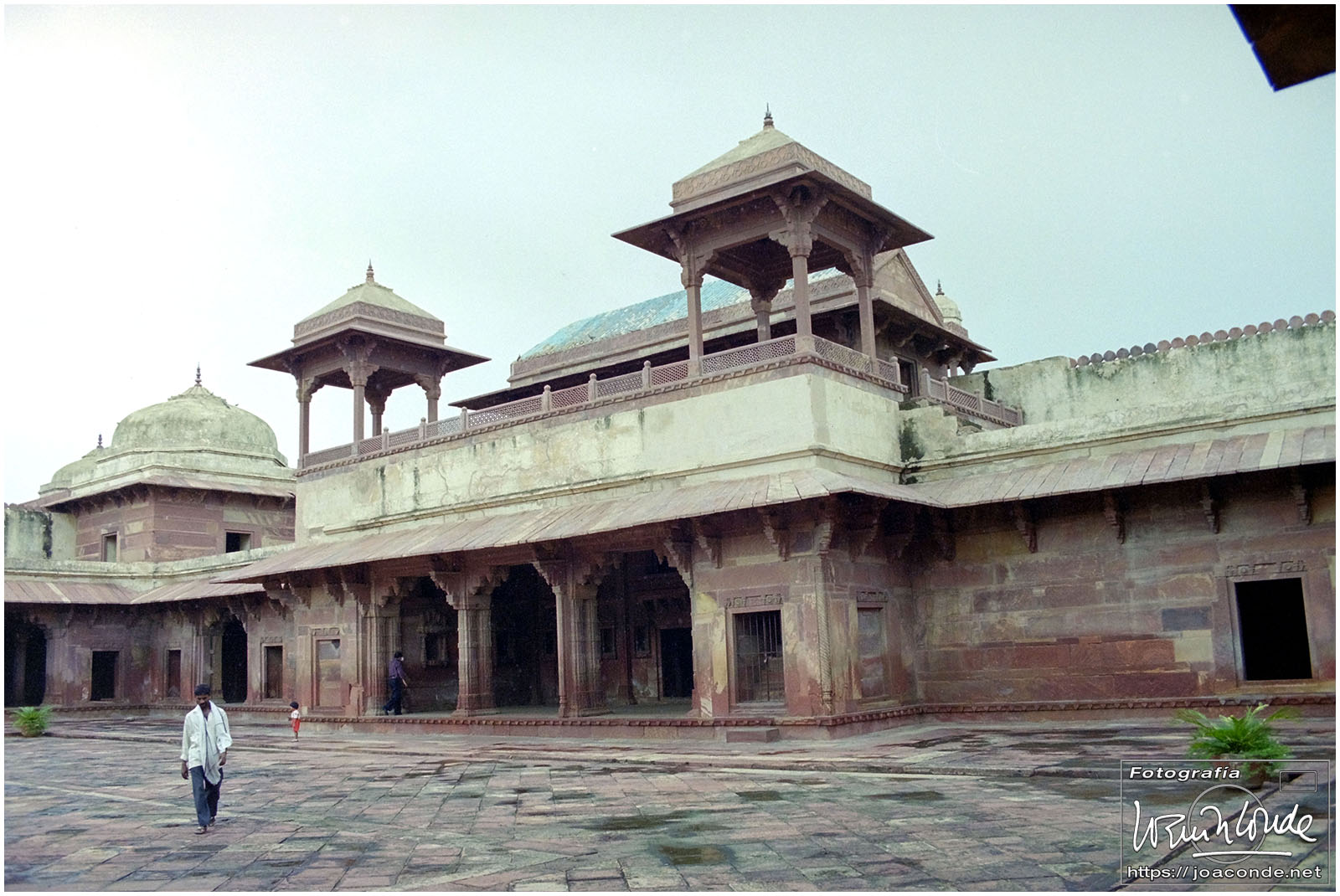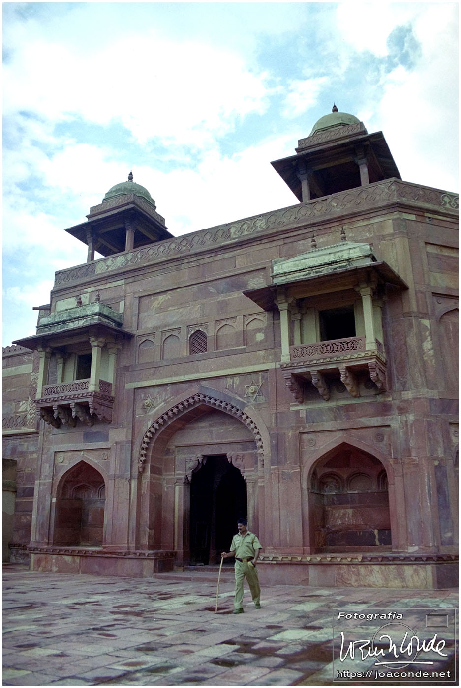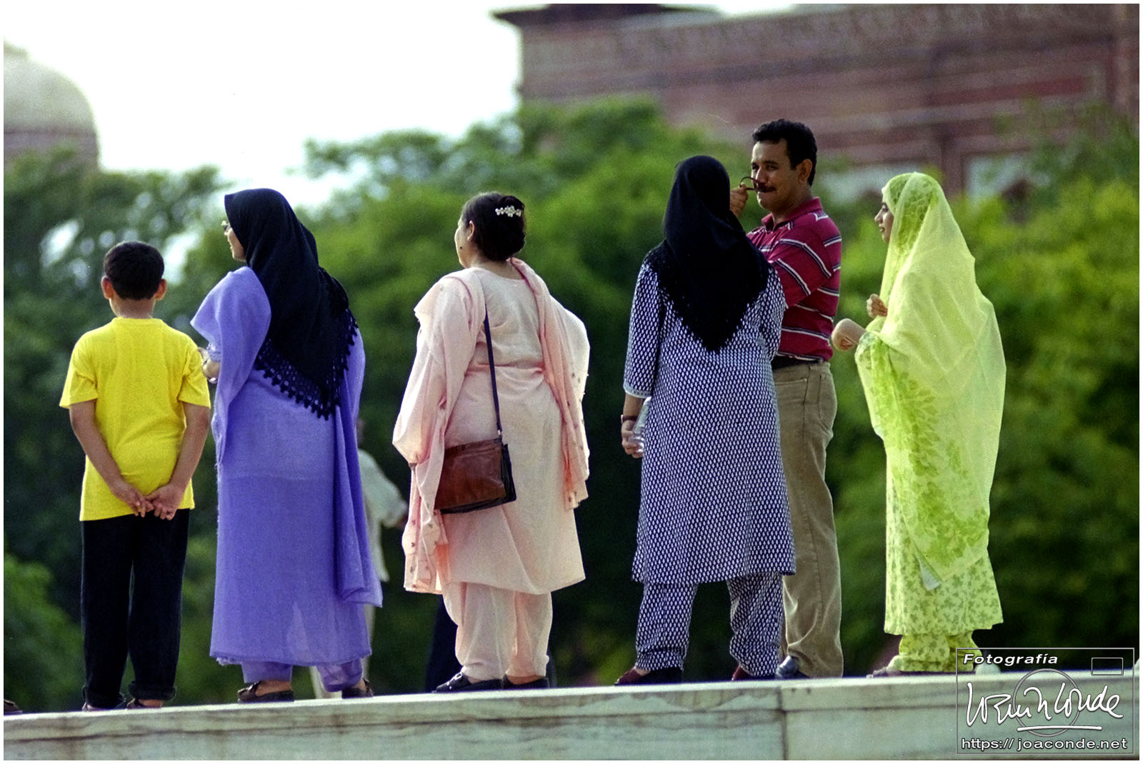 En un plis plas estábamos en Fatehpur Sikri, una ciudad fallida del s. XVI, capital del imperio mogol durante 14 años, hasta que se dieron cuenta de que no tenía agua y la abandonaron. A unos kilómetros estaba Agra y el indescriptible Taj Mahal. Tuvimos mucha suerte. El monzón se tomó un respiro, y no llovió en toda la tarde. Además, iban a cerrar el mausoleo unos días por la visita de Musharraf. Se celebraba la Cumbre de Agra, en la que no se resolvió el litigio entre India y Pakistán por la posesión de Cachemira.