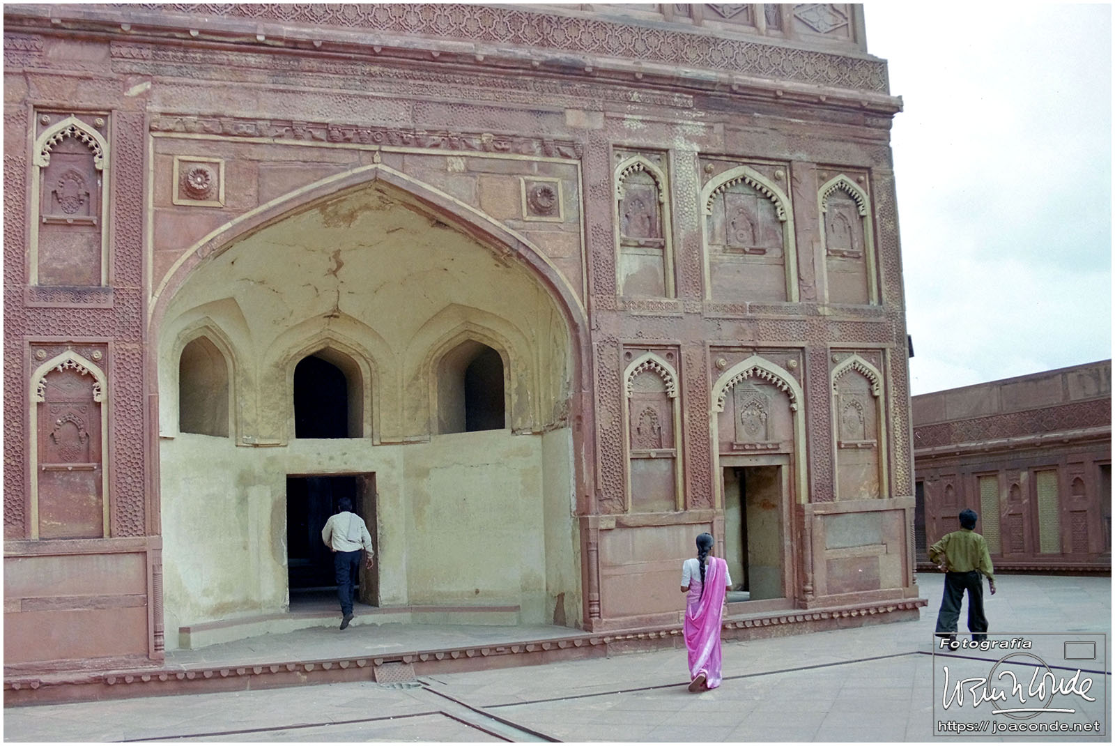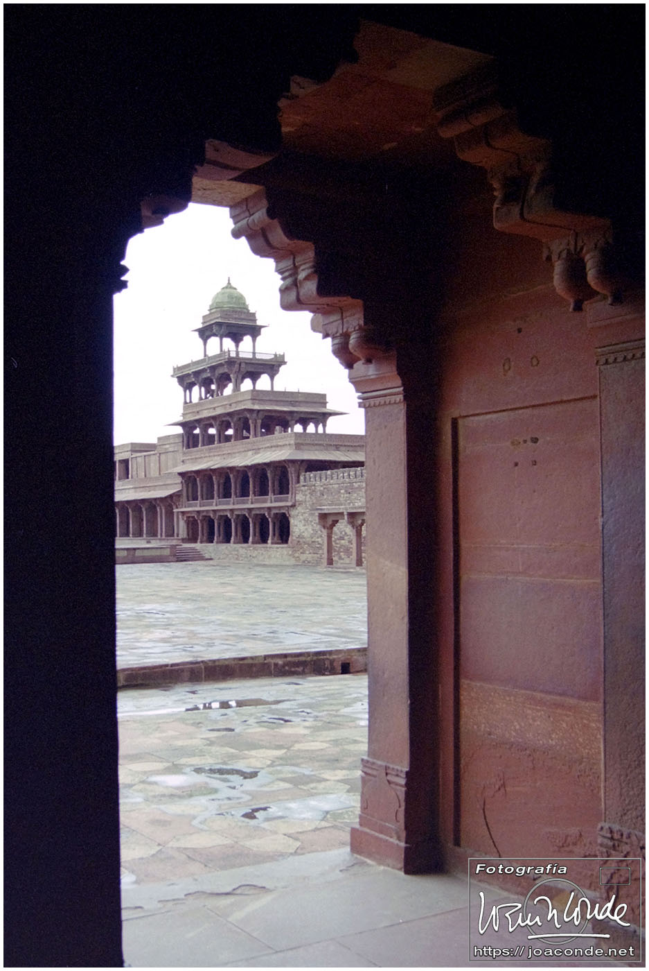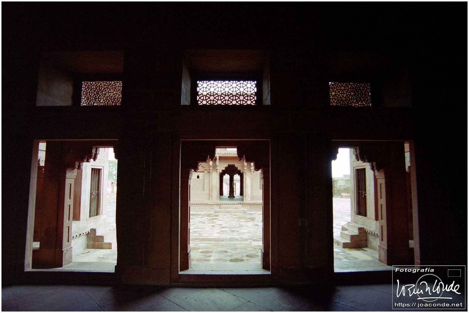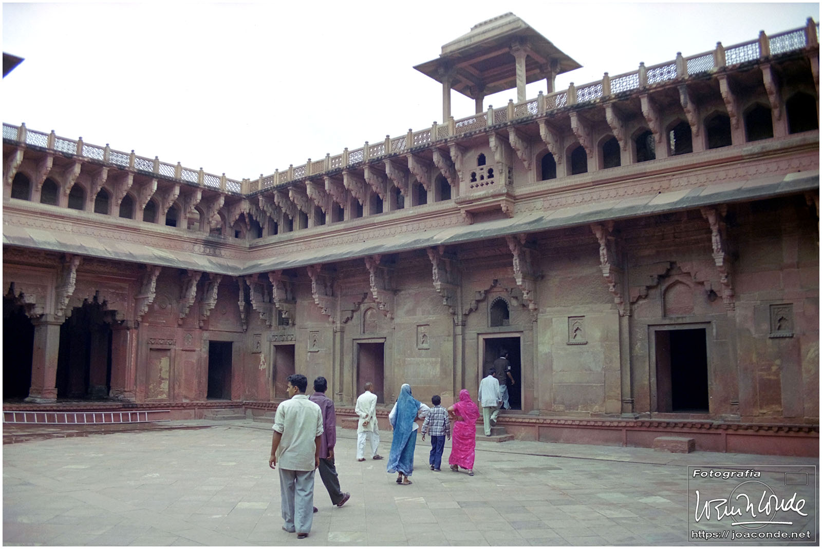 En un plis plas estábamos en Fatehpur Sikri, una ciudad fallida del s. XVI, capital del imperio mogol durante 14 años, hasta que se dieron cuenta de que no tenía agua y la abandonaron. A unos kilómetros estaba Agra y el indescriptible Taj Mahal. Tuvimos mucha suerte. El monzón se tomó un respiro, y no llovió en toda la tarde. Además, iban a cerrar el mausoleo unos días por la visita de Musharraf. Se celebraba la Cumbre de Agra, en la que no se resolvió el litigio entre India y Pakistán por la posesión de Cachemira.