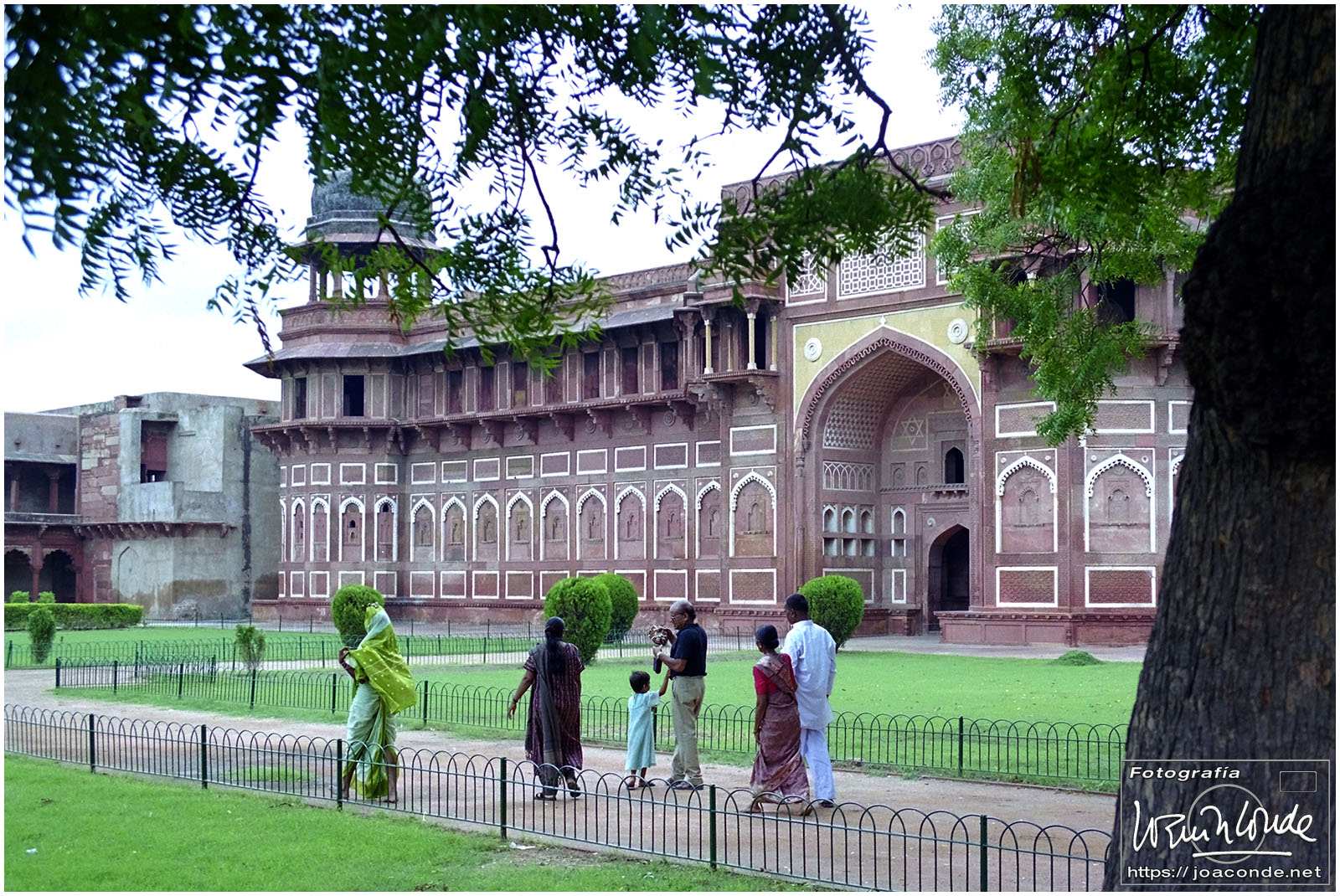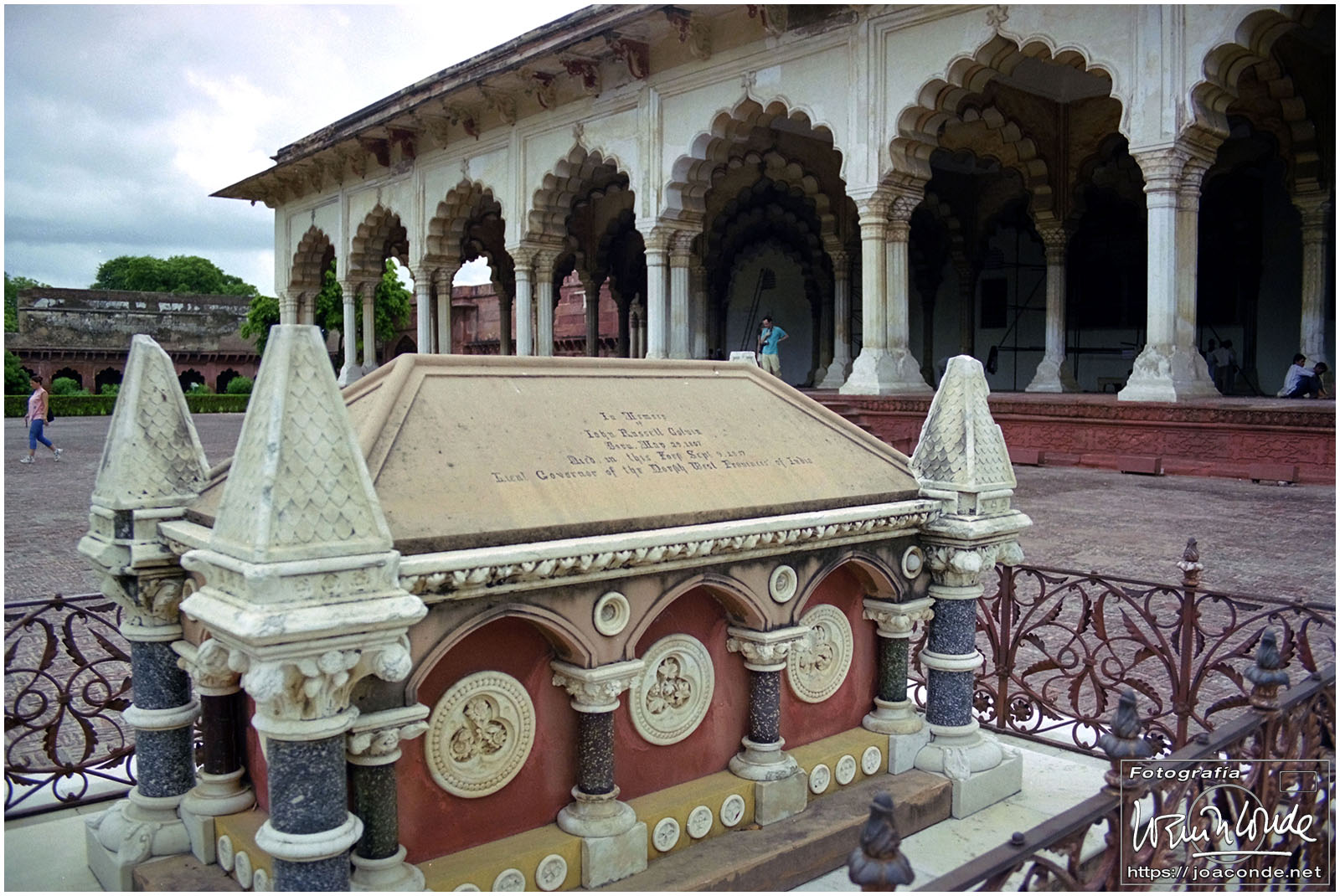 Empezamos el día visitando el Fuerte de Agra, construído por el emperador mogol Akbar en el s. XVI, que también era Patrimonio de la Humanidad. De dimensiones considerables, fue construido en arenisca roja y mármoles, a orillas del sagrado Yamuna. Tiene unas vistas impresionantes al Taj Mahal; a ratos se veía el humo de algunas piras. Al salir me llamó la atención la tumba de un gobernador inglés que no encajaba en el entorno.