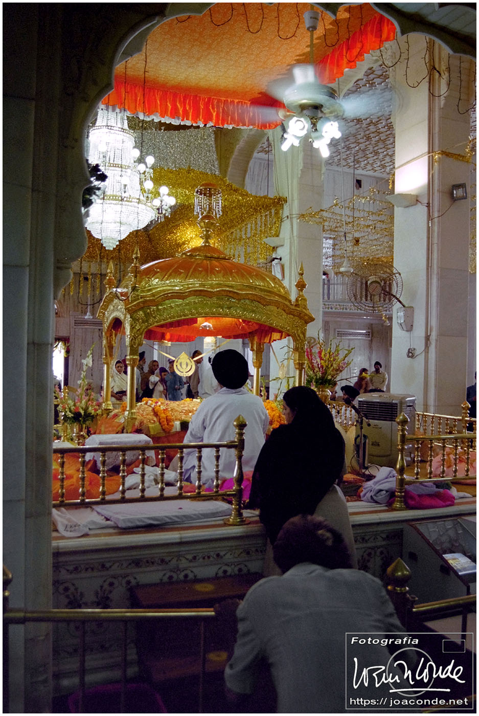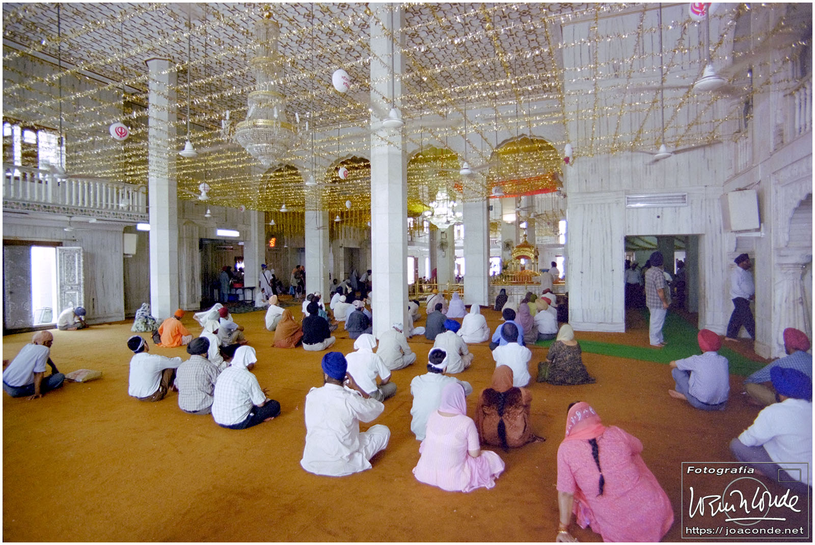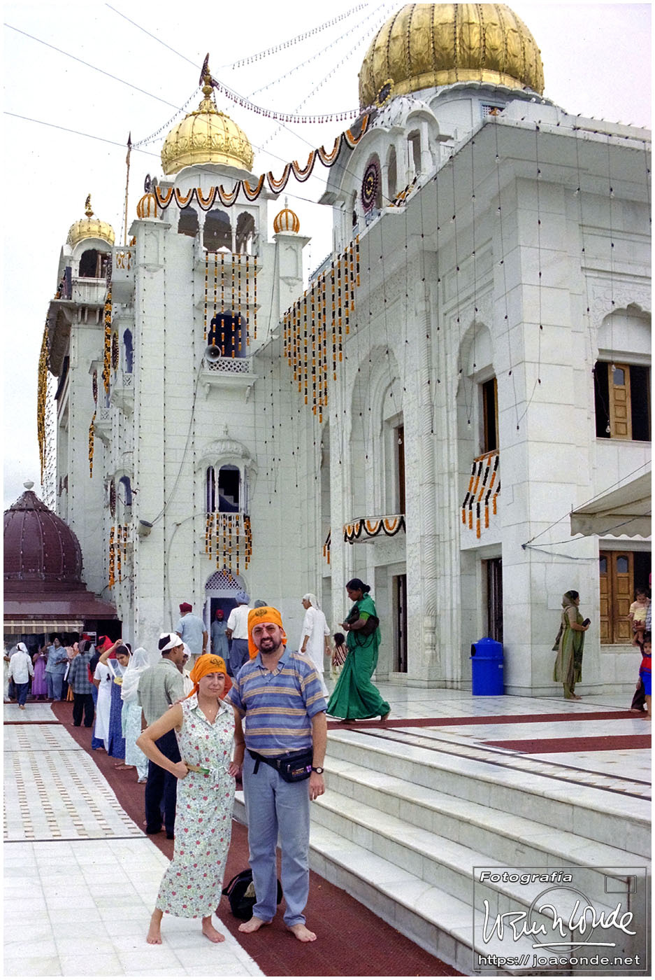 Vimos el templo Birla y después el Gurdwara Bangla Sahib, el principal templo sij de Delhi, al que había que entrar descalzos y cubiertos por un pañuelo naranja. Dentro vimos como miles de devotos hacían sus ritos; otros preparaban adornos florales y comidas que se repartían diariamente a los peregrinos. No sabía nada de esta religión y aprendí mucho aquella tarde. Anochecía cuando fuimos al Central Cottage Industries Emporium, la tienda gubernamental de artesanía; compramos algunas baratijas y la seda pintada que tenemos en casa. Le Meridien era un hotel espectacular, dentro de un bosque, con un patio central enorme y unas habitaciones amplísimas.