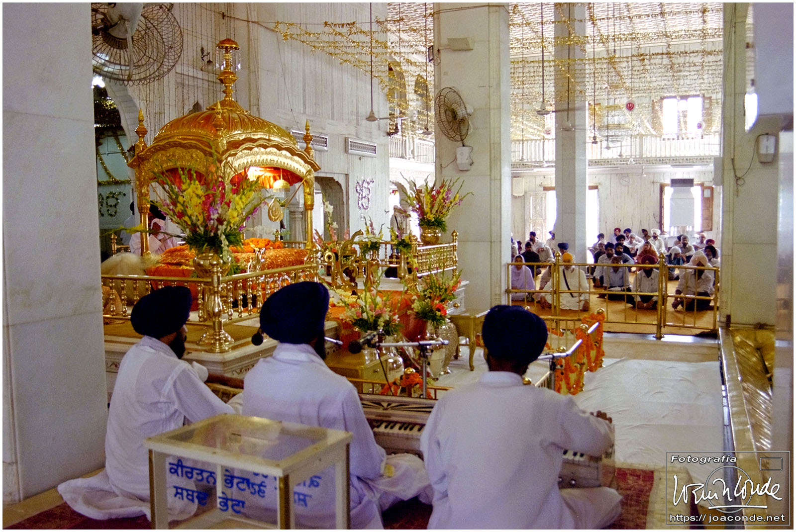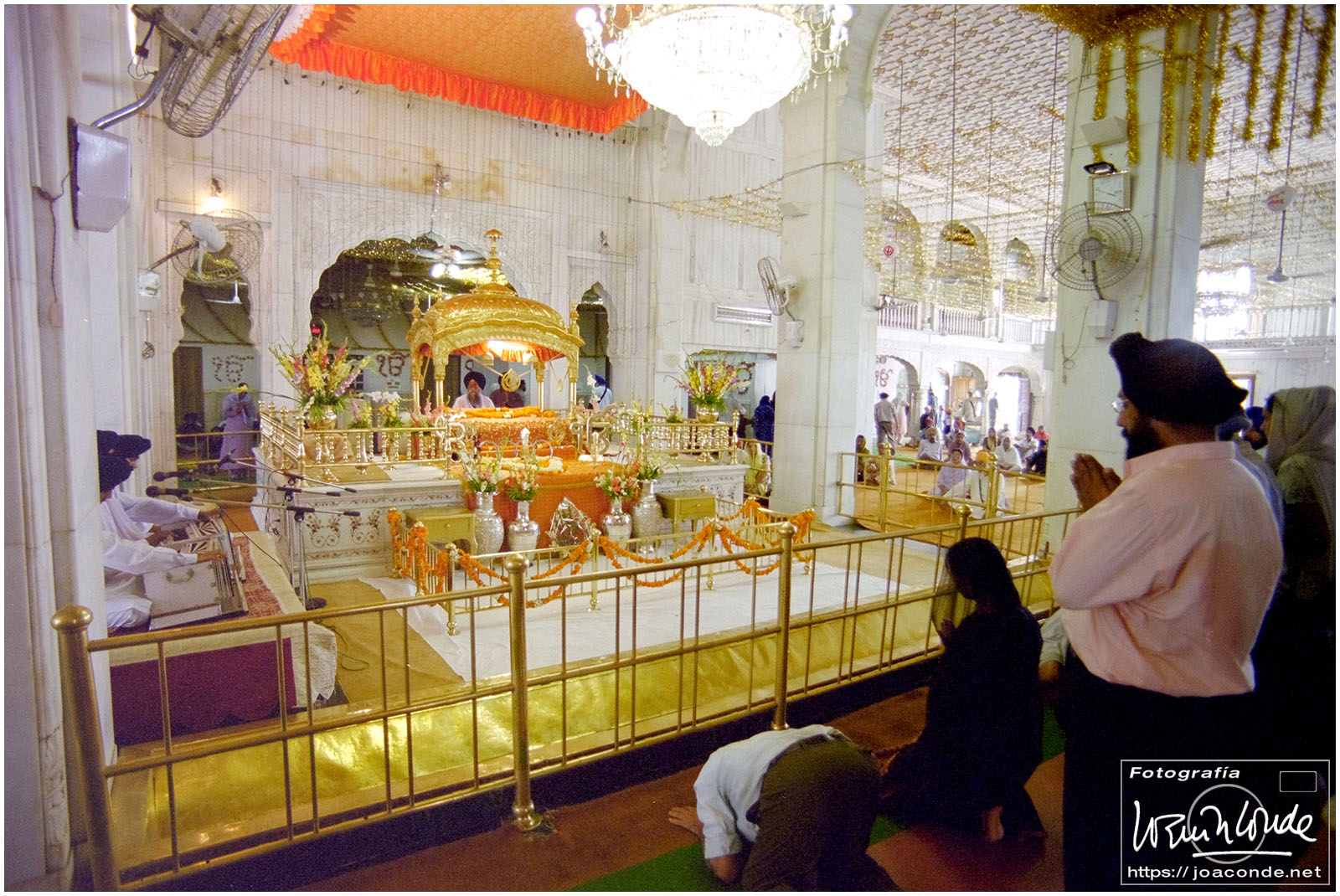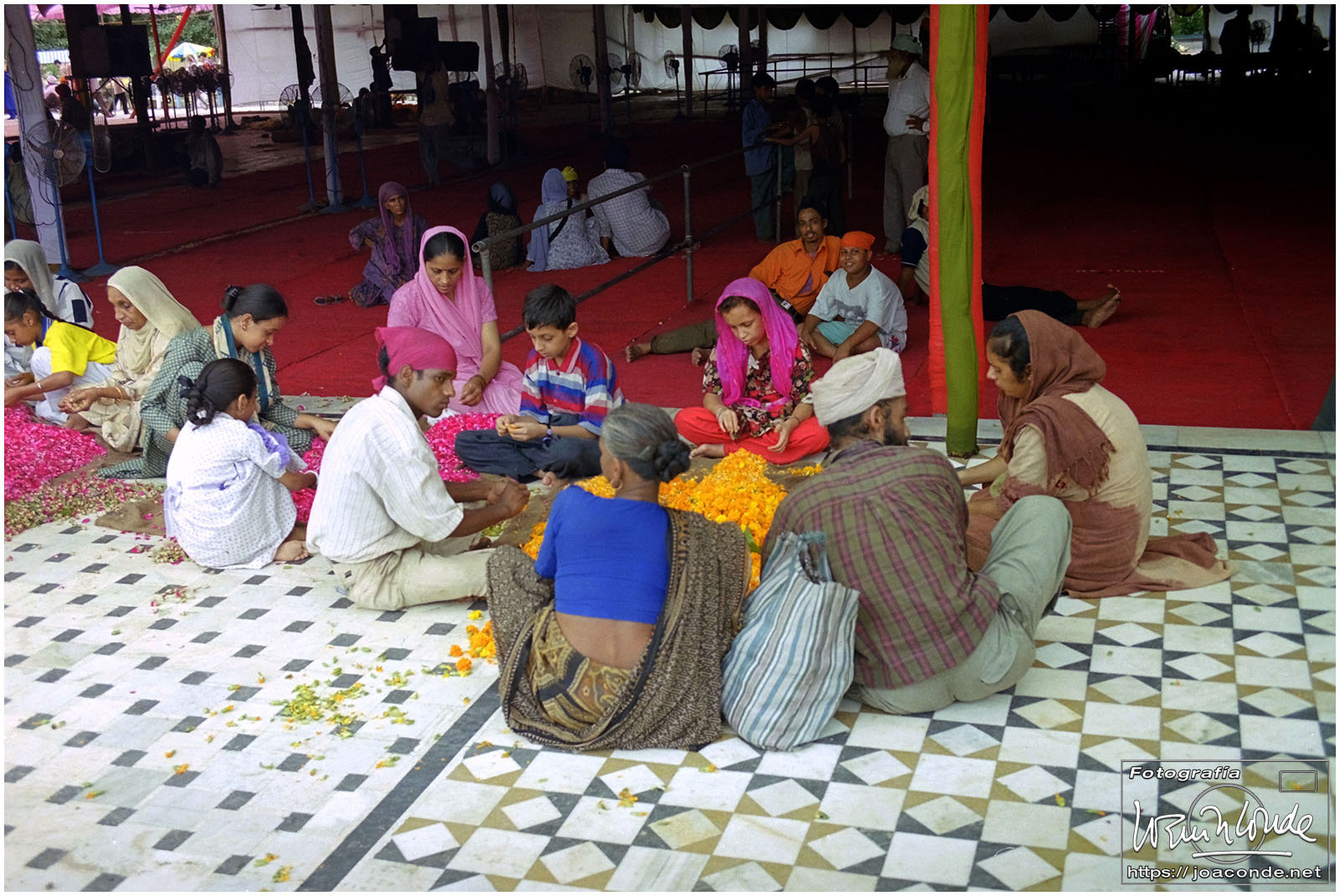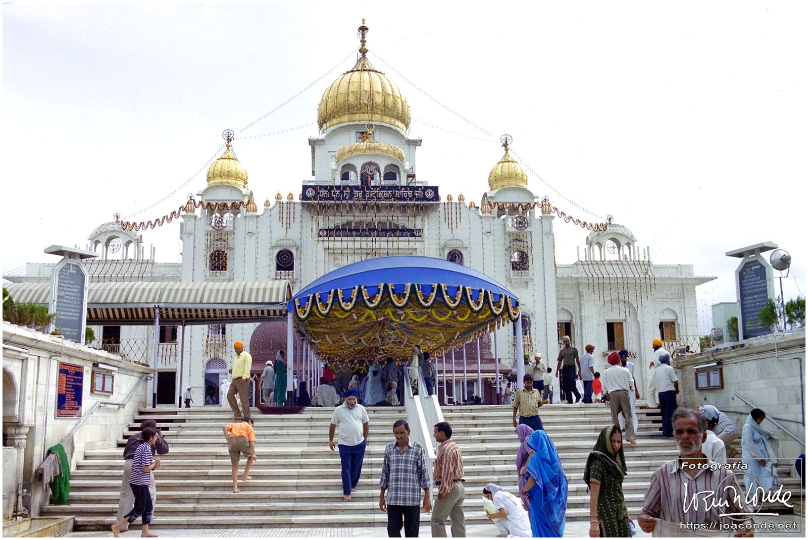 Vimos el templo Birla y después el Gurdwara Bangla Sahib, el principal templo sij de Delhi, al que había que entrar descalzos y cubiertos por un pañuelo naranja. Dentro vimos como miles de devotos hacían sus ritos; otros preparaban adornos florales y comidas que se repartían diariamente a los peregrinos. No sabía nada de esta religión y aprendí mucho aquella tarde. Anochecía cuando fuimos al Central Cottage Industries Emporium, la tienda gubernamental de artesanía; compramos algunas baratijas y la seda pintada que tenemos en casa. Le Meridien era un hotel espectacular, dentro de un bosque, con un patio central enorme y unas habitaciones amplísimas.