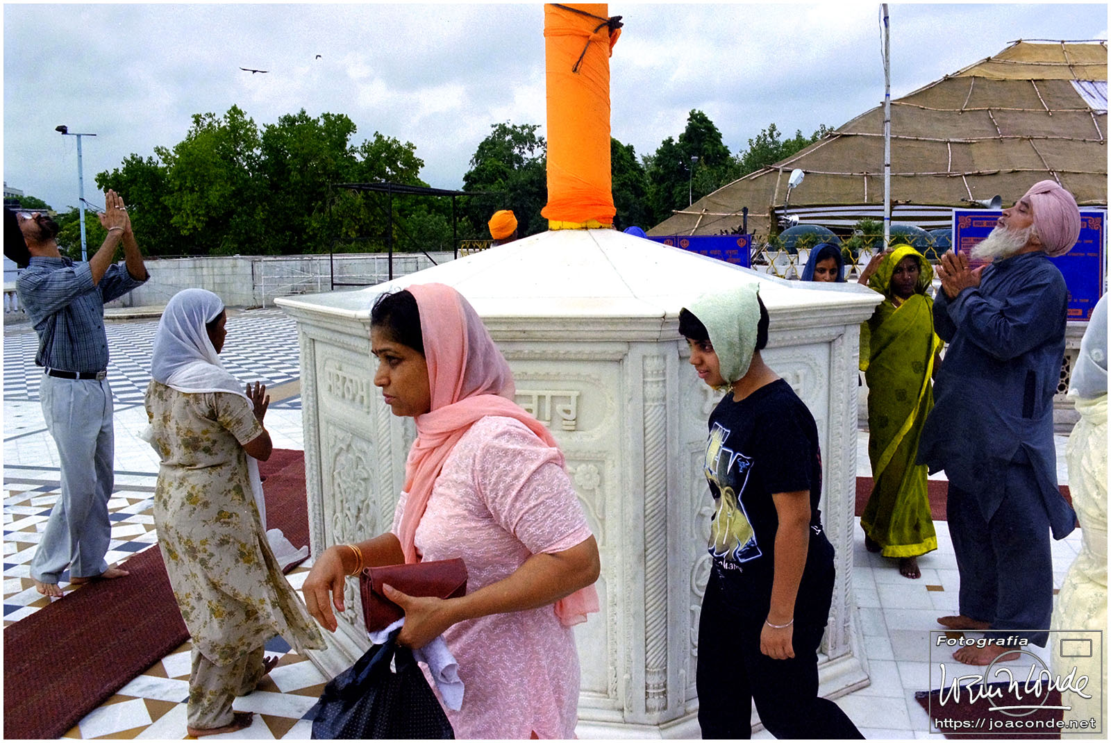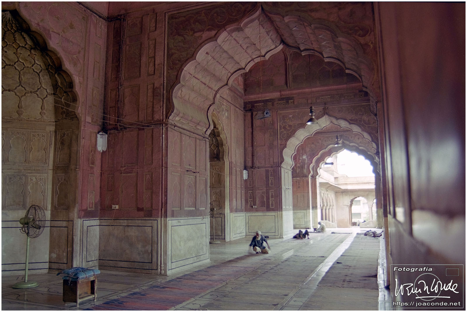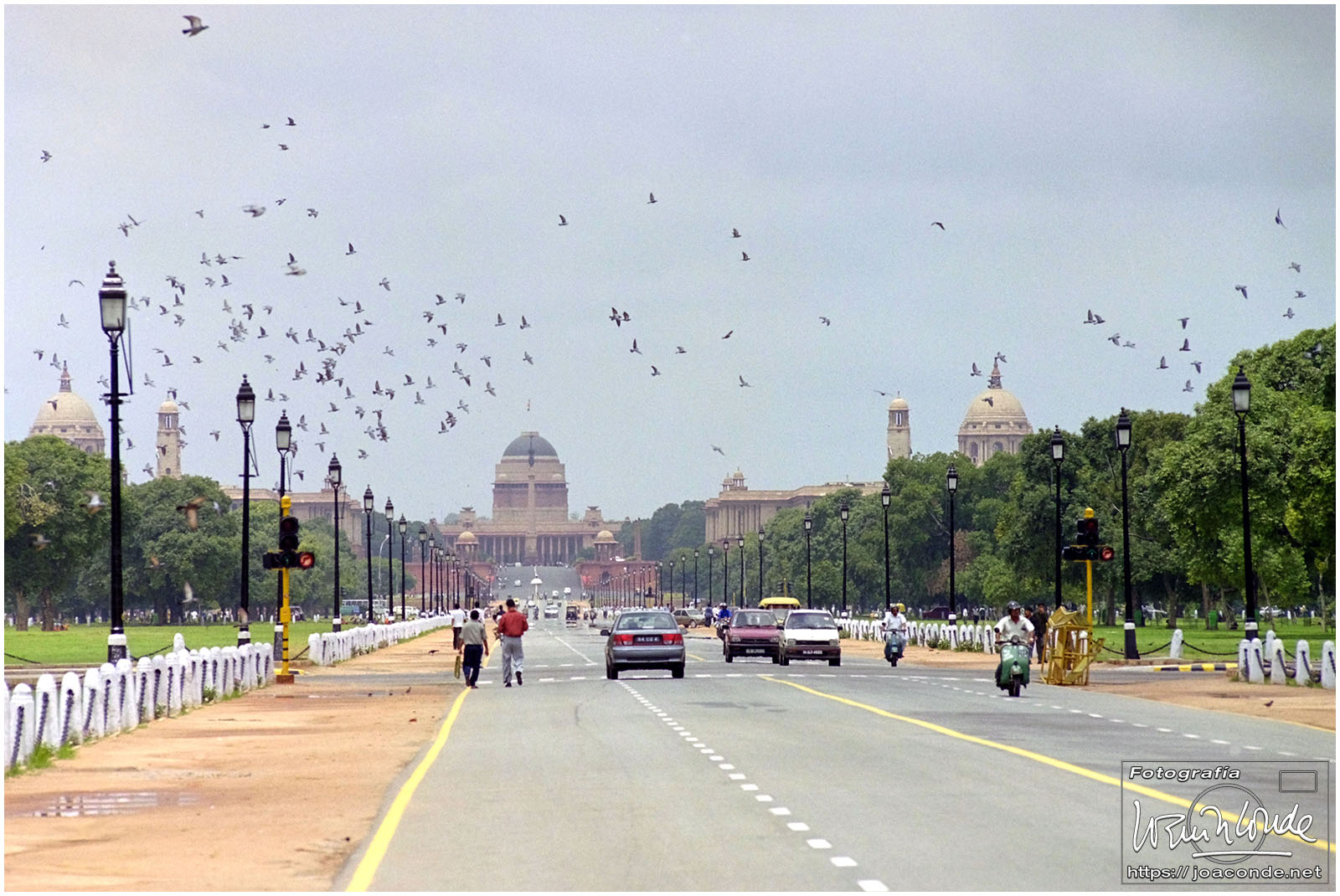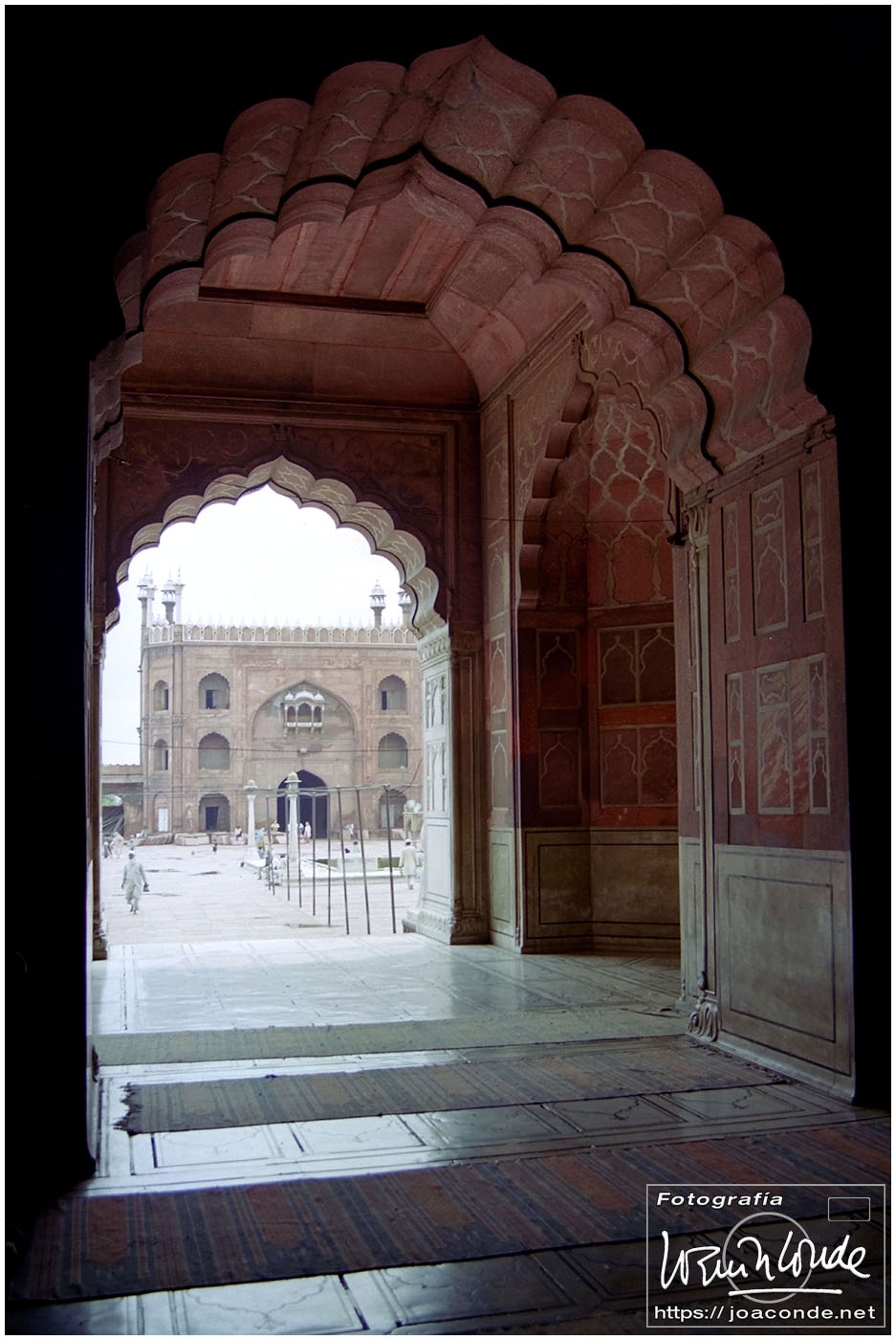 La prensa se hacía eco de la ofrenda de Musharraf en el Raj Ghat, que íbamos a visitar después. Antes fuimos al barrio musulmán y entramos en la Jama Masjid —Mezquita del Viernes—. Era enorme y descubierta, con capacidad para 25.000 personas. A continuación visitamos el Raj Ghat, lugar donde se incineró el cuerpo de Gandhi y se conservaban parte de sus cenizas; un empleado barría los pétalos fucsia que echó el presidente pakistaní el día anterior. Era un lugar de reflexión y esparcimiento. Luego estuvimos en la Puerta de la India, un enorme arco de triunfo en memoria de los soldados indios muertos en la Primera Guerra Mundial.