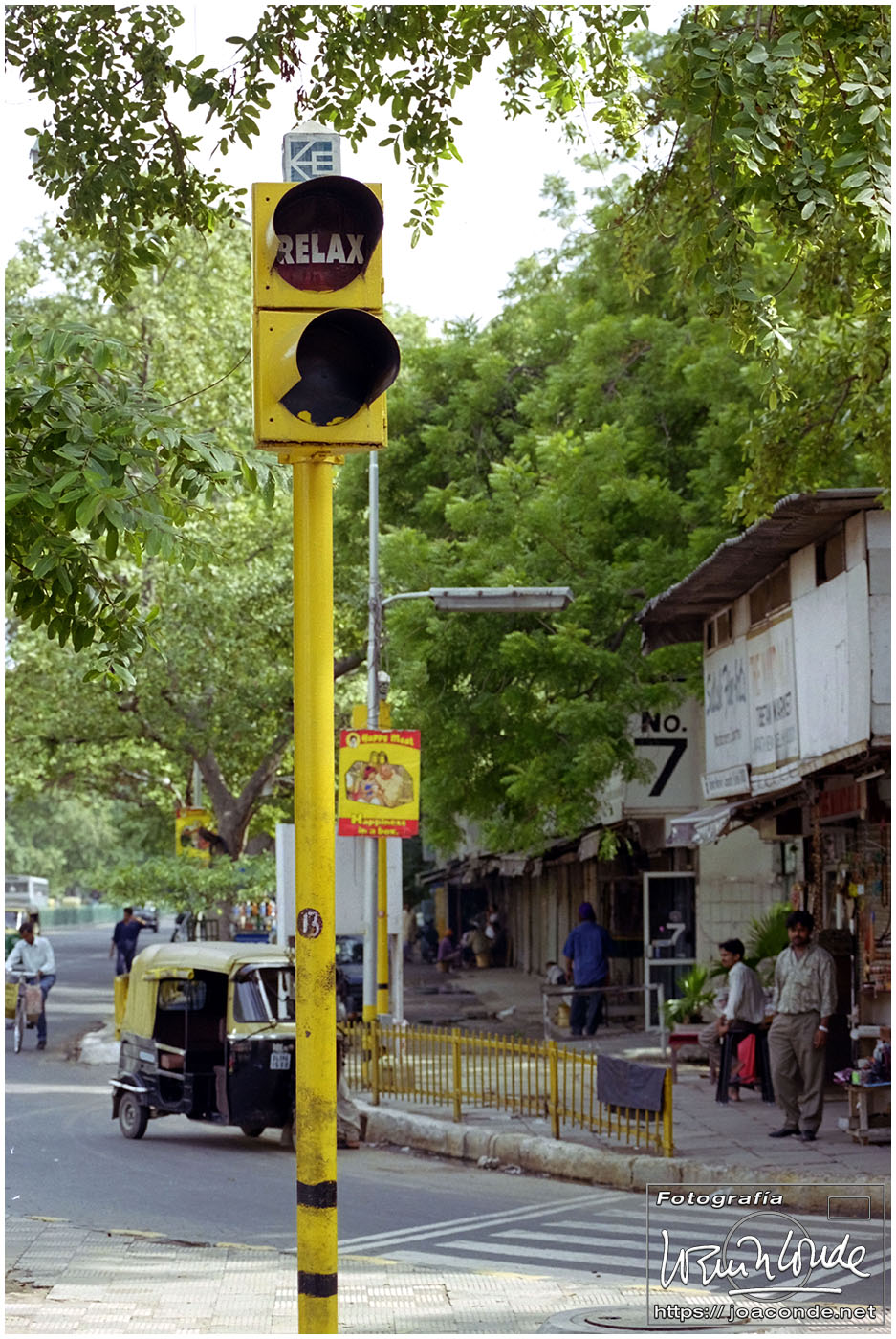 Estuvimos buscando comida europea, pero hasta las hamburguesas y pizzas picaban. Compramos algunos recuerdos en la Connaught Place y paseamos. En un cine ponían «Solo es un sueño» y los mercadillos estaban a medio gas. Me fijé que no existía el color rojo en los semáforos… solo un tímido «relax»; me dijeron que cuando se encendía, debías levantar algo el pie del acelerador, no tocar el claxon y decir «om» (ॐ). Volvimos al hotel y apreciamos que Delhi era realmente una ciudad verde.