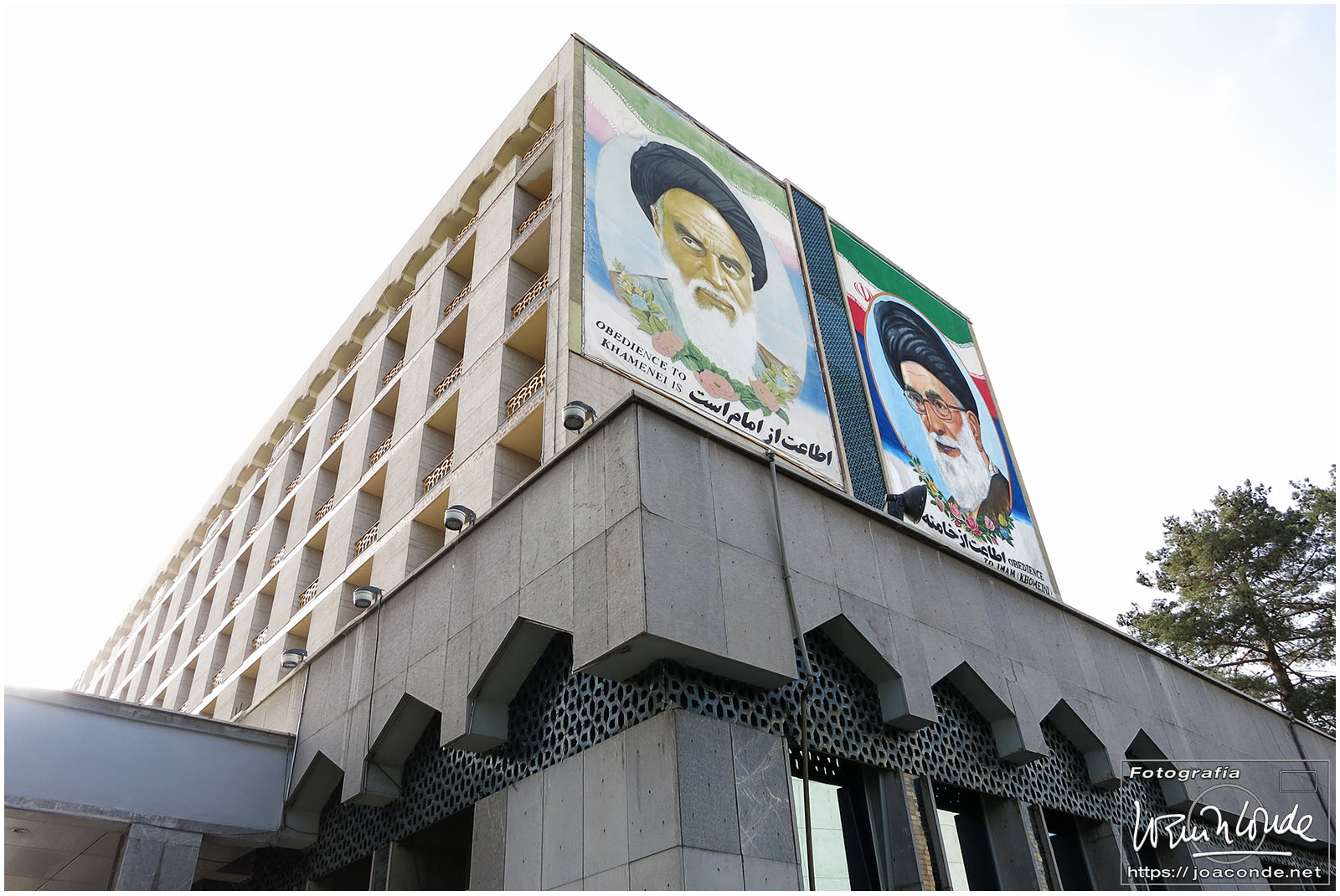 Subiendo a la furgoneta que nos llevaría a la capital, me fijé en el lateral del hotel: «La obediencia a Khamenei es obediencia al imán (Jomeini)».