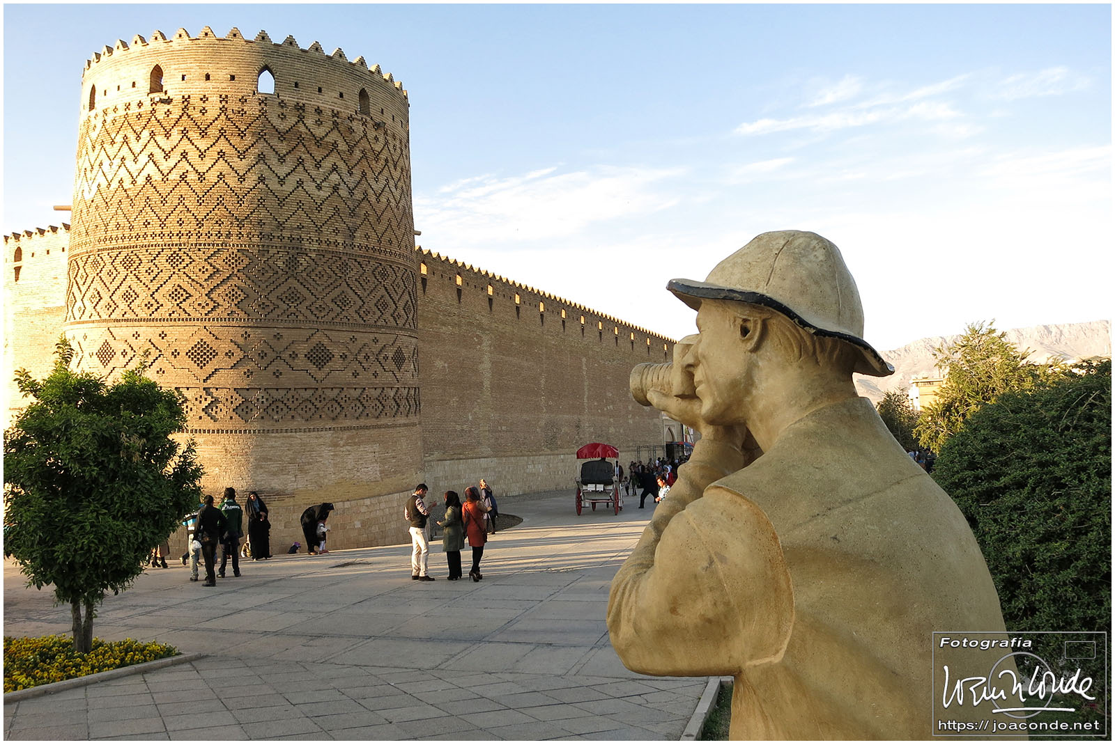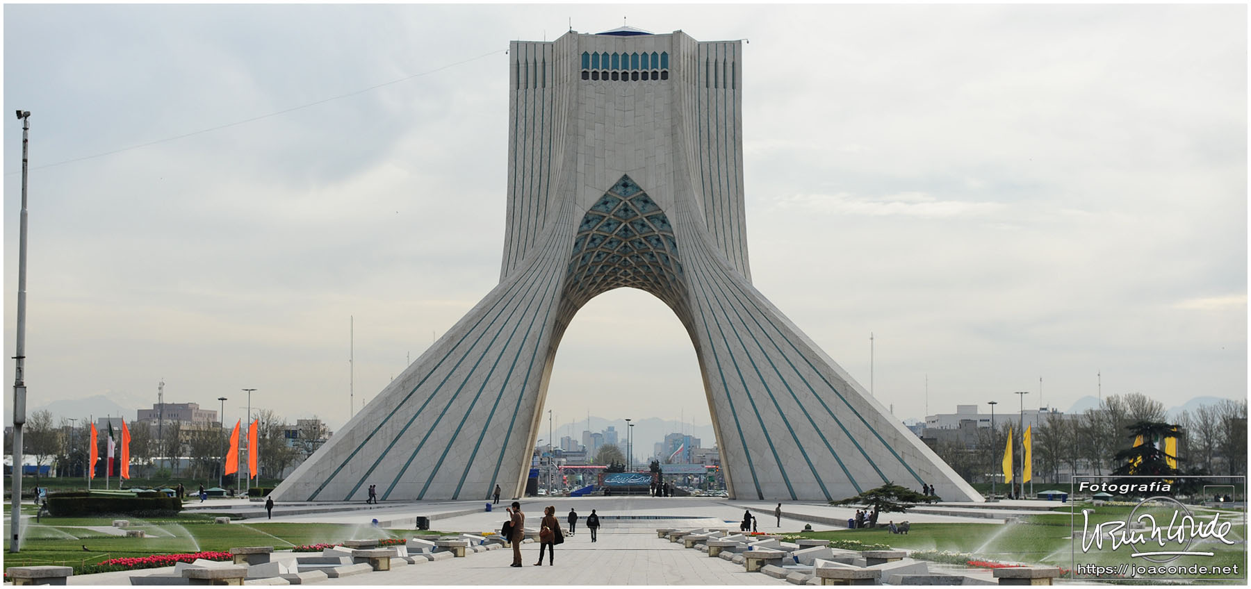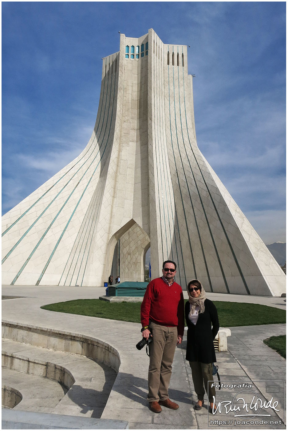 En el aeropuerto Imam Khomeini nos esperaba Jalal, un guía y traductor excepcional, que nos acompañó al Hotel Enghelab (Revolución). Después de unas horas de descanso, amanecimos en la capital de Irán con una luz muy especial y los montes Elburz todavía nevados. Dejamos el hotel y salimos para el aeropuerto; por el camino, paramos en La Torre de la Libertad o Torre Azadi. Después, volamos a Shiraz, en la provincia de Fars, 900 km al sur.