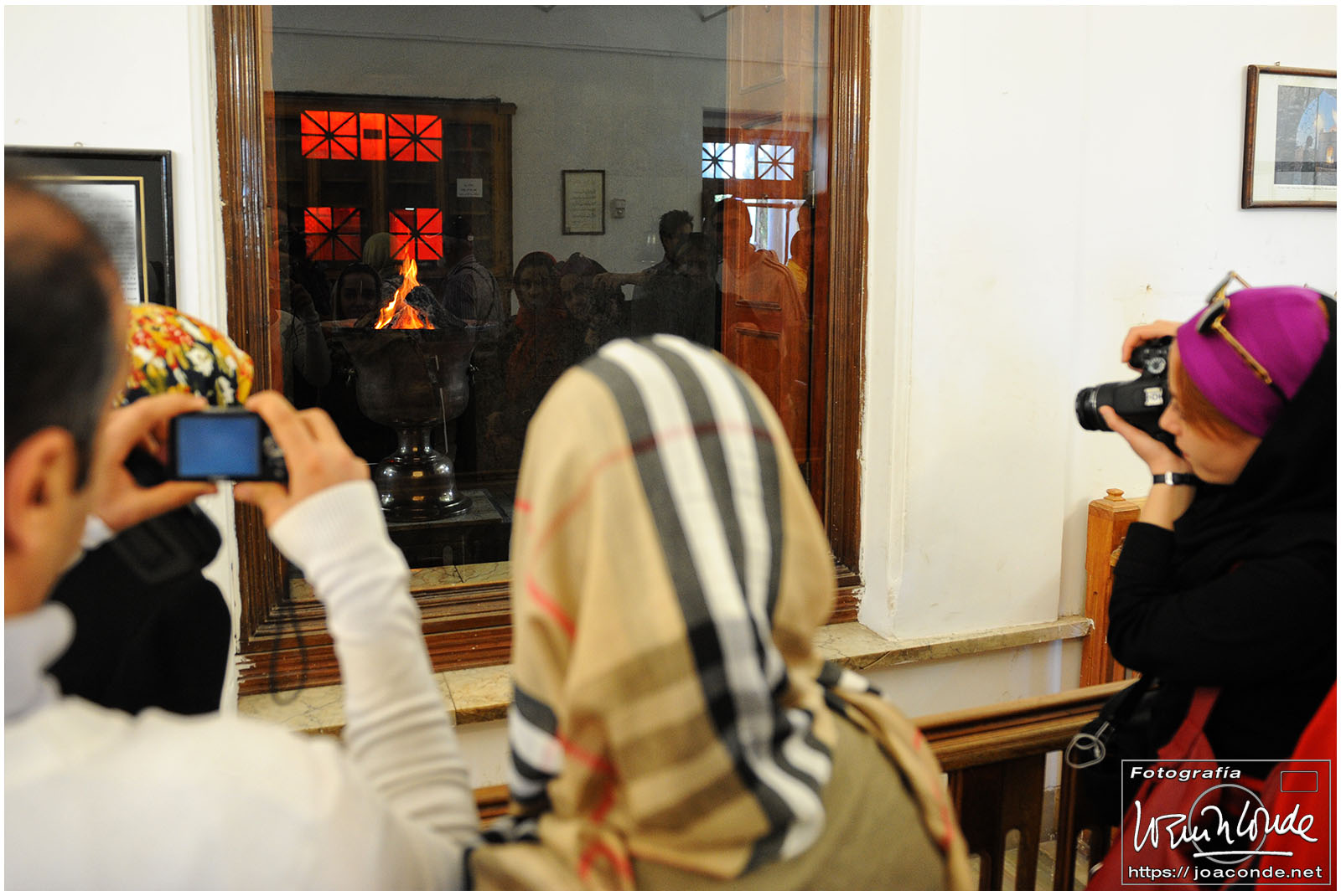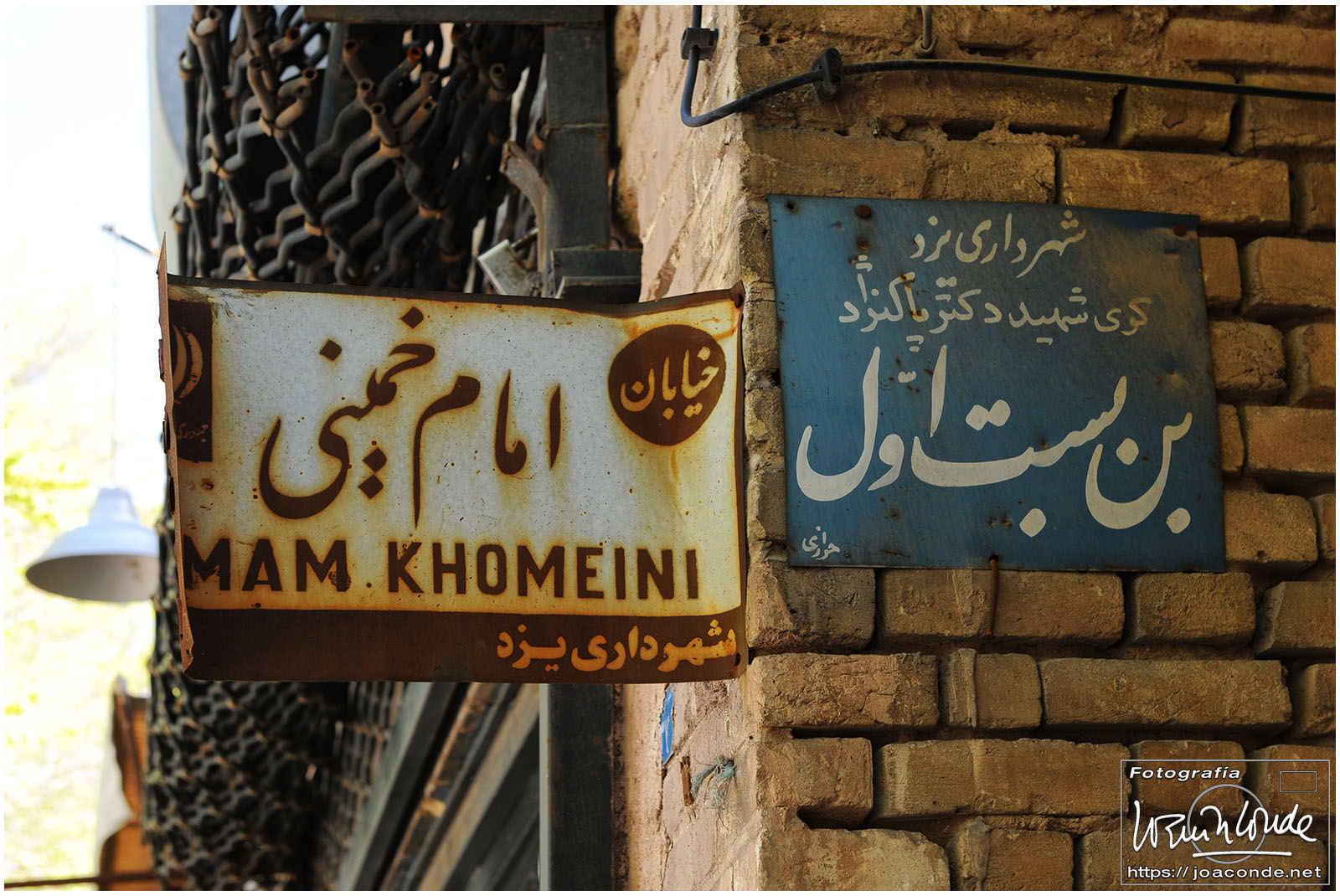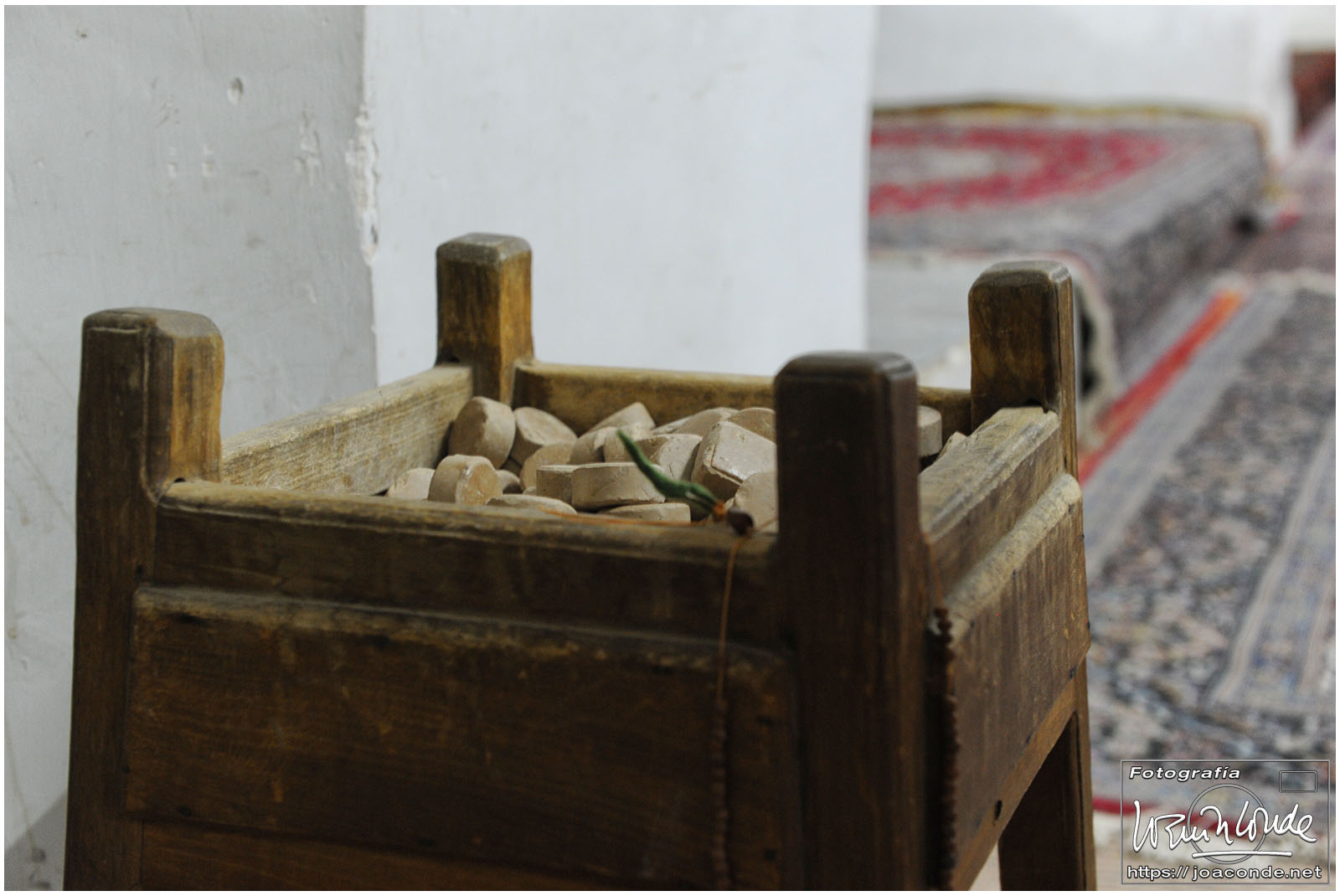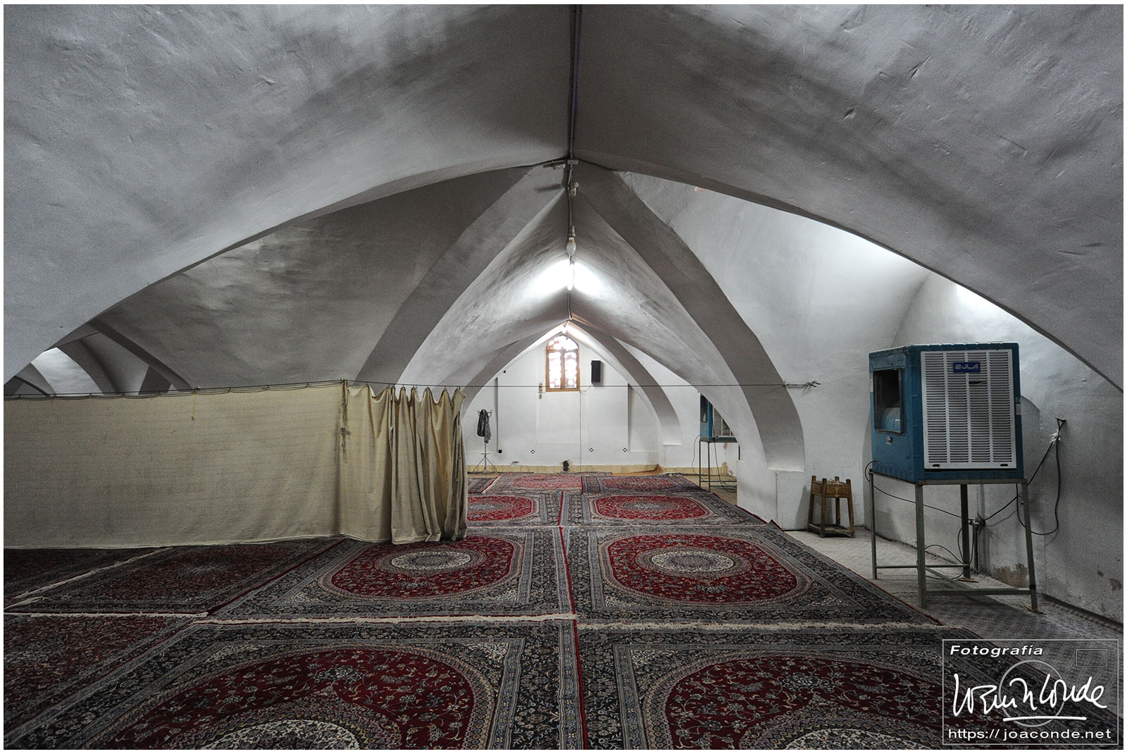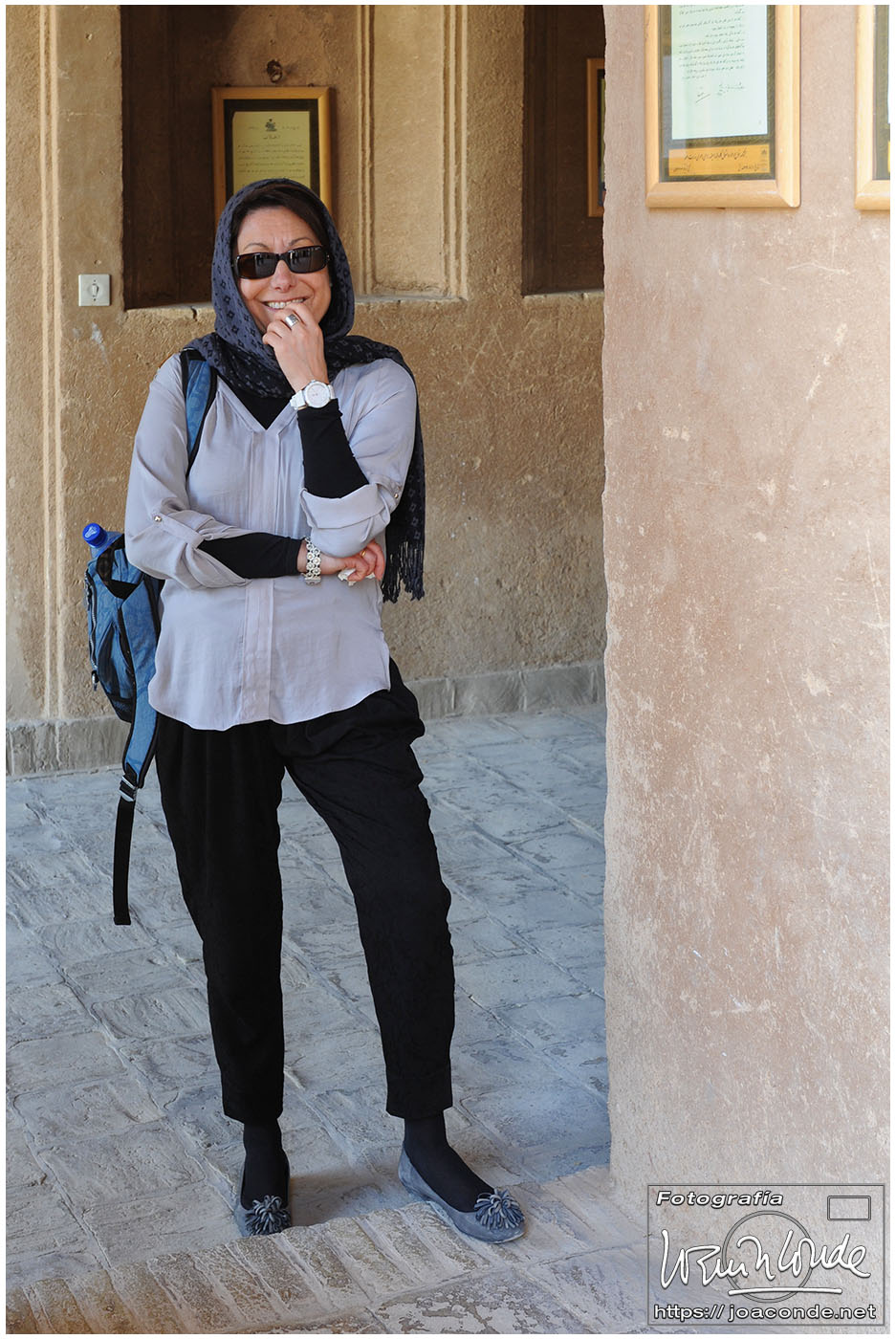 Vimos que las puertas de las casas tenían dos llamadores, uno con sonido más recio, para uso de los hombres; otro de sonido más sutil, para las mujeres. La señora de la casa debía saber de qué sexo era quién llamaba a la puerta, para estar vestida de acuerdo con la ley. Entramos en una de esas casas, Khan-e Lari, pero solo en un par de habitaciones y no se podían hacer fotos; dentro había también varios puestos de artesanía.
