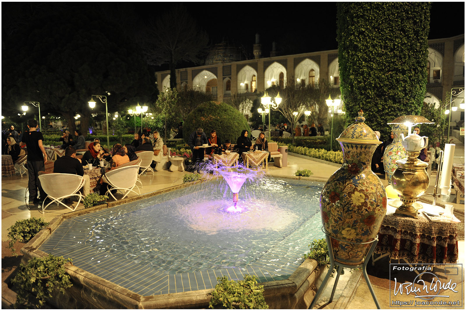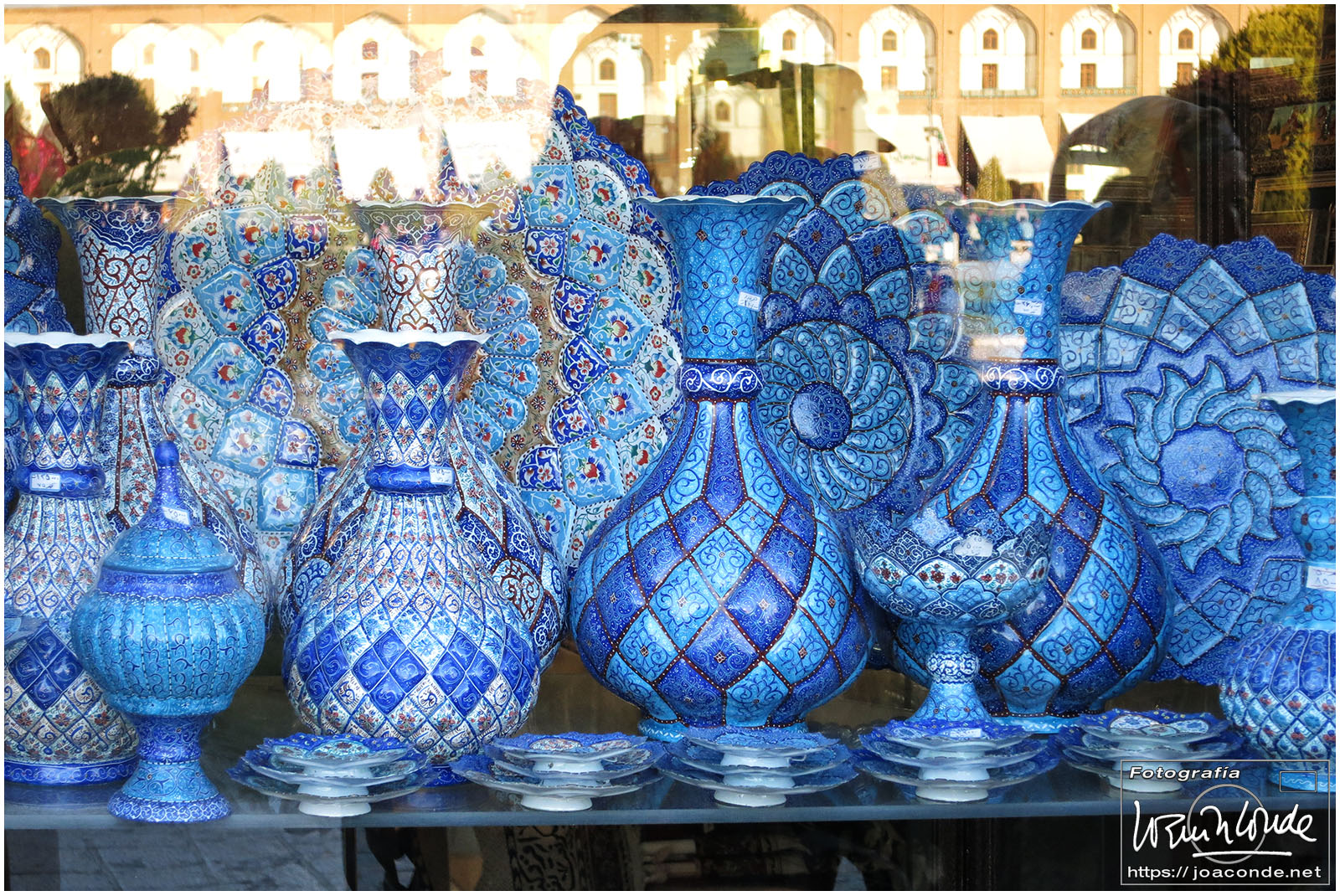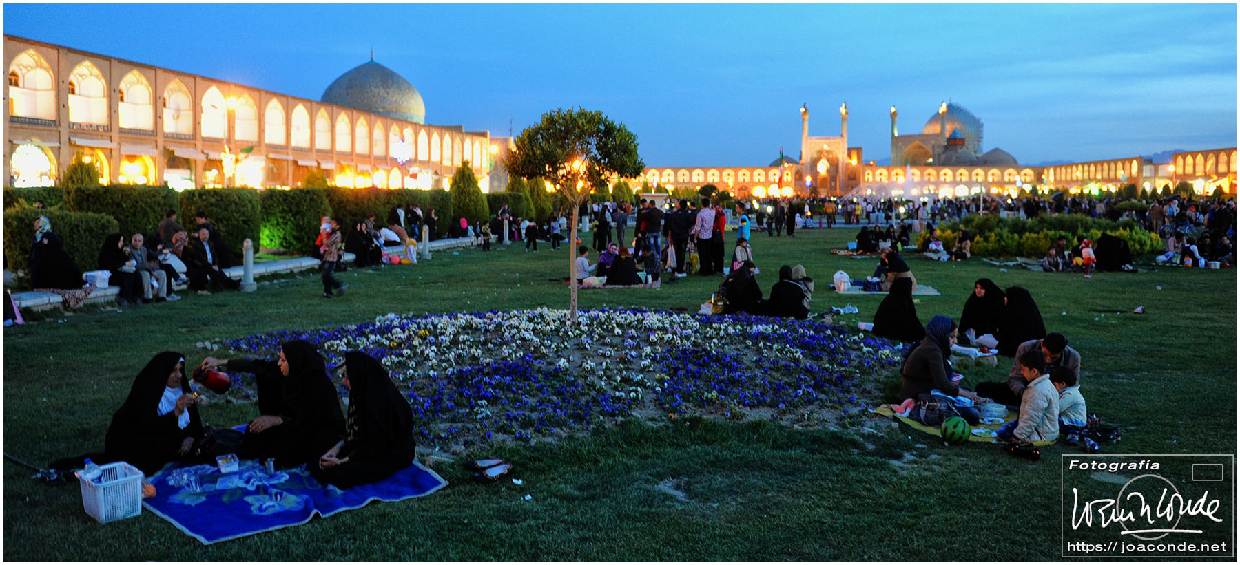 Al atardecer volvimos a la plaza de Naghsh-i Jahan que estaba muy ambientada. En una de las tiendas del zoco, hablando con un comerciante del poco espacio que nos quedaba en las maletas, nos dijo que podíamos comprar esas piezas ¡¡¡ en Córdoba !!! donde tenía una tienda.