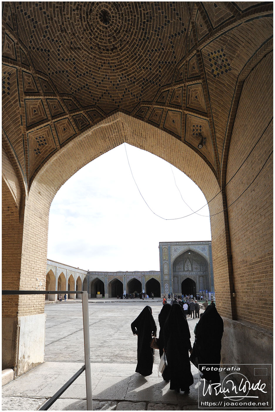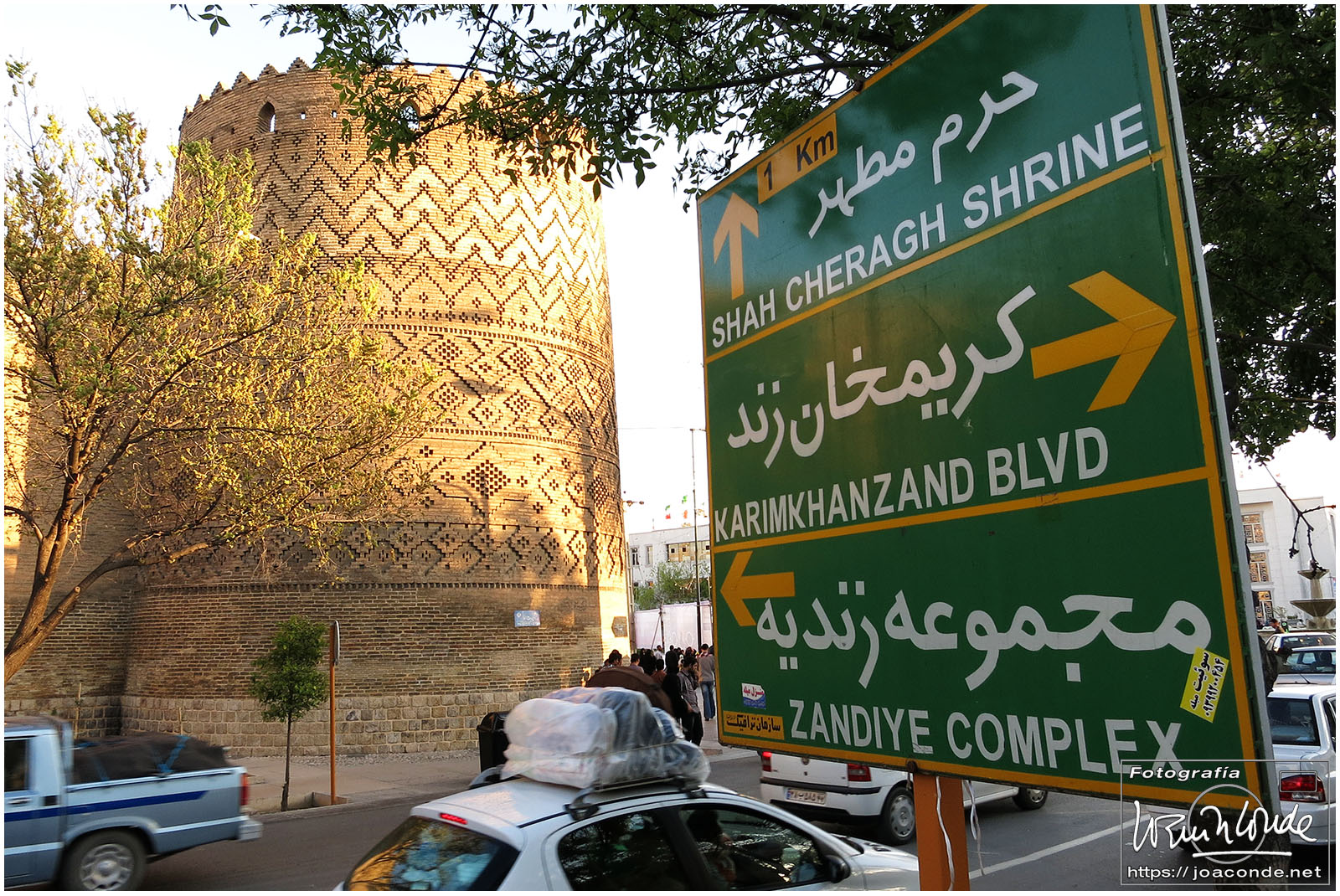 Empezamos visitando La Puerta del Corán, antiguo acceso a la ciudad. Después de comer fuimos al Jardín de Eram, un remanso de paz en la ciudad. Este y otros jardines persas estaban inscritos desde 2011 en la lista del Patrimonio de la Humanidad. Seguimos el recorrido por la ciudadela de Karim Khan y la Mezquita Vakil, junto al bazar del mismo nombre. Cuando llegamos al hotel nos dijeron que estaba completo y nuestra reserva se había traspapelado. Con toda rapidez, localizaron un piso cercano bien equipado en el que cenamos y nos alojamos.