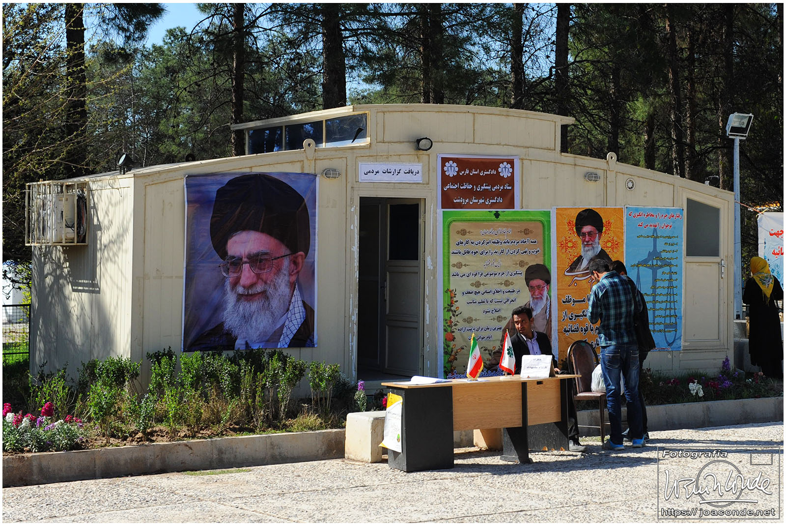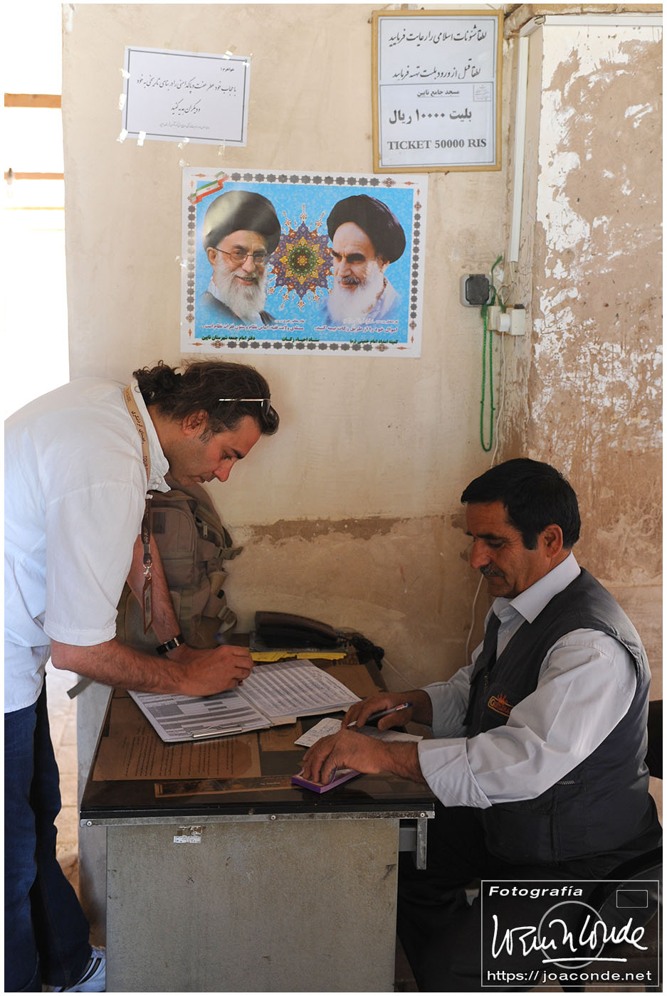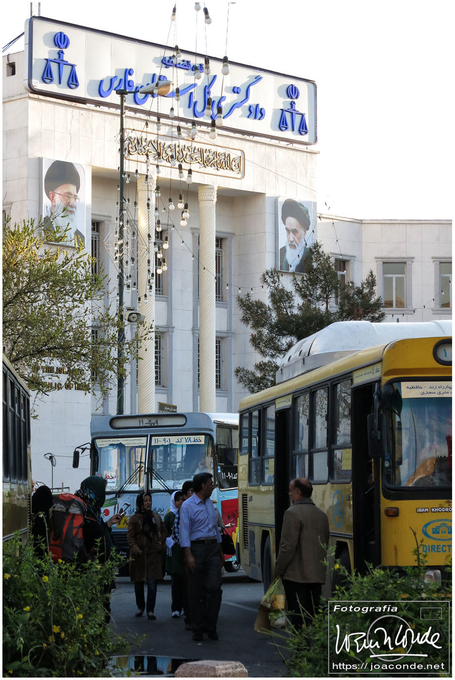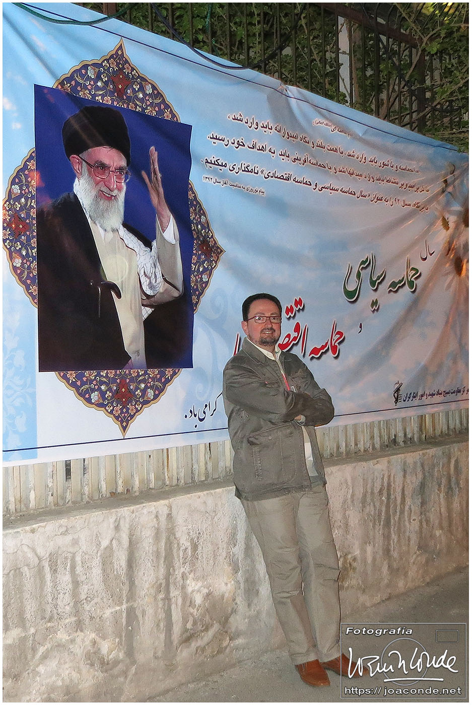 Subiendo a la furgoneta que nos llevaría a la capital, me fijé en el lateral del hotel: «La obediencia a Khamenei es obediencia al imán (Jomeini)».