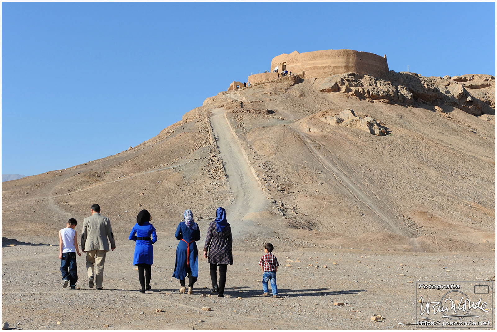 Yazd, en el centro de Irán, era una ciudad conocida por sus torres de ventilación, y también porque allí pervivía el zoroastrismo. Antes de que hiciera calor subimos a las «torres de silencio«, en las afueras de la ciudad. Allí se depositaban antiguamente los cadáveres, que eran devorados por buitres. Después fuimos al Templo del Fuego, donde se mantenía encendida una llama desde el año 470 d.C. y dimos una vuelta por Amir Chaghmagh, una pequeña mezquita con dos estilizados minaretes y un bazar. Me llamó la atención un grupo de «confesores» que asesoraban sobre familia y educación. También entramos en la Mezquita del Viernes; allí las chicas tenían que taparse un poco más todavía.