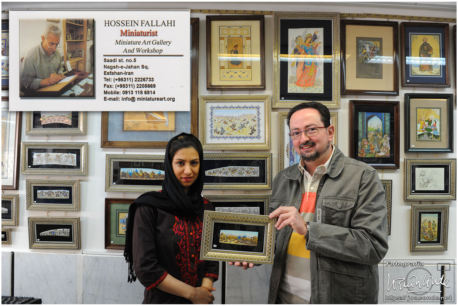 Al amanecer nos encontramos seco el lecho del río Zayandeh. Al parecer, debido a un desvío, solo llevaba agua en contadas ocasiones. Después de desayunar fuimos hacia Naqsh-e Yahán, la Plaza Real, Patrimonio de la Humanidad. Antes de entrar en la plaza visitamos el establecimiento de Hossein Fallahi, célebre miniaturista que estaba impartiendo cursos en Estados Unidos. Nos atendió su encantadora hija. Buscaba una miniatura sobre hueso del juego de polo en la plaza de Isfahán, y la encontré.