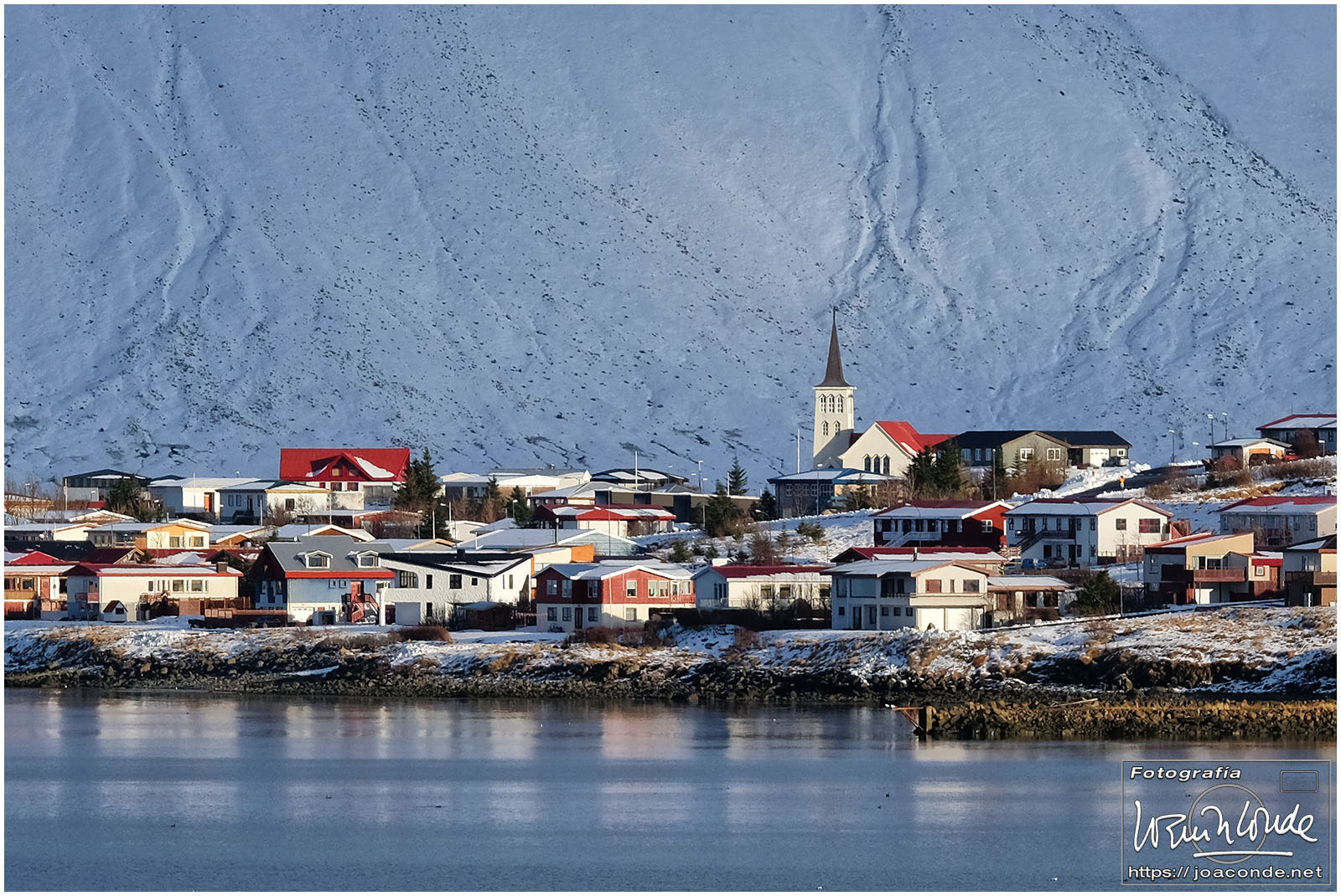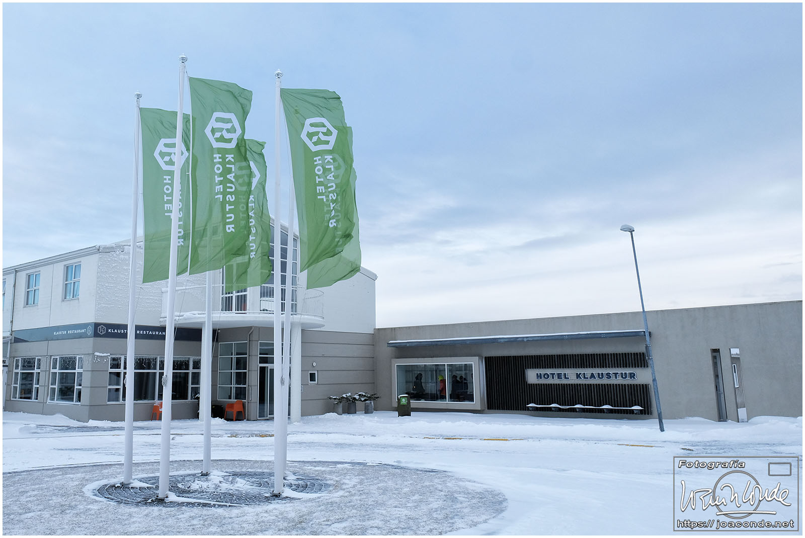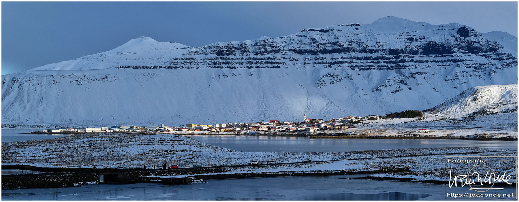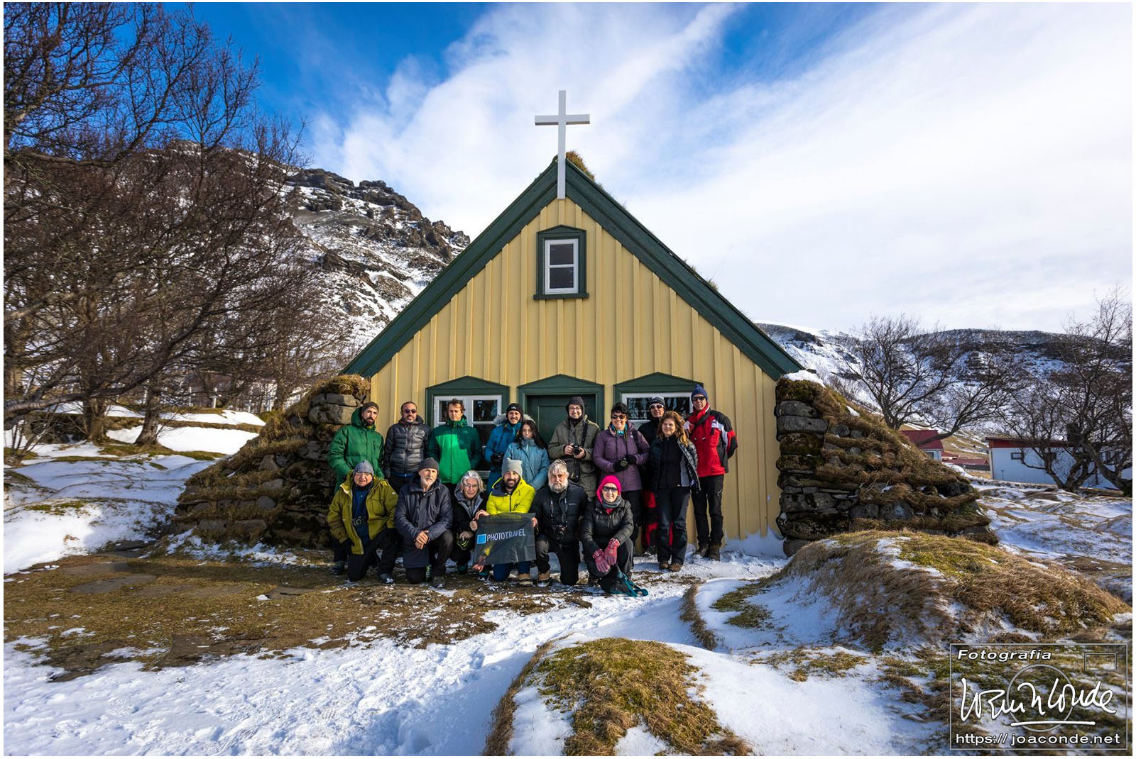 Después de un buen madrugón en Madrid, llegué al aeropuerto de Keflavik a media mañana. Recogidas las dos furgonetas (éramos en total 16 personas) pusimos rumbo a Grundarfjörður. Allí nos familiarizamos con el fresquito local, con ponernos los crampones para todo y con no sacar los dedos de los guantes más que para hacer las fotos imprescindibles.