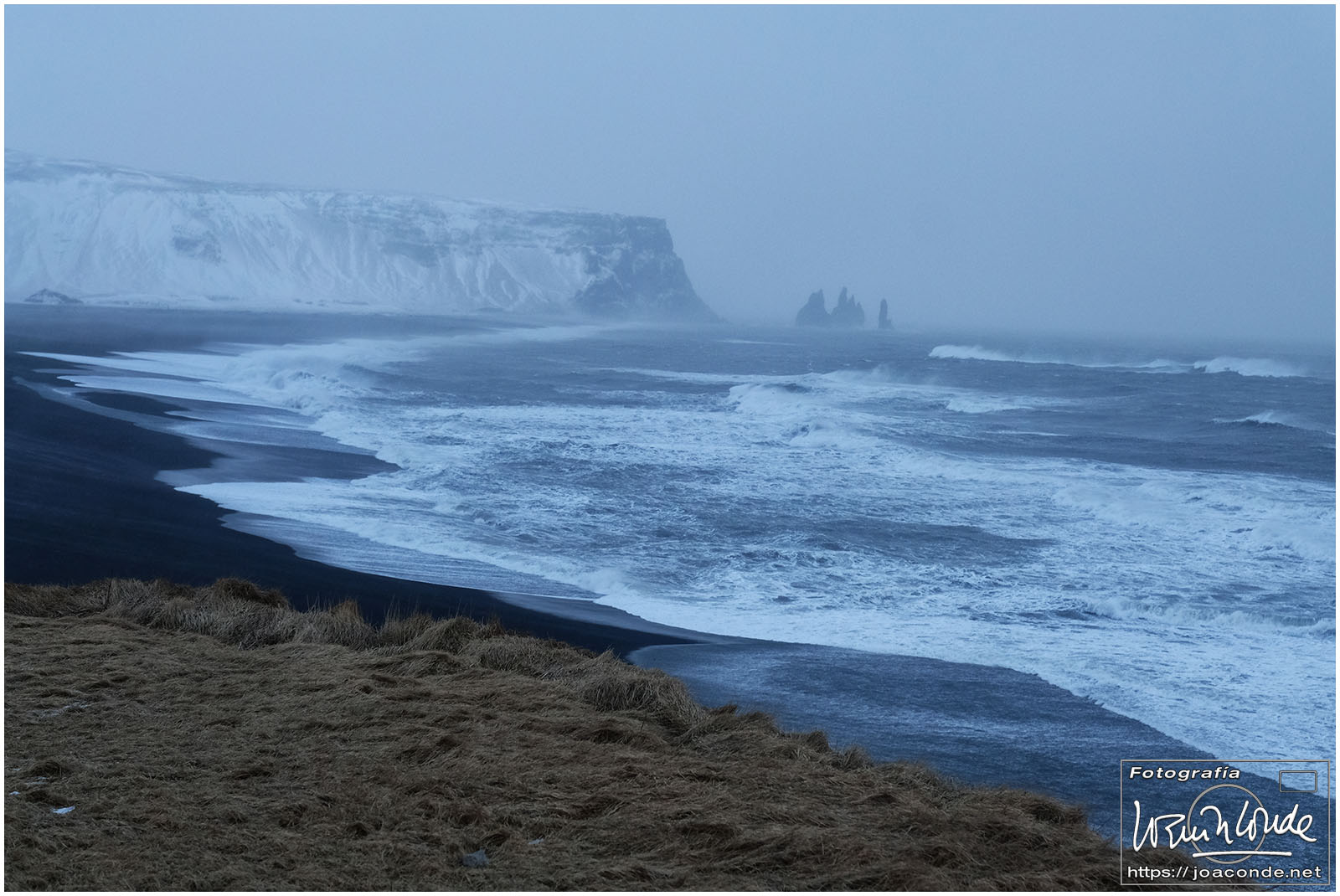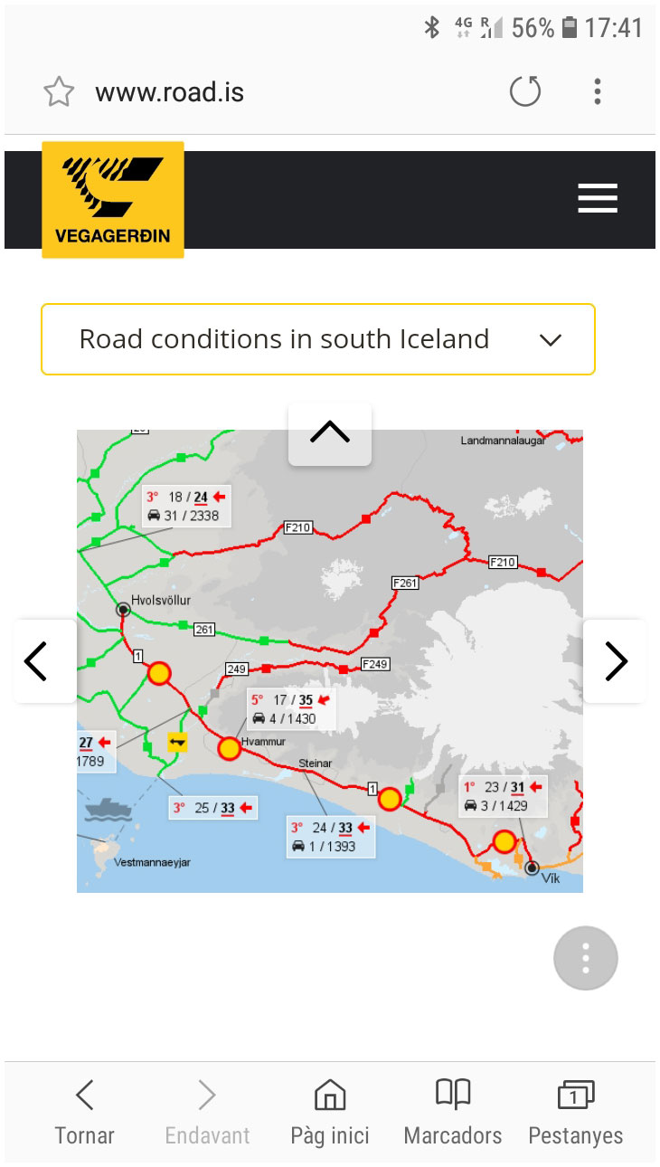 Empezamos yendo a los acantilados de Dyrhólaey y la playa de Reynisdrangar, donde literalmente el viento te llevaba. El tiempo estaba empeorando por momentos. Al llegar al hotel de Klaustur dimos un paseo por un bosque cercano, pero yo me volví pronto al pueblo para ir a la piscina. La sensación de estar en bañador bajo 0º y entrar en agua a veintitantos fue única. Luego descubrí otra bañera que humeaba con agua de 38 a 40 grados; me quedé en ella hasta arrugarme. Lástima que no se podían hacer fotos 🫤.