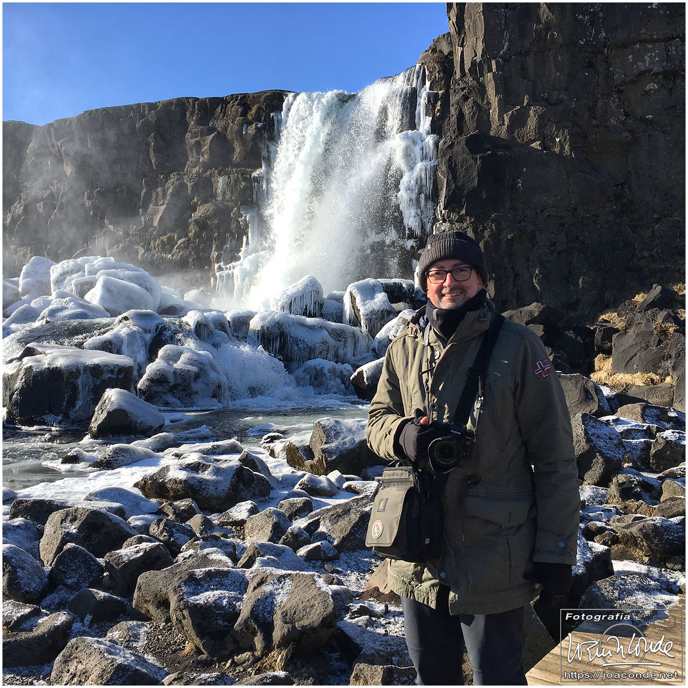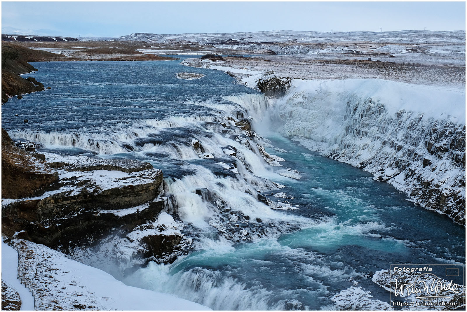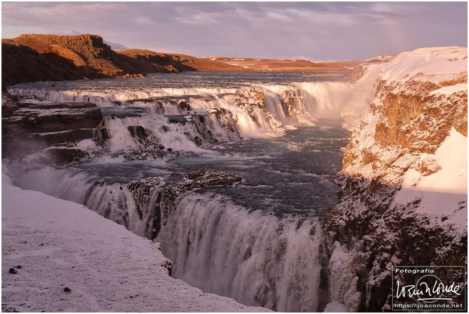 Antes del amaneces volvimos al lago; después seguimos hasta la cascada Öxarárfoss. En ese parque de Þingvellir, que era Patrimonio de la Humanidad, se veían claramente las pruebas de la deriva continental. Cerca estaba Gullfoss, un conjunto de fallas y cascadas indescriptible. Con la ventisca, se mojaban los objetivos, y con el frío, se agotaban las baterías. Pero allí seguíamos luchando contra los elementos.