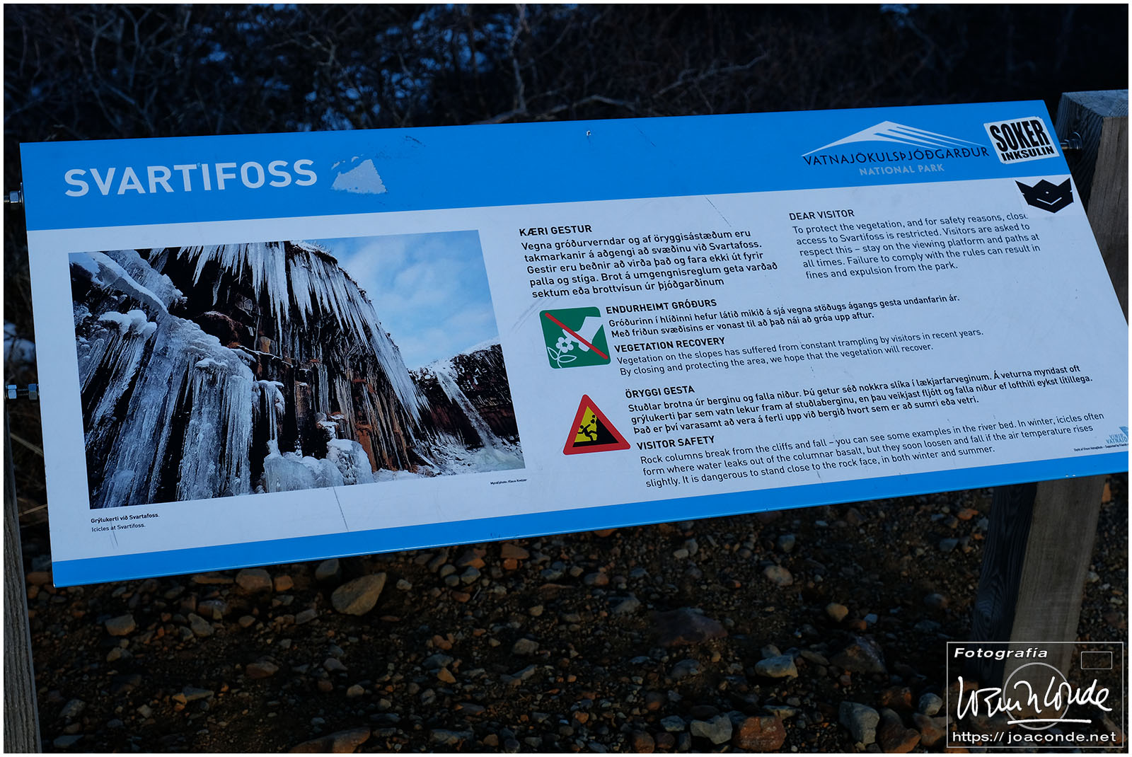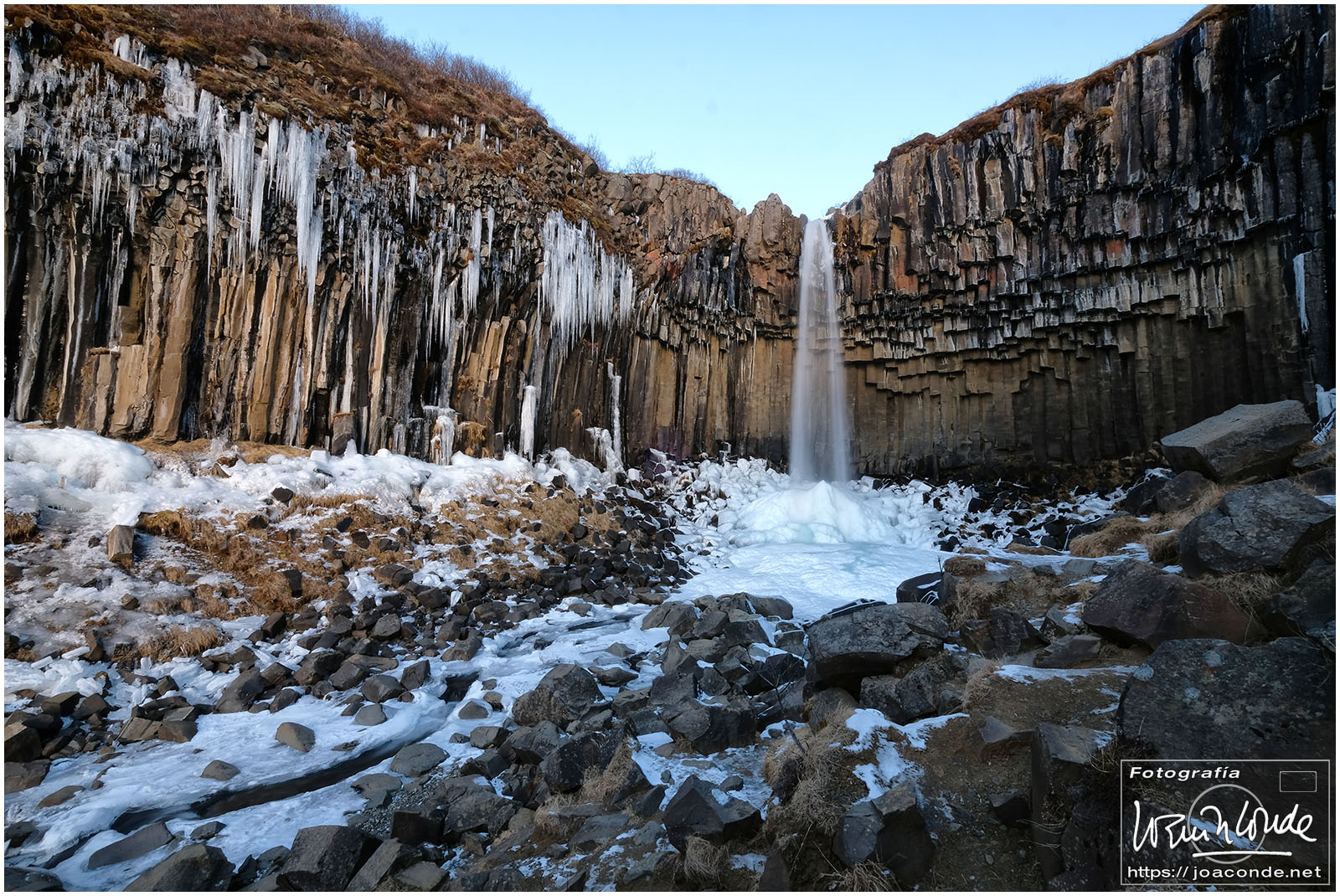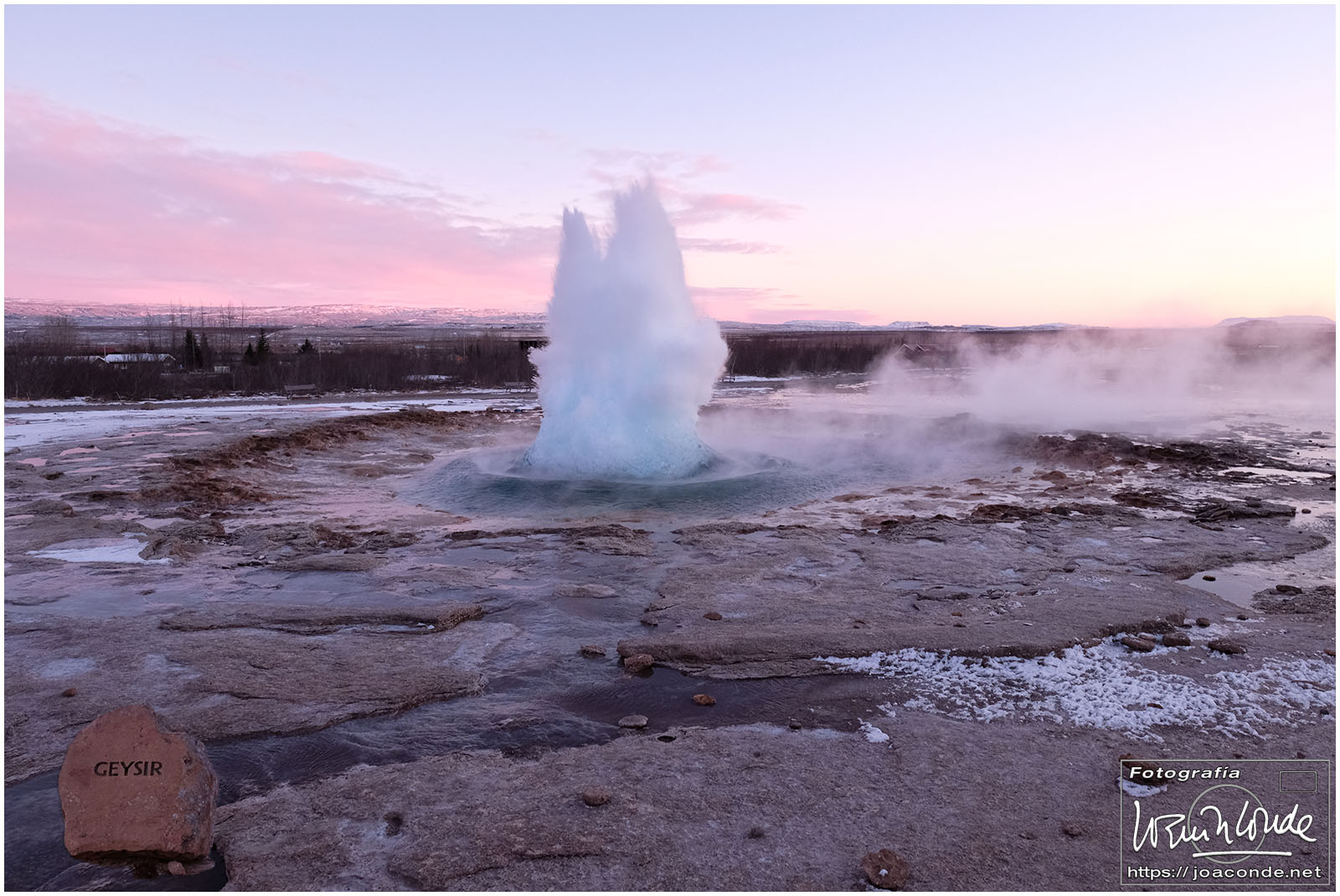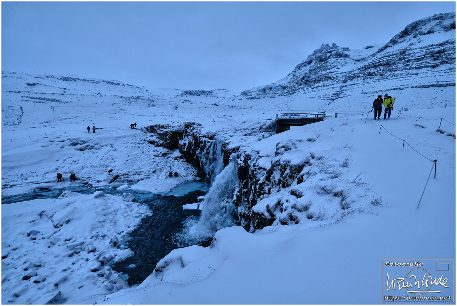 Antes del amaneces volvimos al lago; después seguimos hasta la cascada Öxarárfoss. En ese parque de Þingvellir, que era Patrimonio de la Humanidad, se veían claramente las pruebas de la deriva continental. Cerca estaba Gullfoss, un conjunto de fallas y cascadas indescriptible. Con la ventisca, se mojaban los objetivos, y con el frío, se agotaban las baterías. Pero allí seguíamos luchando contra los elementos.