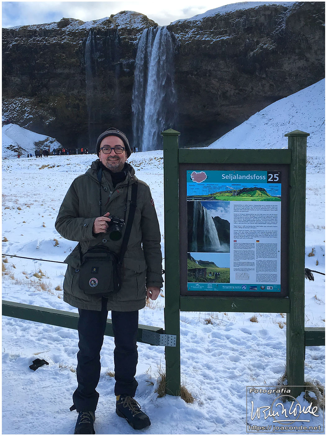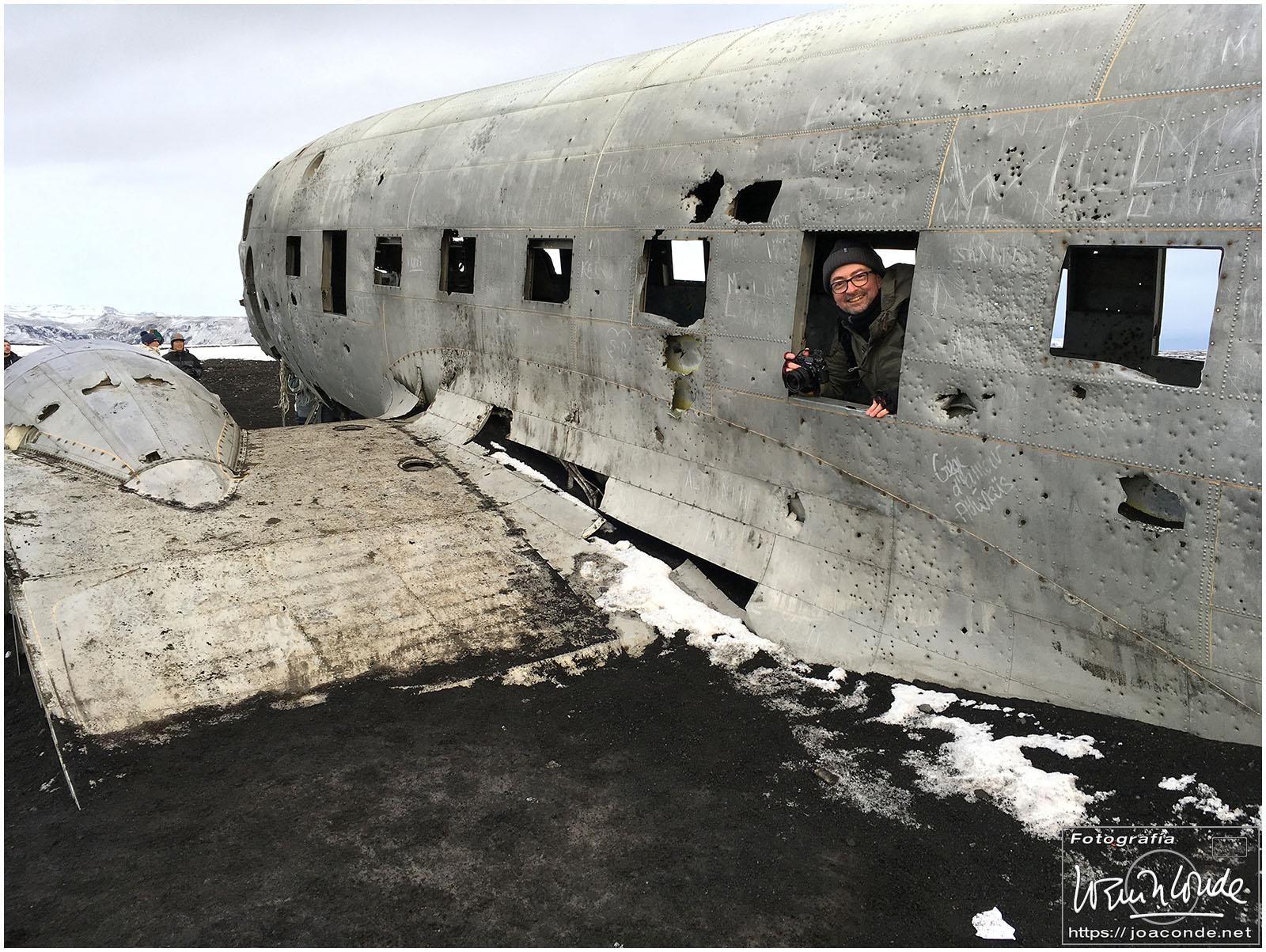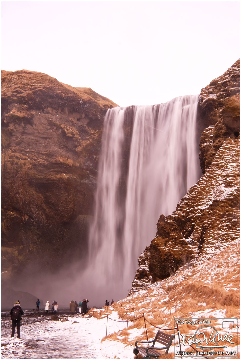 Empezamos la ruta fotográfica en las cascadas de Seljalandsfoss. Aunque era posible pasar por detrás del agua y subir a sitios con mejores vistas, me limité a disfrutar del paisaje nevado, paseando por las placas de hielo sin caerme. Al mediodía estábamos en Skógafoss, una de las cascadas más impresionantes de Islandia que además se veía desde la ventana de nuestra habitación. Después de recorrerla, mojarme y trepar por la montaña, decidí volverme al hotel para tomarme un sopicaldo y descansar para la caminata de la tarde que fue hasta el avión abandonado en la playa de Sólheimasandur.