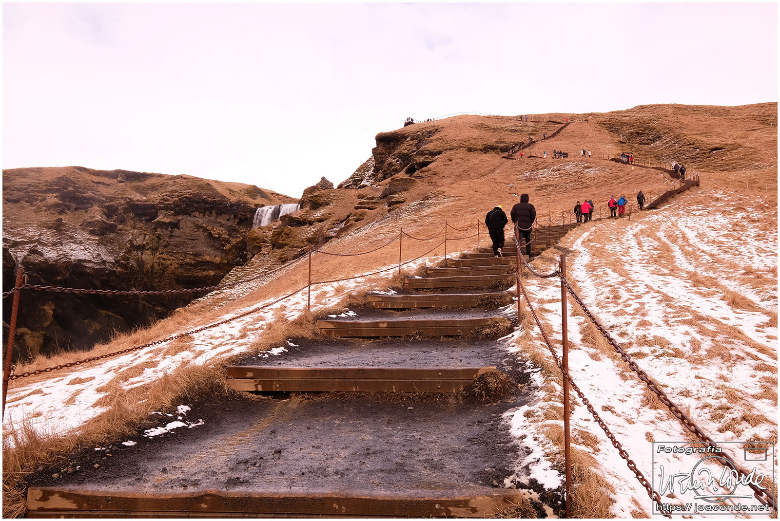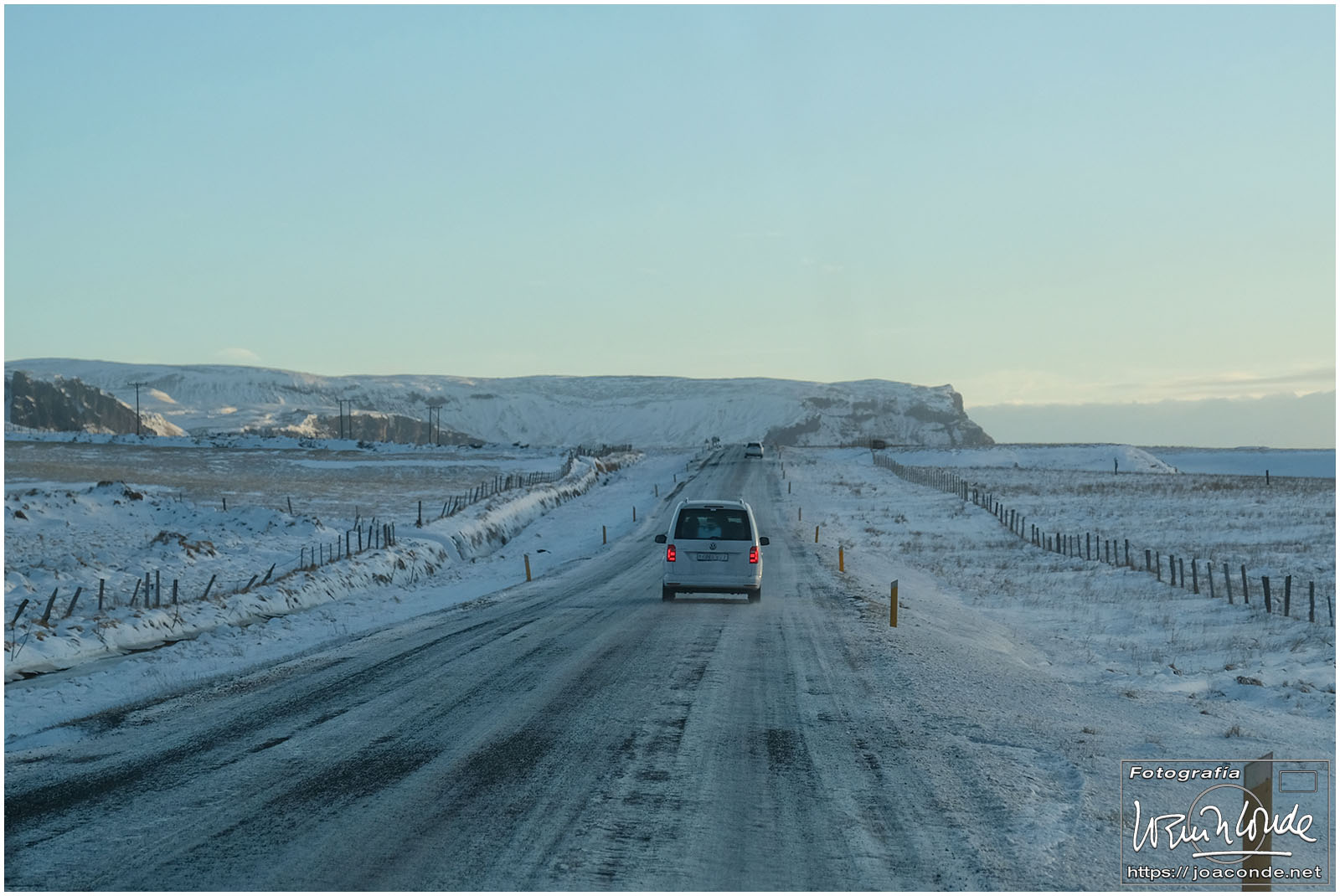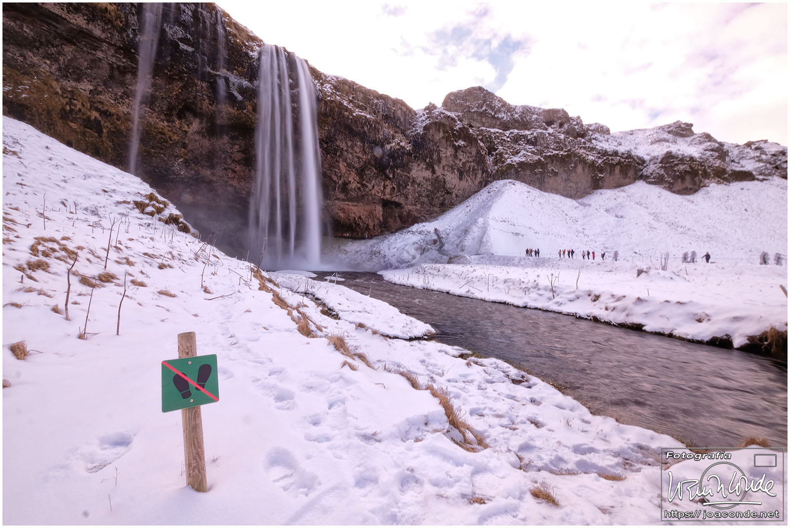 Empezamos la ruta fotográfica en las cascadas de Seljalandsfoss. Aunque era posible pasar por detrás del agua y subir a sitios con mejores vistas, me limité a disfrutar del paisaje nevado, paseando por las placas de hielo sin caerme. Al mediodía estábamos en Skógafoss, una de las cascadas más impresionantes de Islandia que además se veía desde la ventana de nuestra habitación. Después de recorrerla, mojarme y trepar por la montaña, decidí volverme al hotel para tomarme un sopicaldo y descansar para la caminata de la tarde que fue hasta el avión abandonado en la playa de Sólheimasandur.