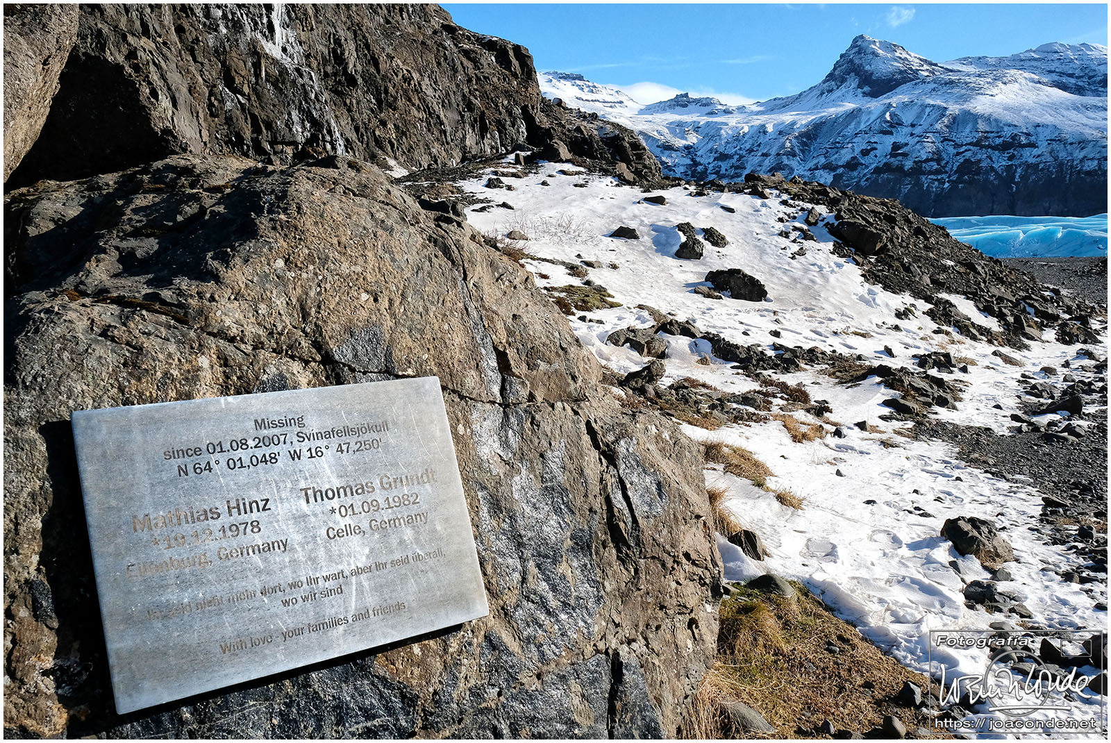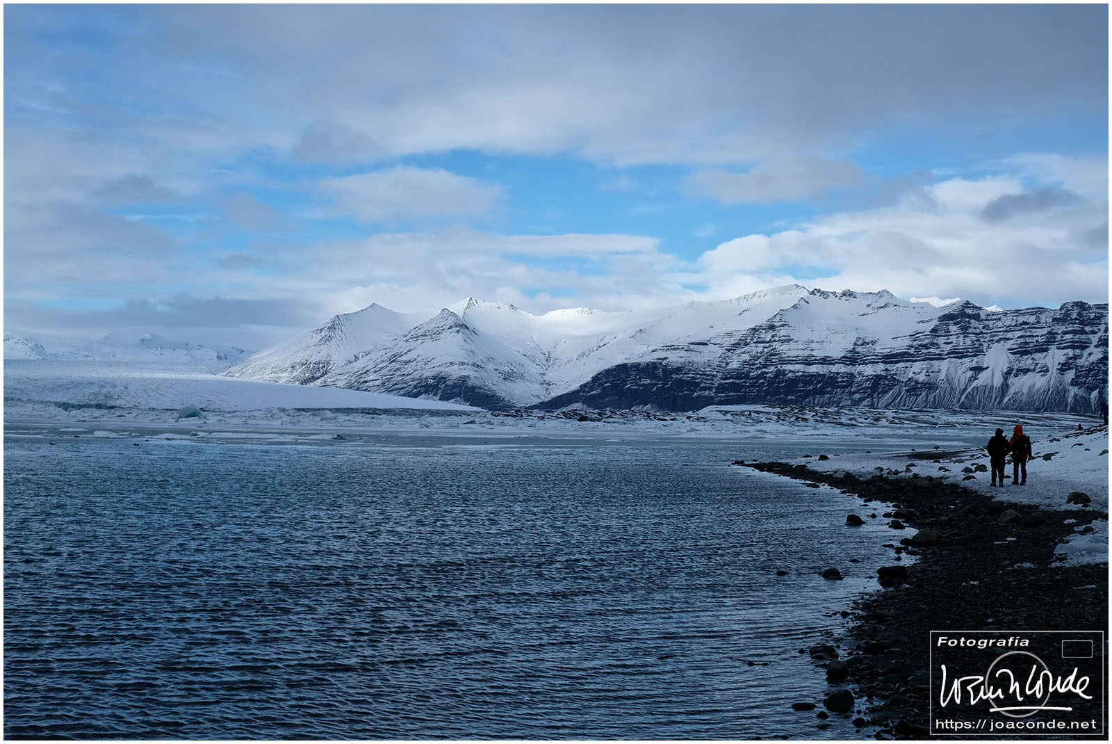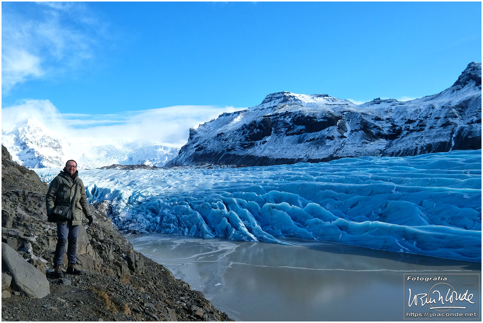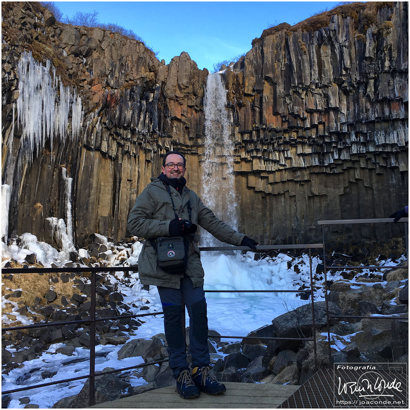 Seguimos rumbo al este, con parada en la montaña Lomagnupur, hasta la Cascada Negra Svartifoss. Después descubrimos el glaciar Svínafellsjökull, espectacular, con una preciosa luz cambiante. La sorpresa nos la dieron Laura y su novio, una pareja de españoles que desafiando el frío, se hacían fotos de boda al borde del glaciar.