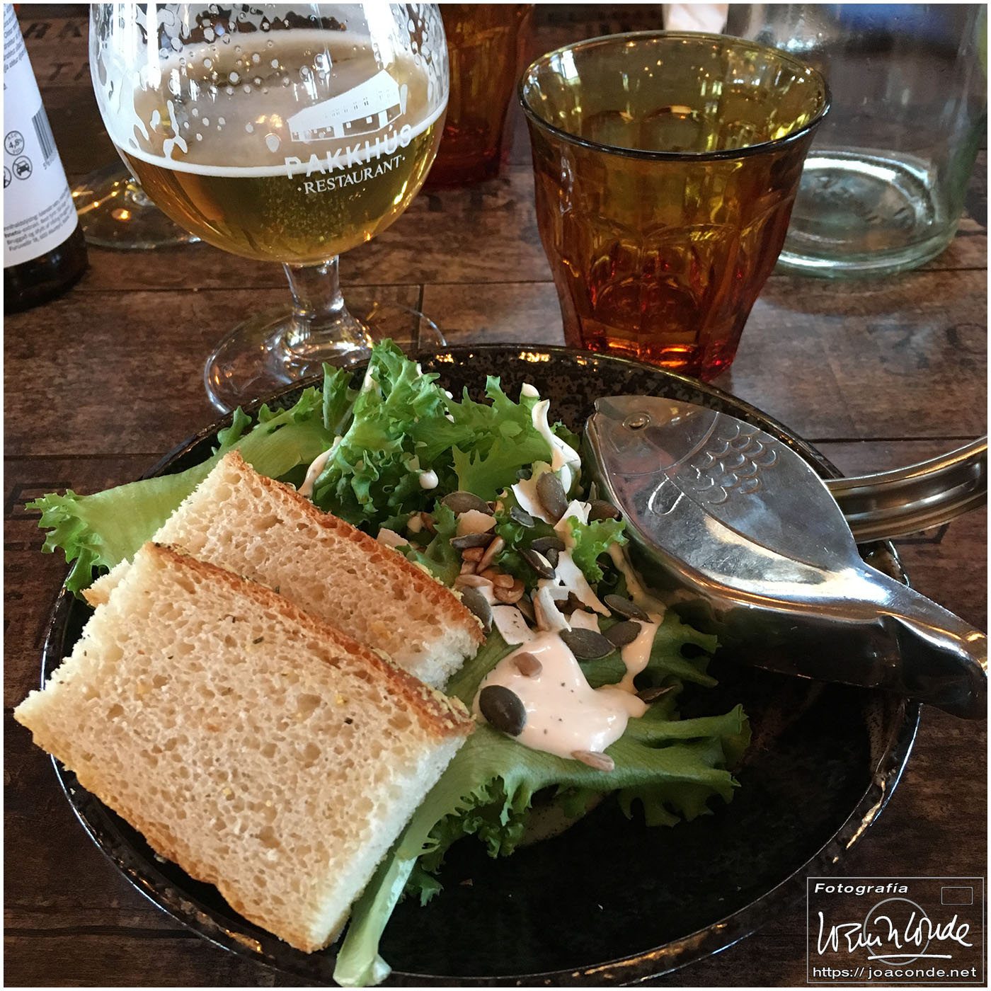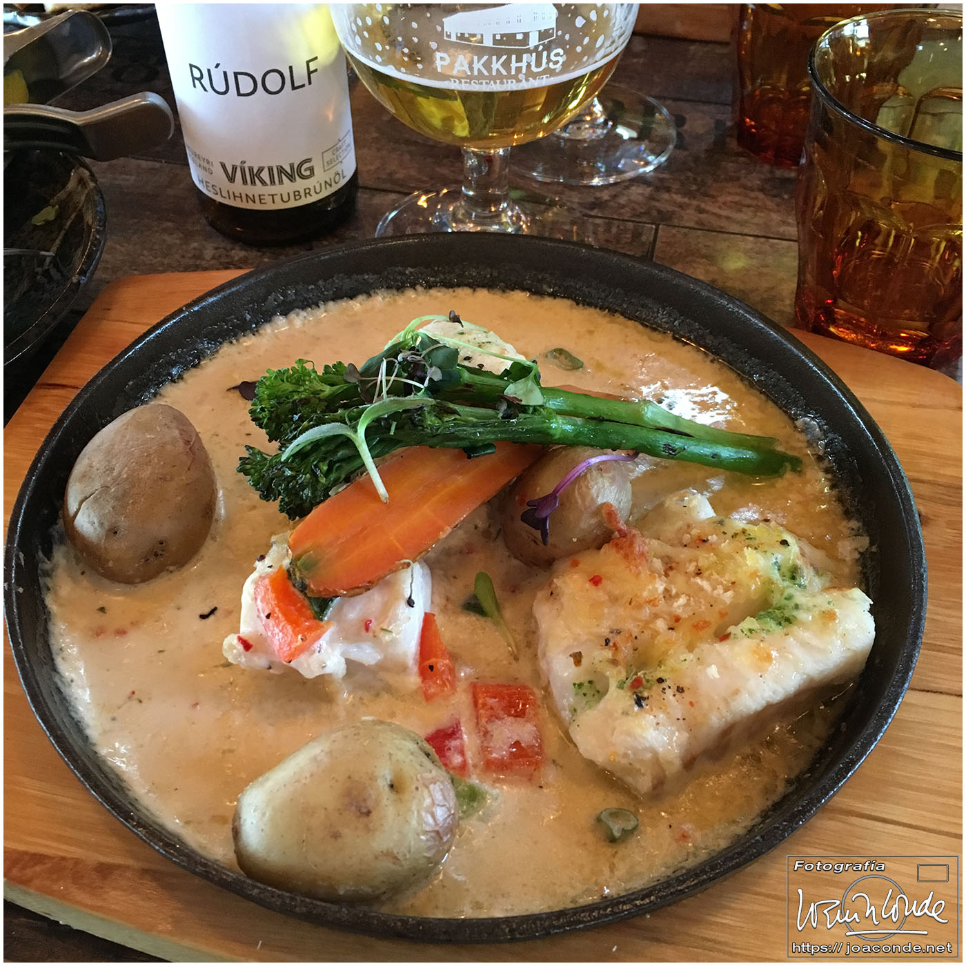 Fue un día de relax en Höfn, forzado por el temporal que teníamos encima. Cambiamos de un hotel aceptable a otro estupendo y paseamos por la ciudad y el puerto. En el grupo de Whatsapp avisaron que había una oferta de bacalao en el restaurante Pakkhus y allá que fui. Todo estuvo estupendo, sobre todo la cerveza que me recomendó Unai, que era conductor, guía, fotógrafo, gourmet y buenísima persona.