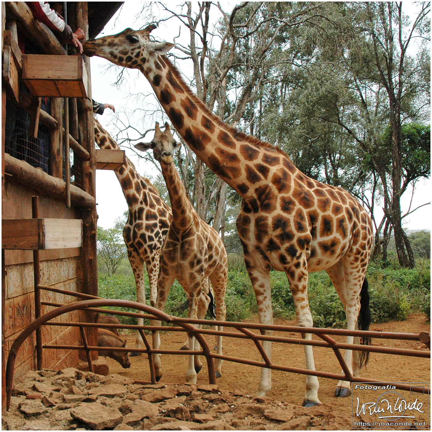A comienzos del s. XIX era sólo una estación de la línea de ferrocarril que unía Mombasa (en el Índico) con el Lago Victoria. Nairobi, una de las capitales más cosmopolitas de África, también era una ciudad muy verde y con poco tráfico. Comimos y descansamos un rato, ya que la noche en el Airbus había sido toledana. Por la tarde estuvimos en el Giraffecentre, donde había bastantes jirafas de Rothschild, y se les podía dar pienso. Y más tarde fuimos a la casa en que vivió Karen Blixen, autora de «Memorias de África», convertida en un museo lleno de recuerdos de la escritora.