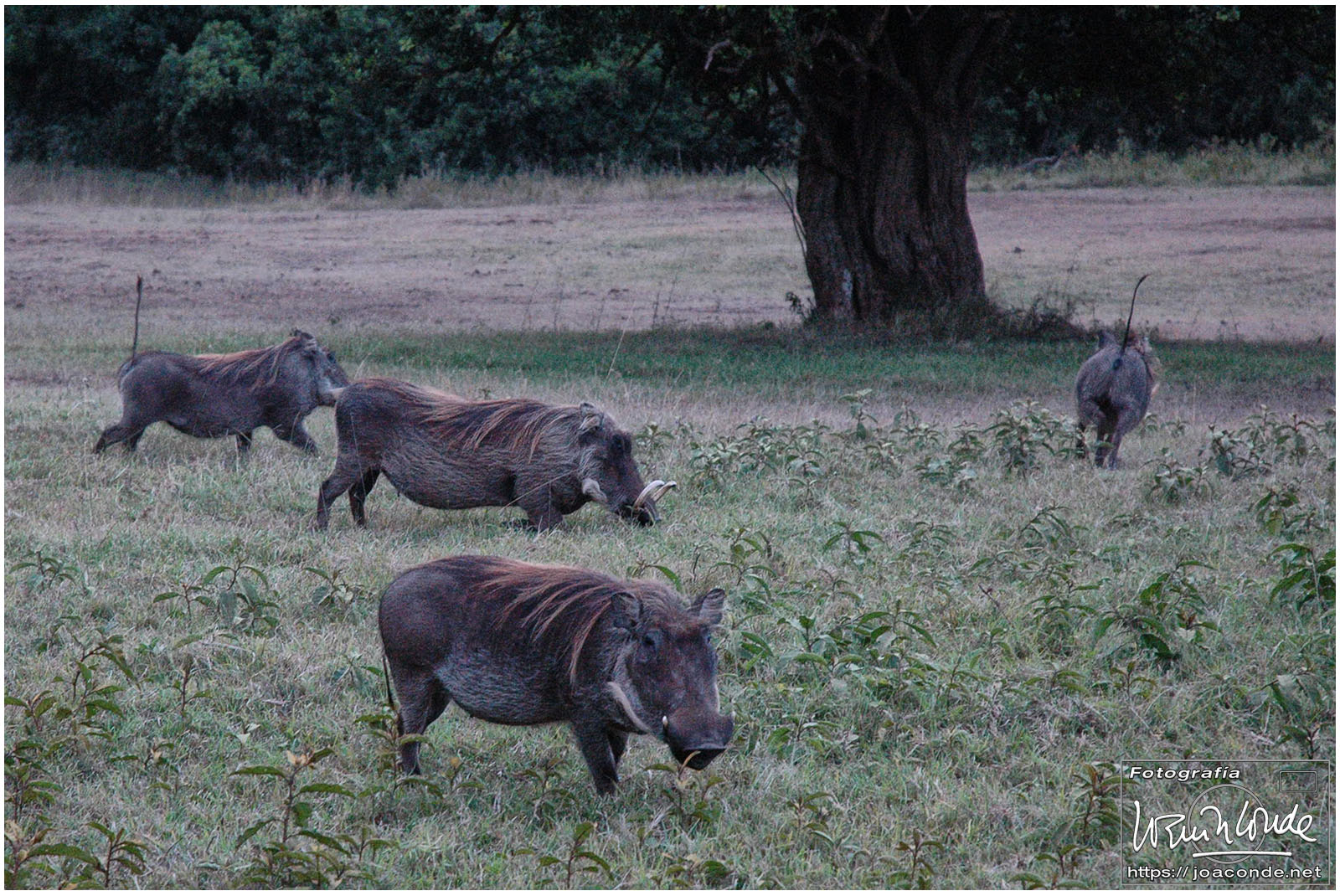 Todo el día estuvimos en ruta, casi 400 km, hasta el Parque Nacional de Aberdare. De tarde en tarde atravesábamos algún poblado y yo hacía fotos para ver después qué hacía la gente, cómo era su vida cotidiana. Estaba oscureciendo cuando unos jabalíes verrugosos salieron a recibirnos al llegar a las tierras altas.