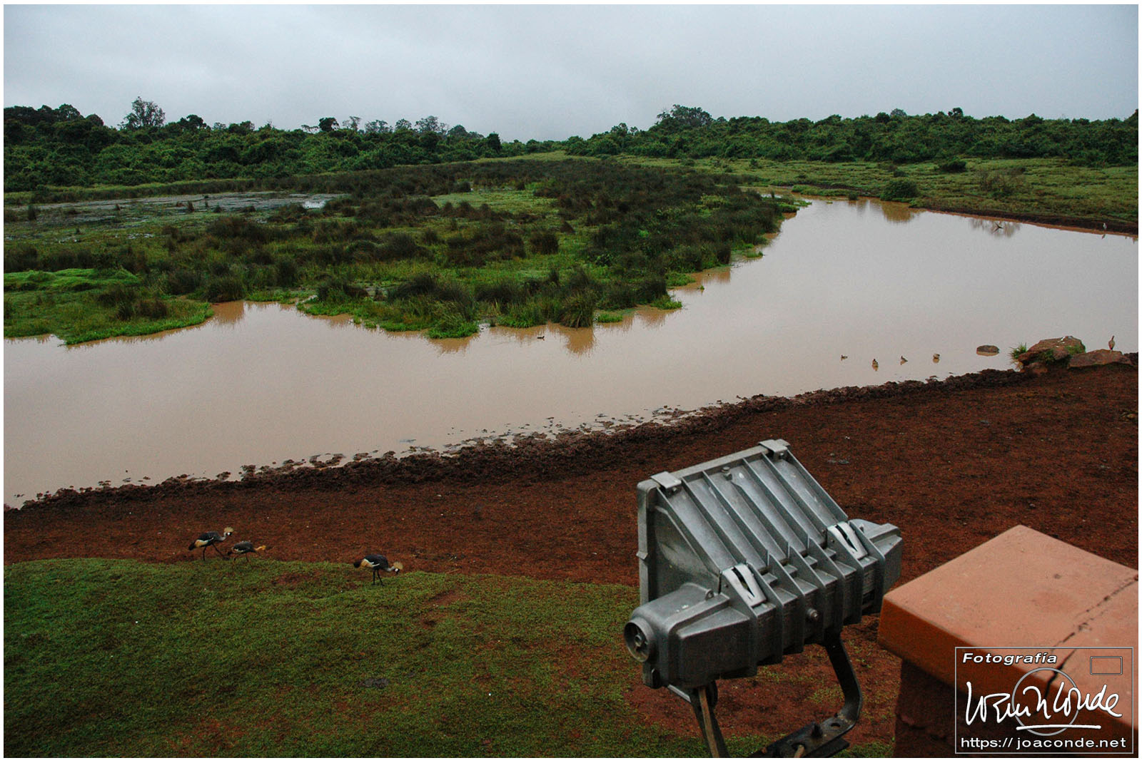 Dejamos las maletas en el Aberdare Country Club y unos 4×4 nos llevaron a The Ark, el arca, un lodge único, construido encima de unos árboles, aprovechando el desnivel sobre una charca. Nos asignaron un «camarote» y nos informaron del código del timbre. Toda la noche se acercaban animales a beber y avisaban por si querías bajar a un mirador a observarlos. Hacía frío; no pensábamos que en África íbamos a echar de menos un forro polar. La cena fue de película, tras una ventana del comedor, un grupo de elefantes retozaban y una gineta comía un plato de sobras. Apenas descansamos aquella noche, entre el frío y los timbrazos. Al clarear bajé por última vez al mirador; África despertaba y al rato nosotros dejábamos el arca y poníamos rumbo a Nakuru.