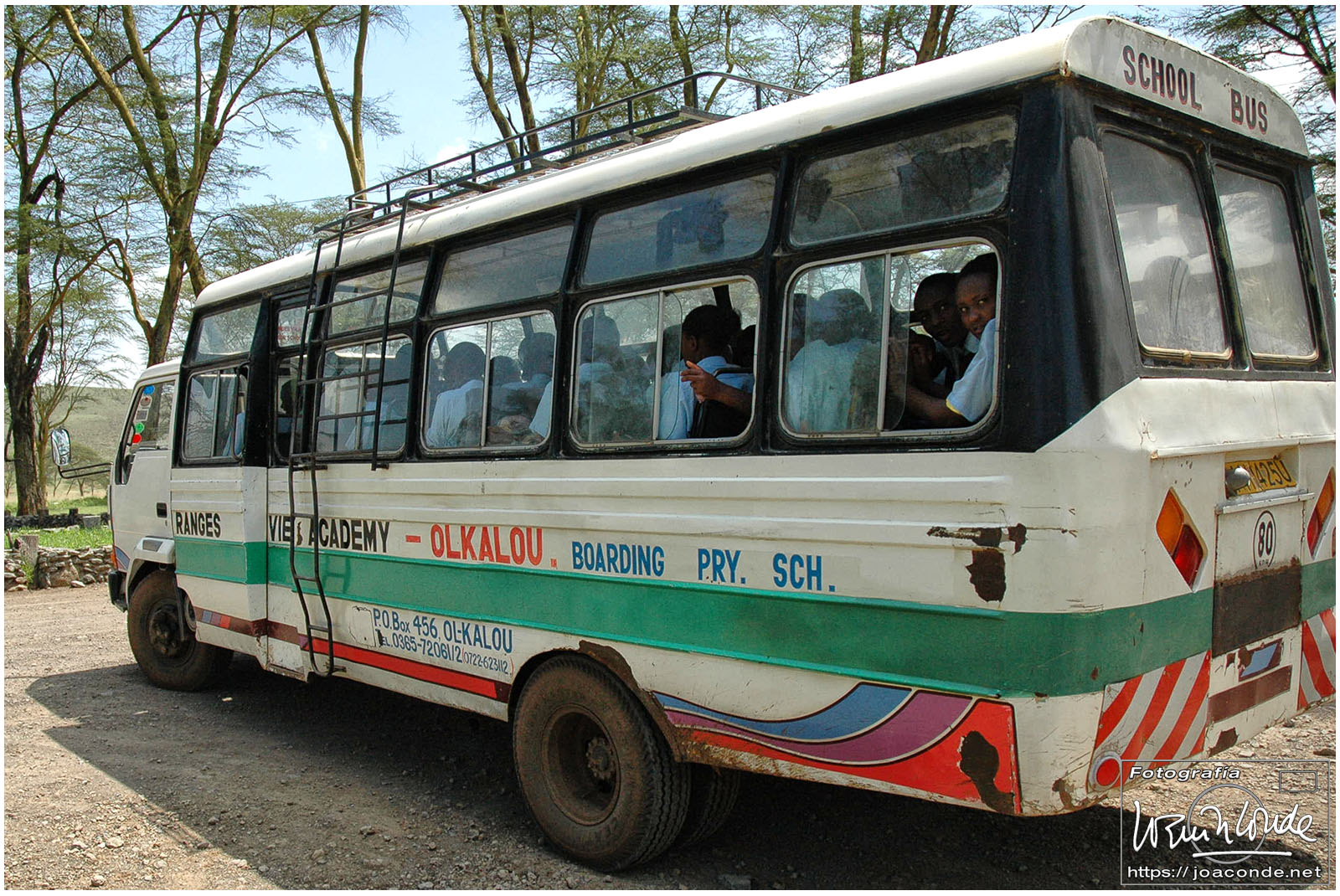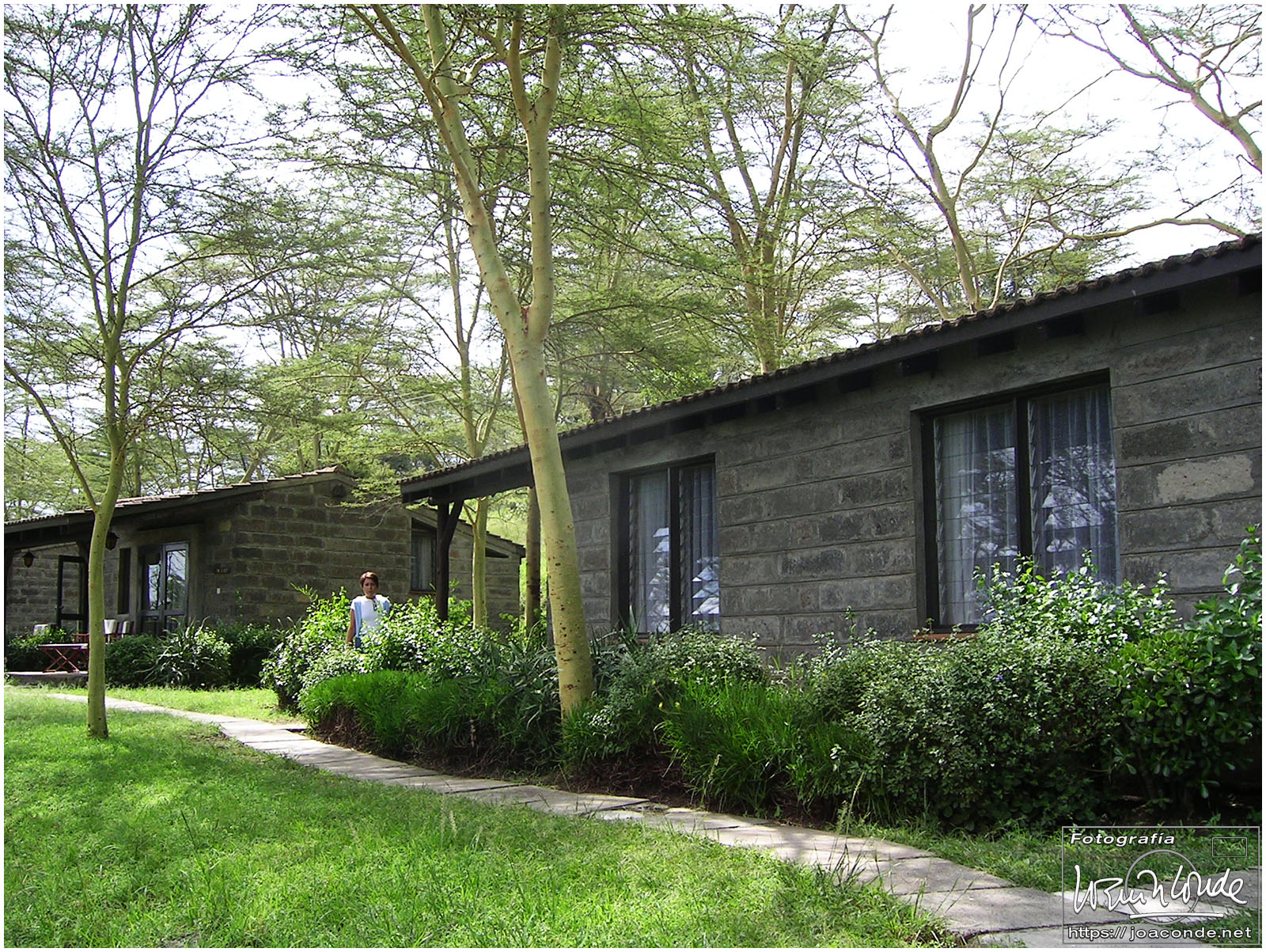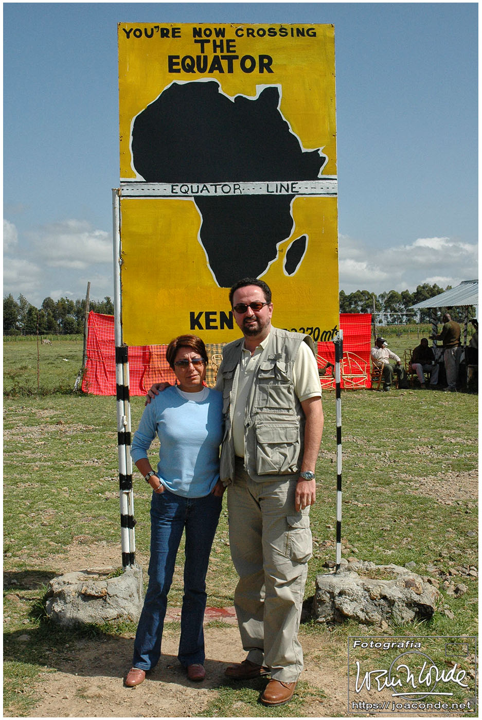 Estuvimos unas tres horas en camino. Vimos muchos niños en las cunetas, era sábado y no había colegio. Recordé que en los años sesenta, los chiquillos de mi barrio hacíamos eso mismo, sentarnos junto a la carretera nacional Madrid-Málaga para saludar a los turistas que pasaban. Nos hicimos una foto en la raya misma del Ecuador. En aquellas paradas no faltaban las «toilettes». Pasamos cerca de las Cataratas Thompson, un lugar apacible frecuentado por lugareños y por 100 chelines (menos de un euro) me hice una foto con tres auténticos kikuyu. Después entramos en el Valle del Rift, llegamos a la ciudad de Nakuru y nos alojamos en el Lion Hill Lodge.
