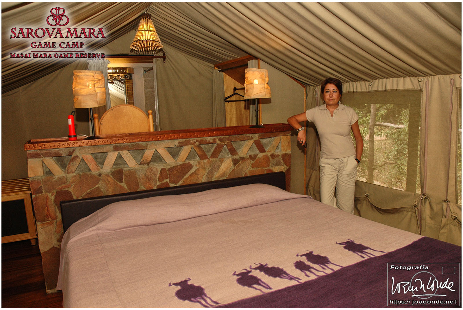 Saliendo hacia Masái Mara, cuatro rinos se nos fueron acercando hasta casi echarse encima de la camioneta. Después seguimos la ruta, hacia Narok, una ciudad sin nada que ver, a veces por caminos malísimos en los que era imposible rodar a más de 50 km/h. En ocasiones parábamos cuando grupos de niños nos saludaban o simulaban arreglar baches… allí acabamos con los bolígrafos, cuadernos, caramelos y baratijas que llevábamos. A mediodía llegamos por fin al Sarova Mara Camp, un campamento impresionante ❤️. Dentro de nuestra tienda no faltaba ningún detalle; eso sí, al salir debíamos cerrar bien las cremalleras para que no entrasen animales.