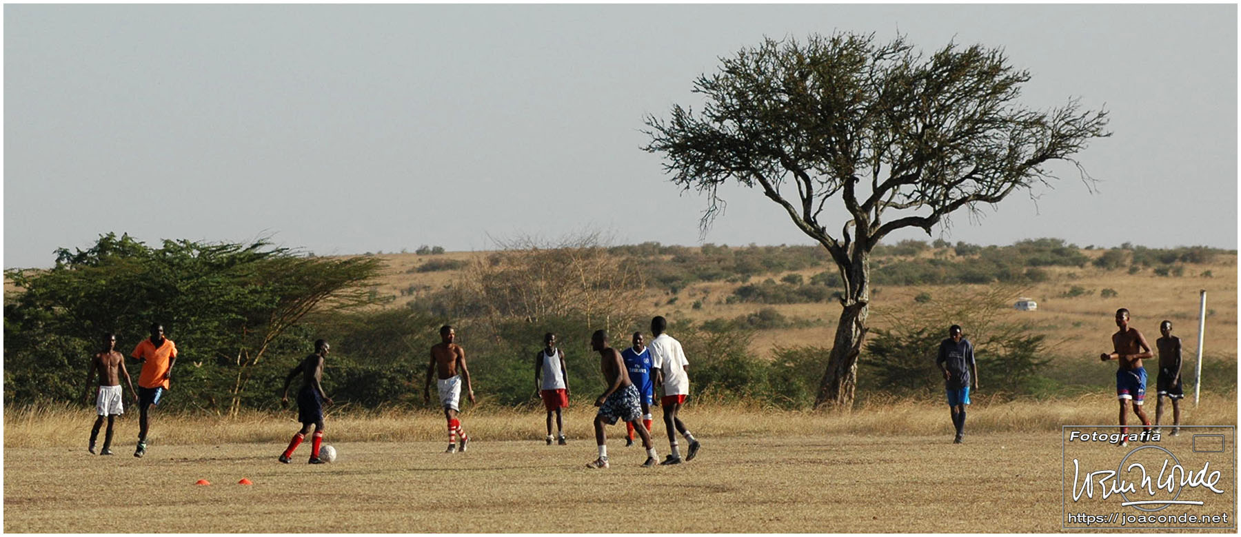 Cada mes de julio se producía la migración desde Tanzania hasta Kenia —desde el Serengueti hasta Masái Mara— de cientos de miles de ñus y cebras. Este parque era un hervidero de animales recién llegados. En el primer safari nos encontramos a un león merendándose a un ñu, leopardos echando la siesta en los árboles y en medio de todos, ¡gente jugando al fútbol!