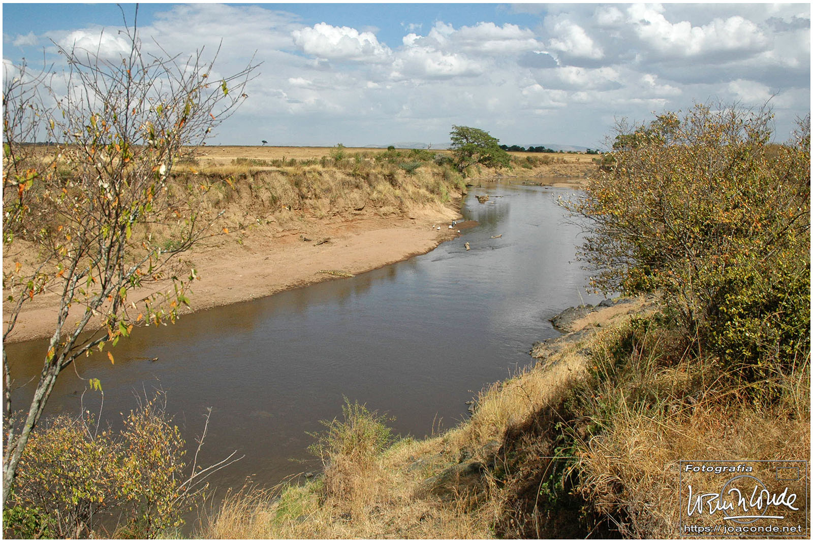 El río Mara era la puerta del paraíso, y también el infierno en que sucumbían aplastados o devorados —por cocodrilos, hipopótamos y marabúes— los más débiles, ancianos, además de los jóvenes inexpertos. También se veían algunos espectadores, como los lagartos agama. Después, a la hora del picnic, nuestro merendero estaba «ocupado» por un par de leones que ni se inmutaron con nuestra presencia; debimos buscar otra sombra a unos metros para poner pie en tierra. Muy cerca de allí estaba la frontera con Tanzania, que no era más que un enorme mojón.