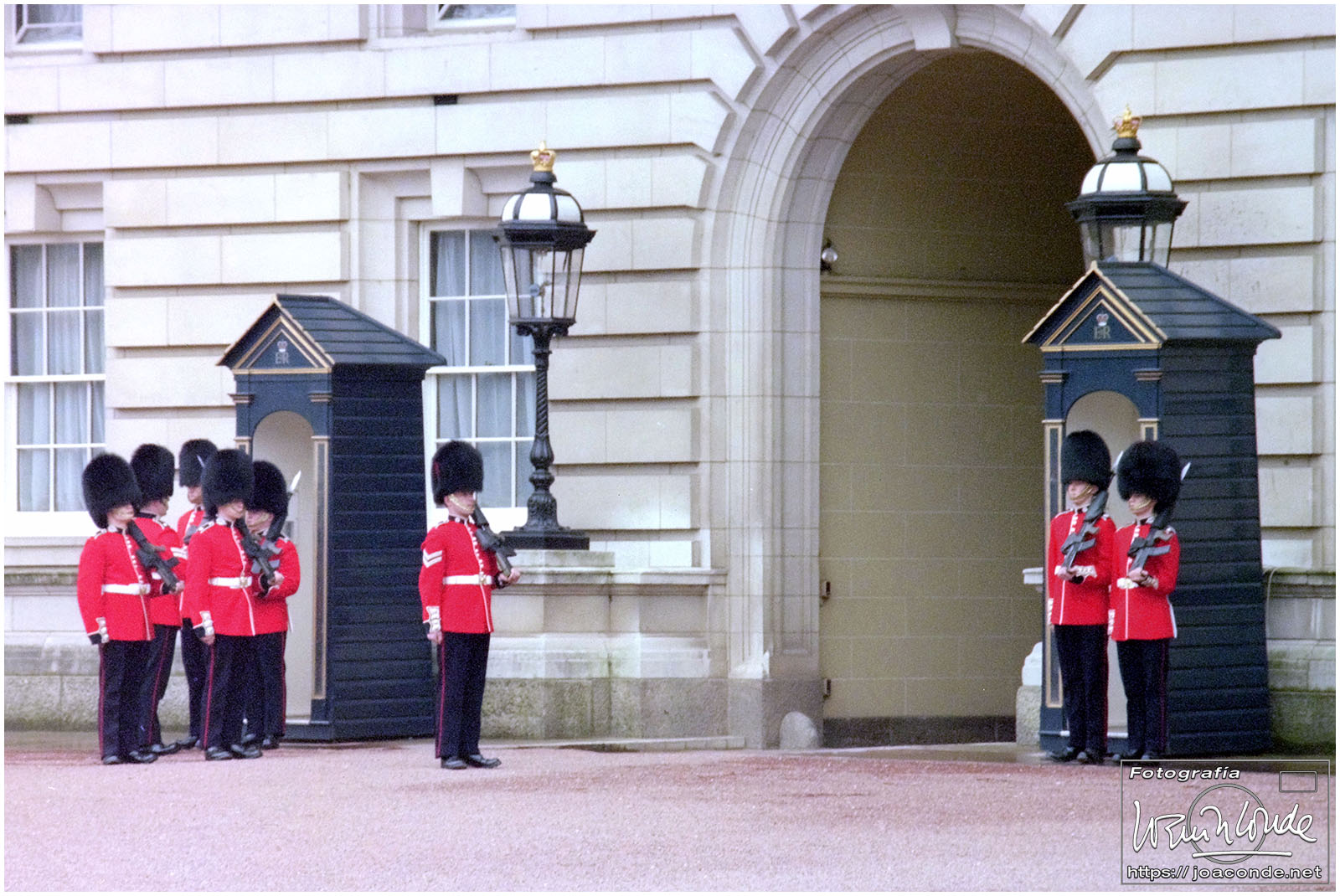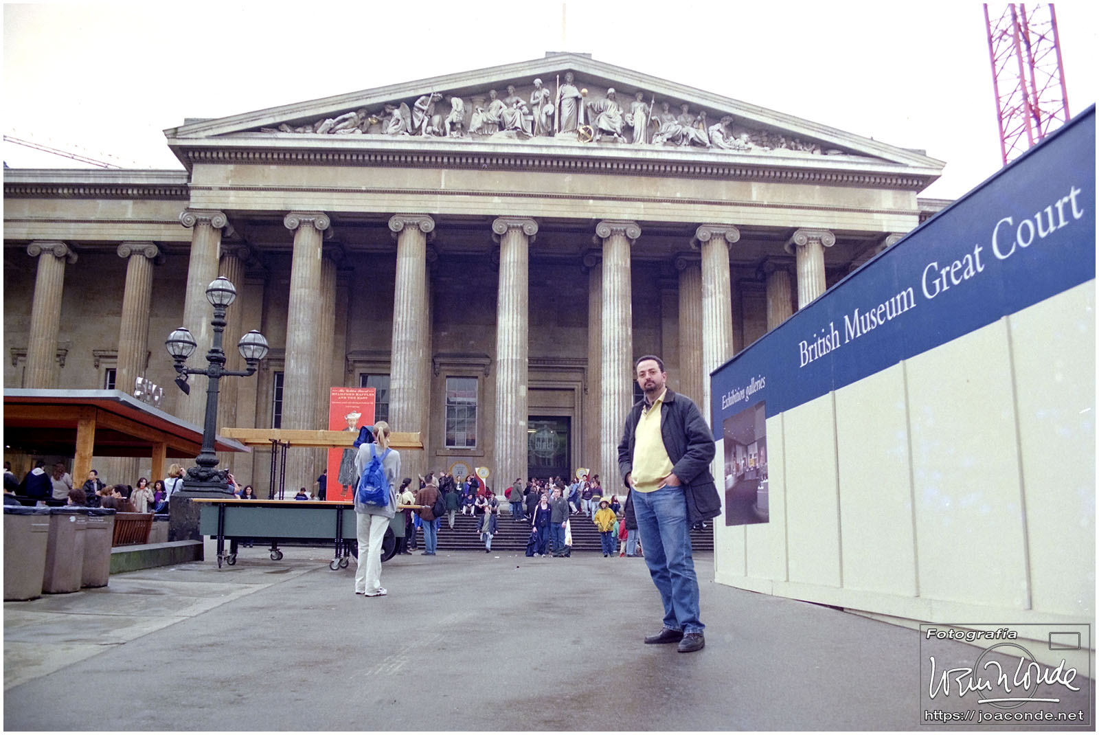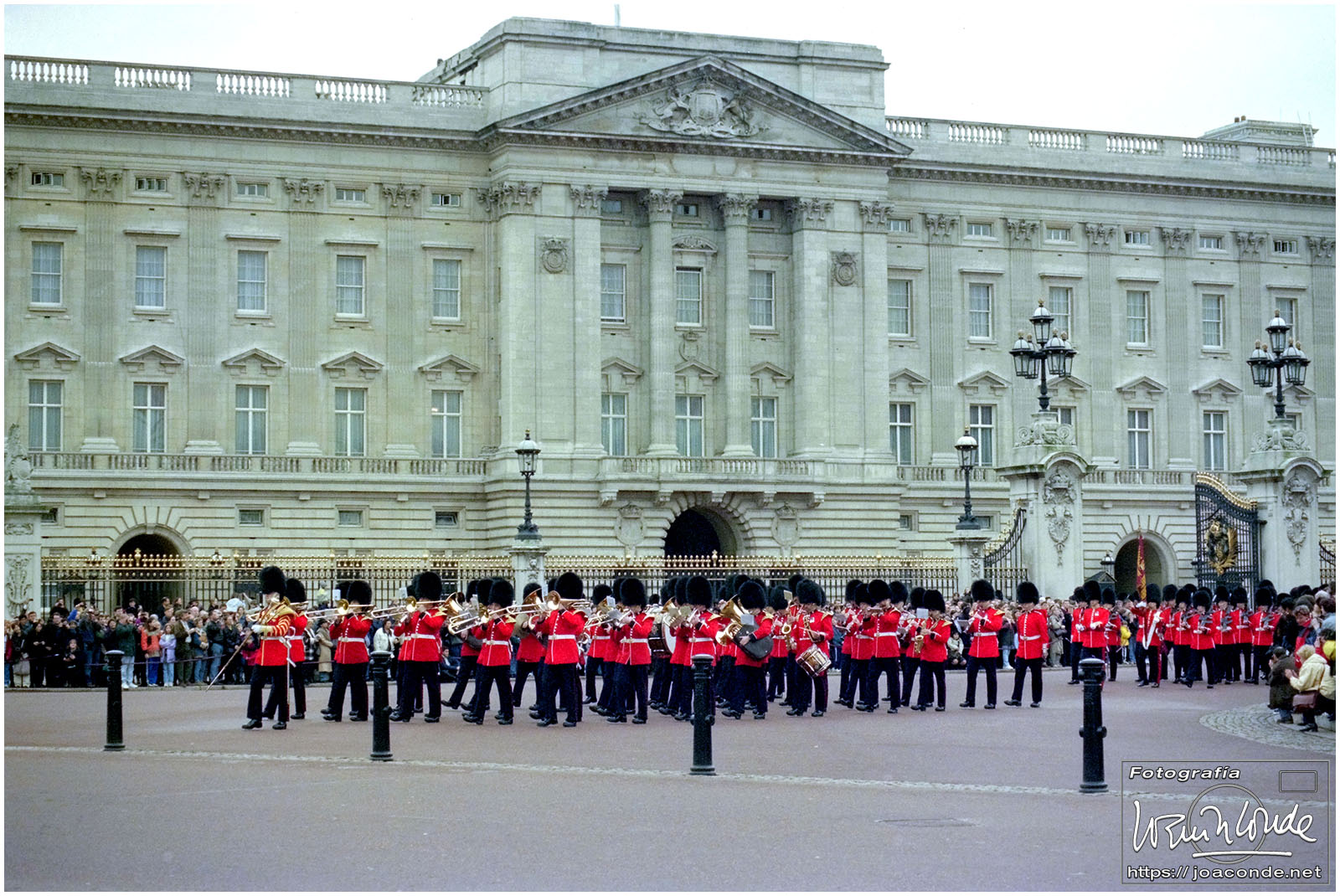 El martes estuvo lluvioso y es que el tiempo allí cambiaba bastante. Pasamos junto al Royal Albert Hall, paramos frente al Parlamento para hacer una foto y fuimos al Palacio de Buckingham, a ver el cambio de guardia. Por la tarde hicimos una corta visita al Museo Británico, donde tiré bastantes diapositivas. Por último recorrimos los alrededores de Piccadilly Circus y Trafalgar Square y volvimos al hotel en el «tube».