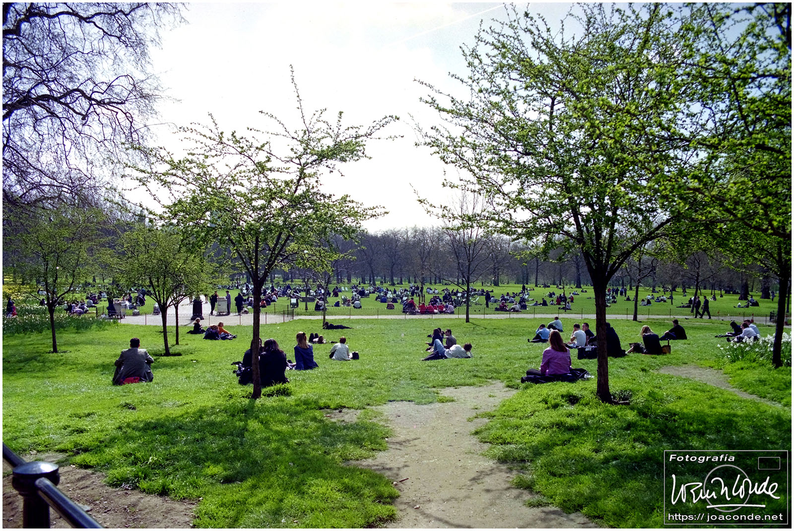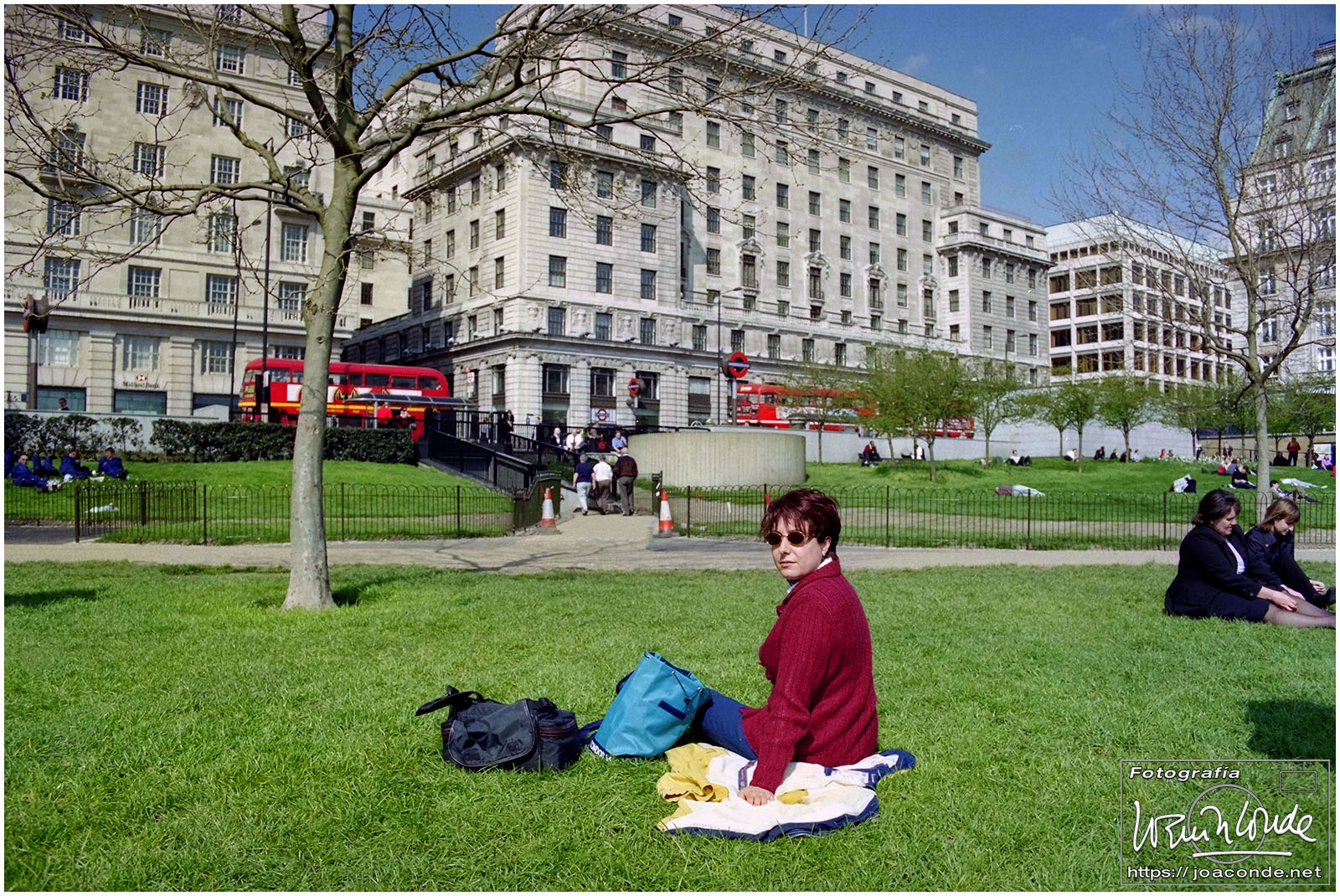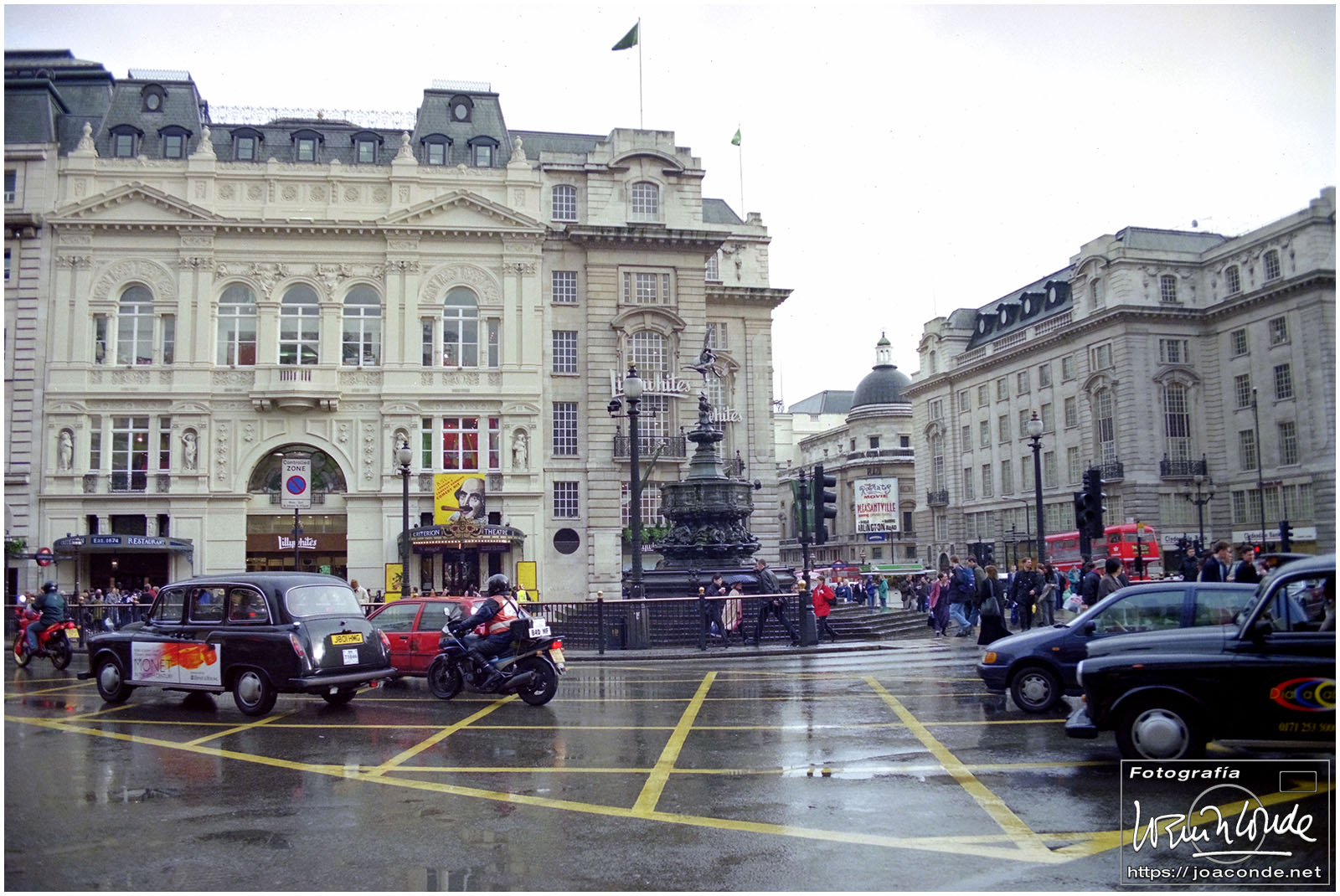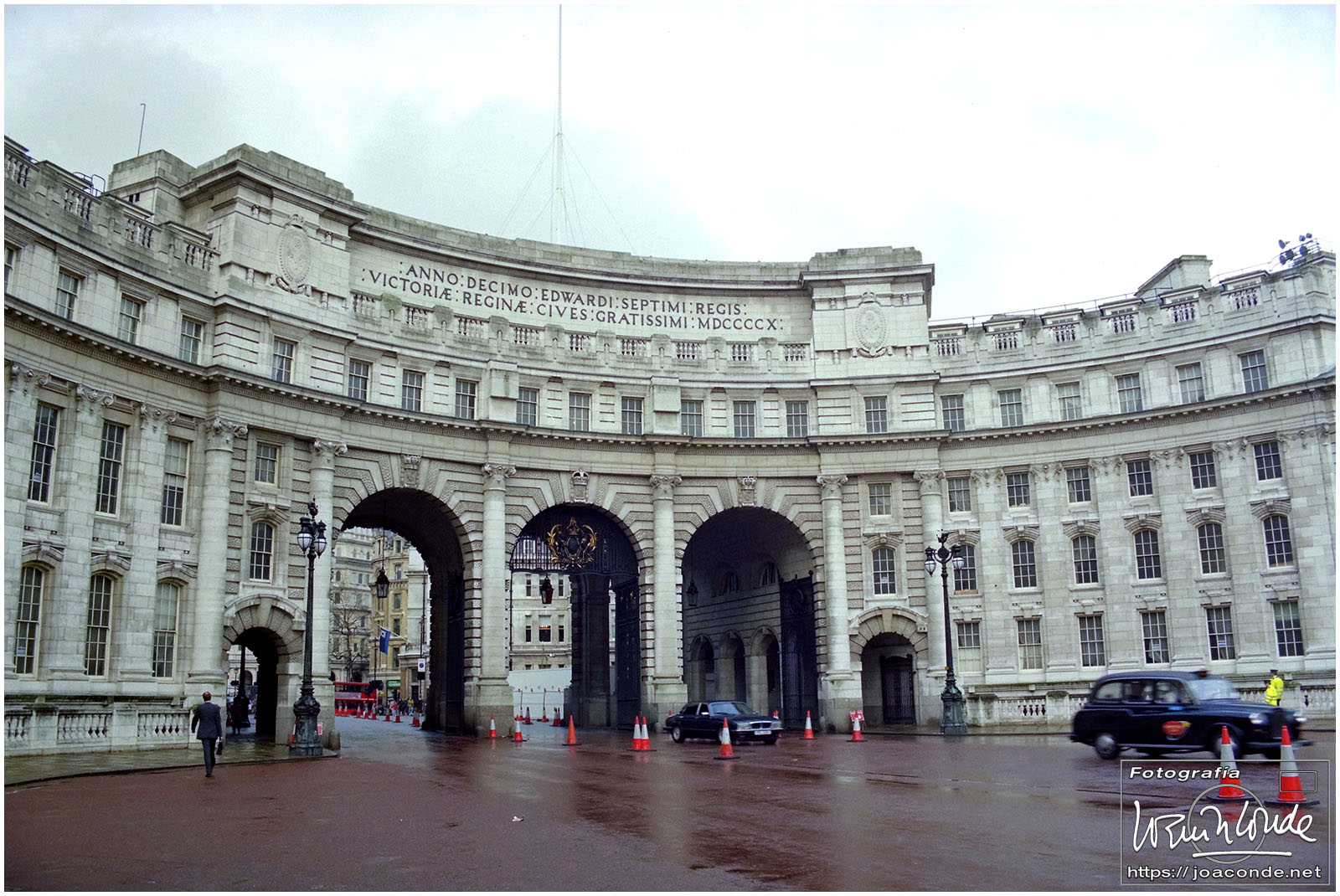 El martes estuvo lluvioso y es que el tiempo allí cambiaba bastante. Pasamos junto al Royal Albert Hall, paramos frente al Parlamento para hacer una foto y fuimos al Palacio de Buckingham, a ver el cambio de guardia. Por la tarde hicimos una corta visita al Museo Británico, donde tiré bastantes diapositivas. Por último recorrimos los alrededores de Piccadilly Circus y Trafalgar Square y volvimos al hotel en el «tube».