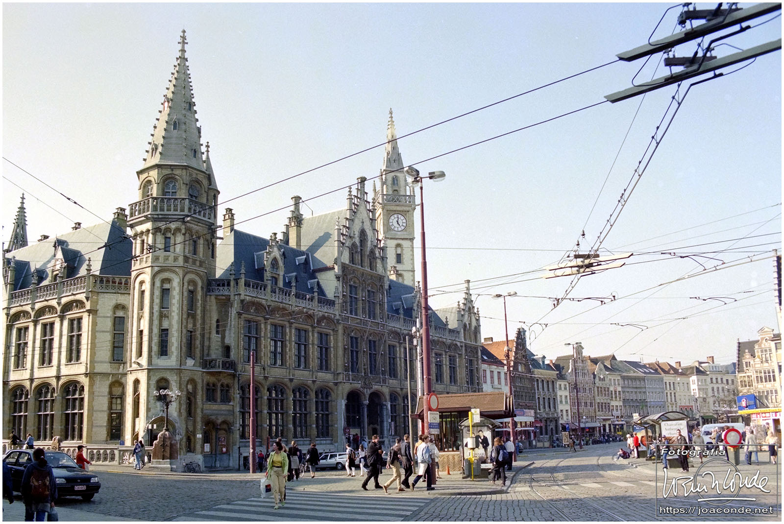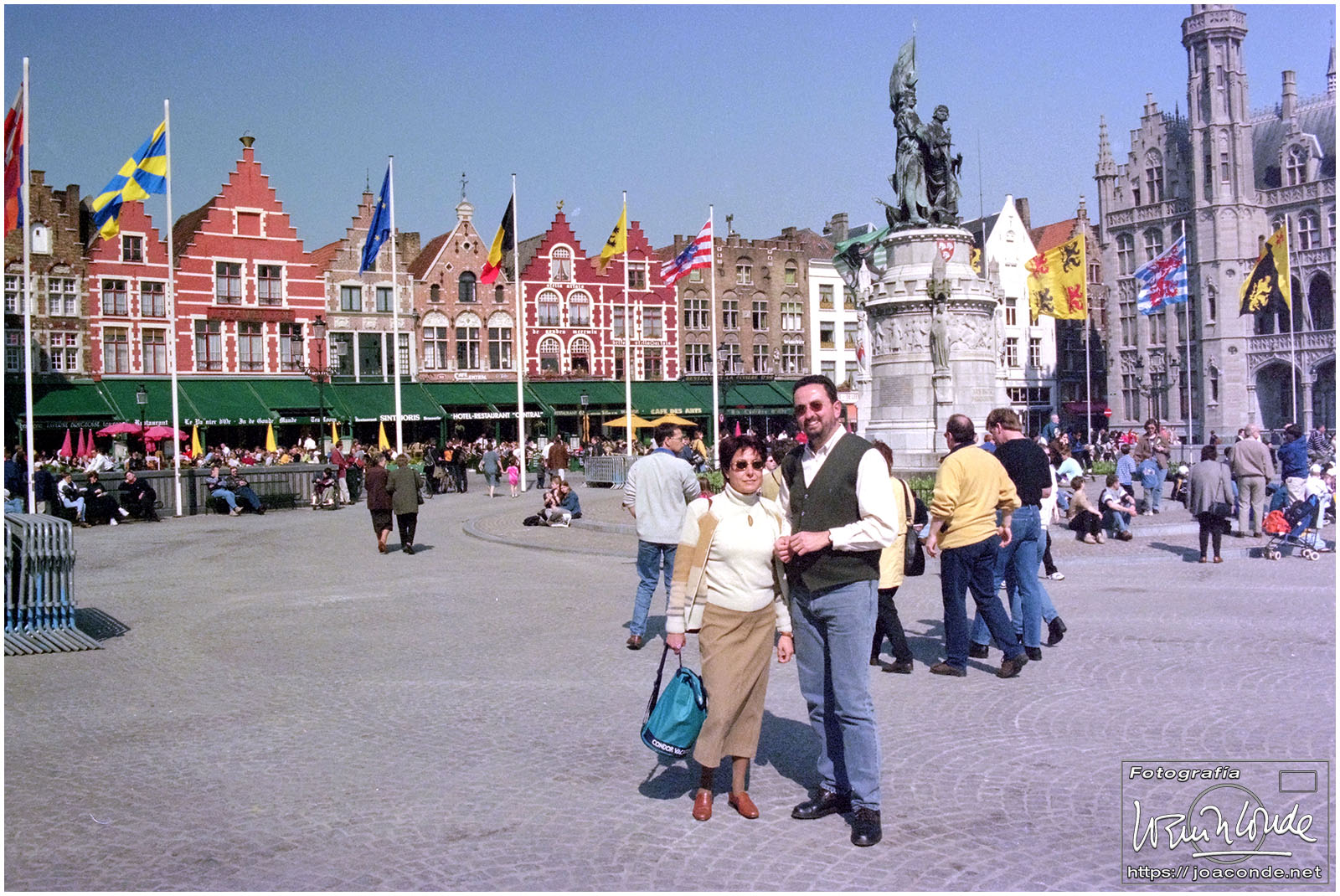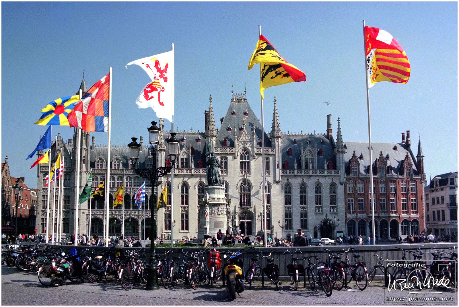 A mediodía llegamos a Brujas. El centro histórico era espectacular, en especial el Ayuntamiento y el edificio de Correos, y en general, todo el conjunto monumental de la Plaza del Mercado.