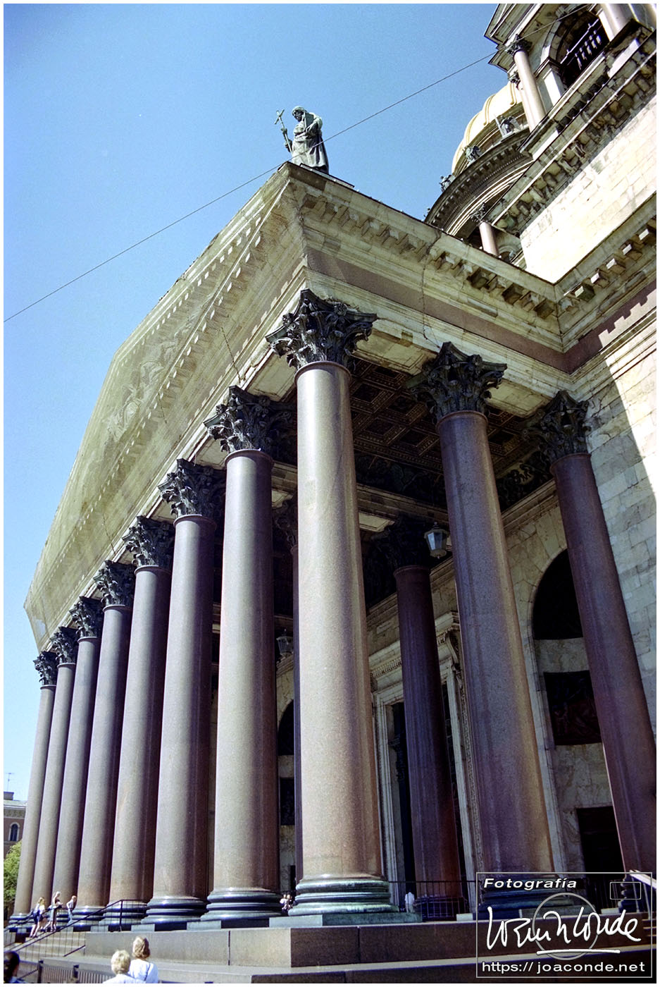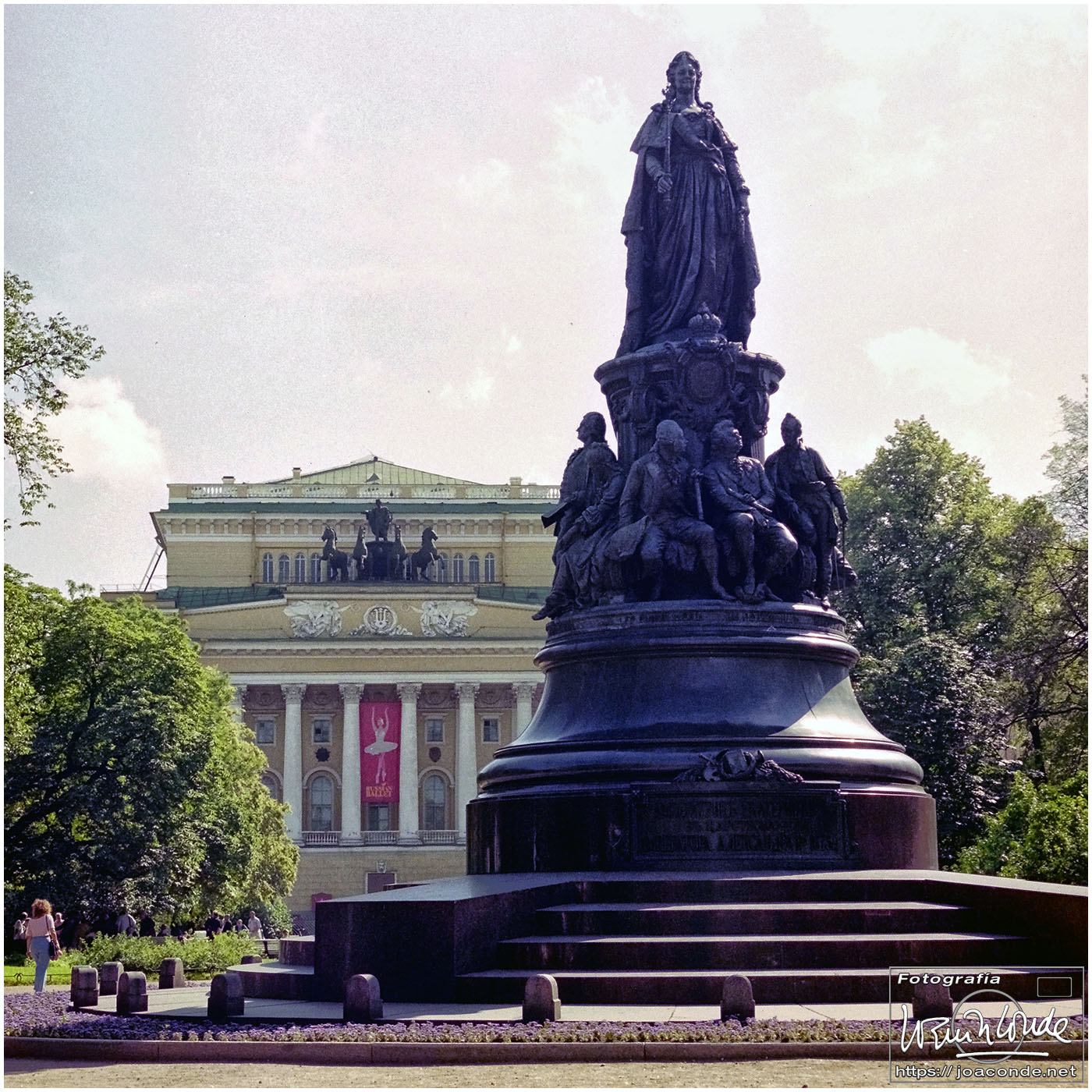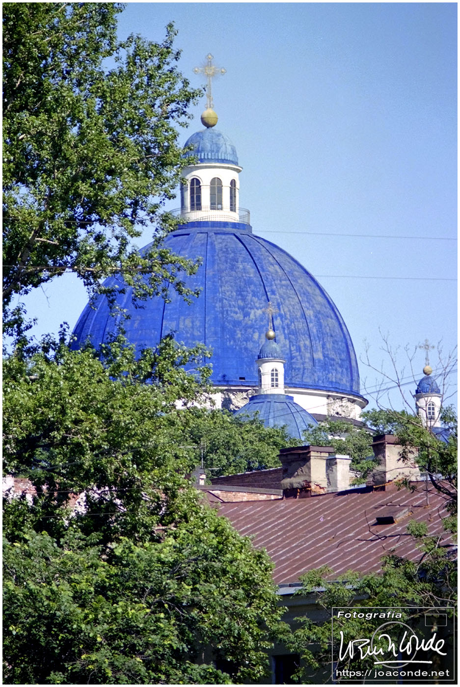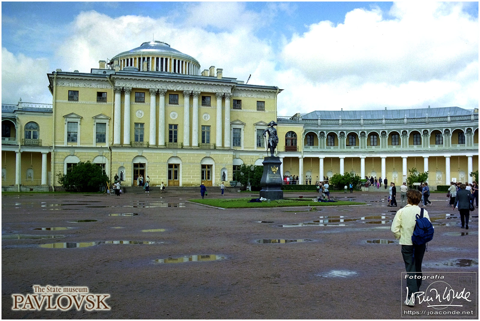 Salimos de San Petersburgo hacia el sureste, al Palacio de Pavlovsk, construido para el zar Pablo I, hijo de Catalina la Grande. Cada vez que entrábamos o salíamos de la ciudad veíamos el Monumento a los Defensores Heroicos de Leningrado. Volvimos al centro a comer, en un restaurante uzbeco. Por la tarde fuimos de nuevo a San Salvador a hacer unas fotos de los frescos; estaba prohibido pero un chico me ayudó tosiendo para que no se escuchara el clic de la cámara 😅. También estuve de tiendas comprando una Lomo 6 x 6 usada. Y a las once de la «noche» salimos en un coche cama hacia Moscú.