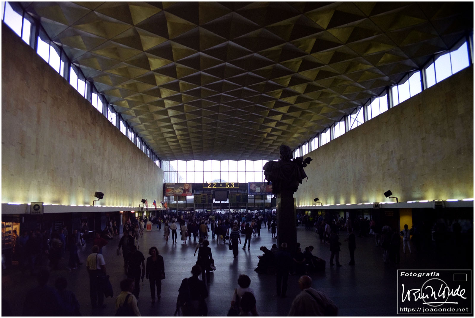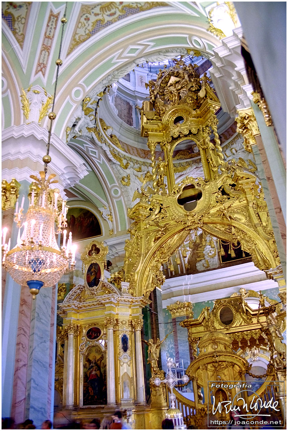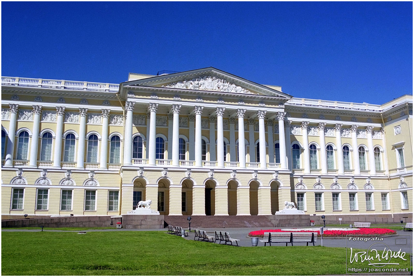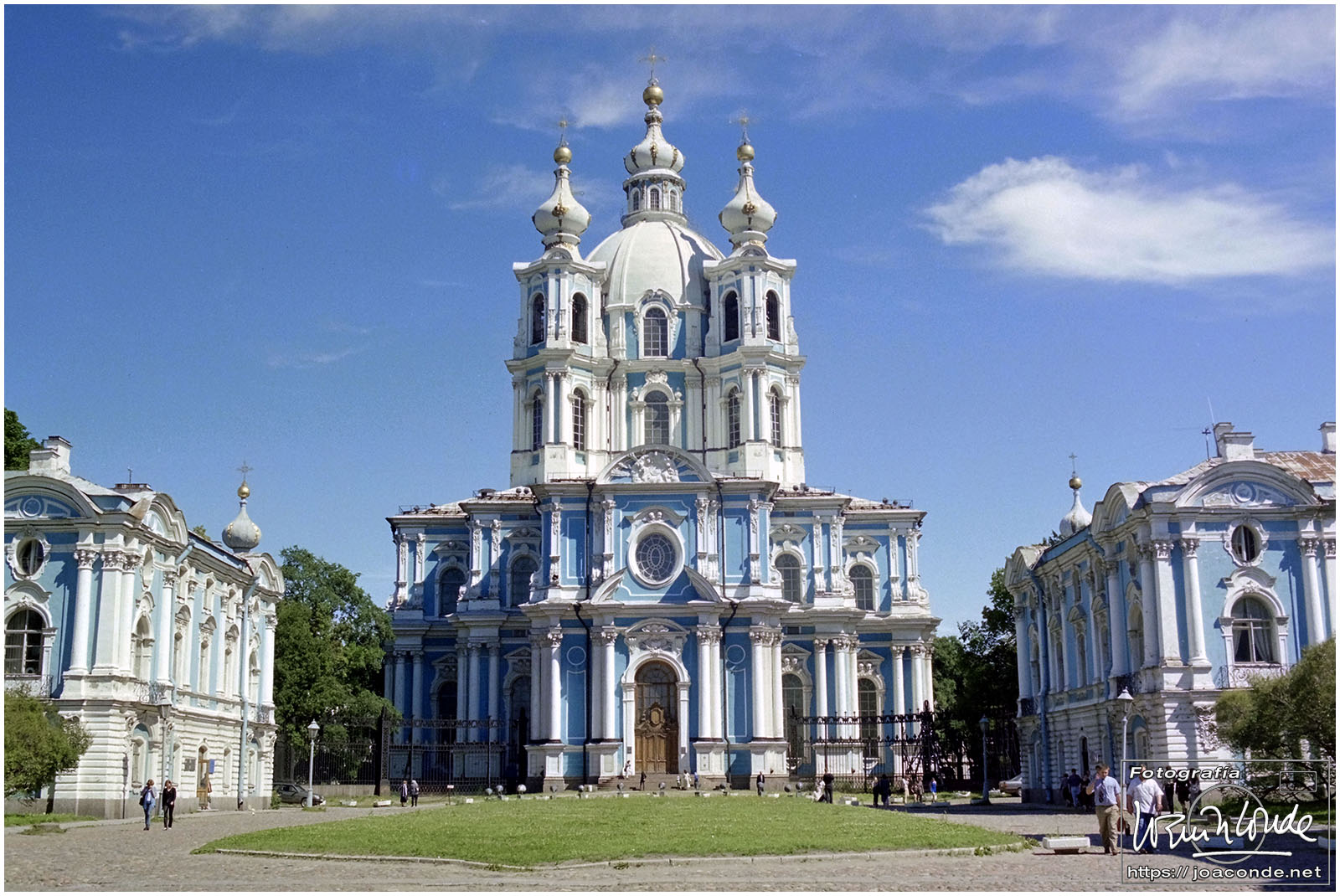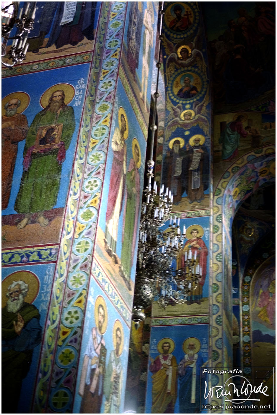 Salimos de San Petersburgo hacia el sureste, al Palacio de Pavlovsk, construido para el zar Pablo I, hijo de Catalina la Grande. Cada vez que entrábamos o salíamos de la ciudad veíamos el Monumento a los Defensores Heroicos de Leningrado. Volvimos al centro a comer, en un restaurante uzbeco. Por la tarde fuimos de nuevo a San Salvador a hacer unas fotos de los frescos; estaba prohibido pero un chico me ayudó tosiendo para que no se escuchara el clic de la cámara 😅. También estuve de tiendas comprando una Lomo 6 x 6 usada. Y a las once de la «noche» salimos en un coche cama hacia Moscú.