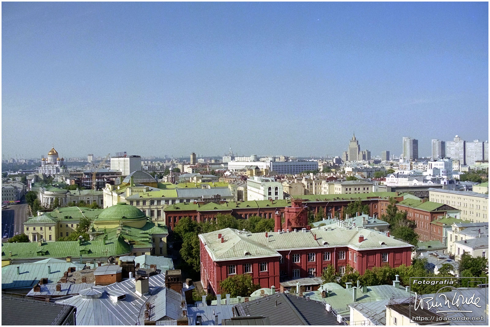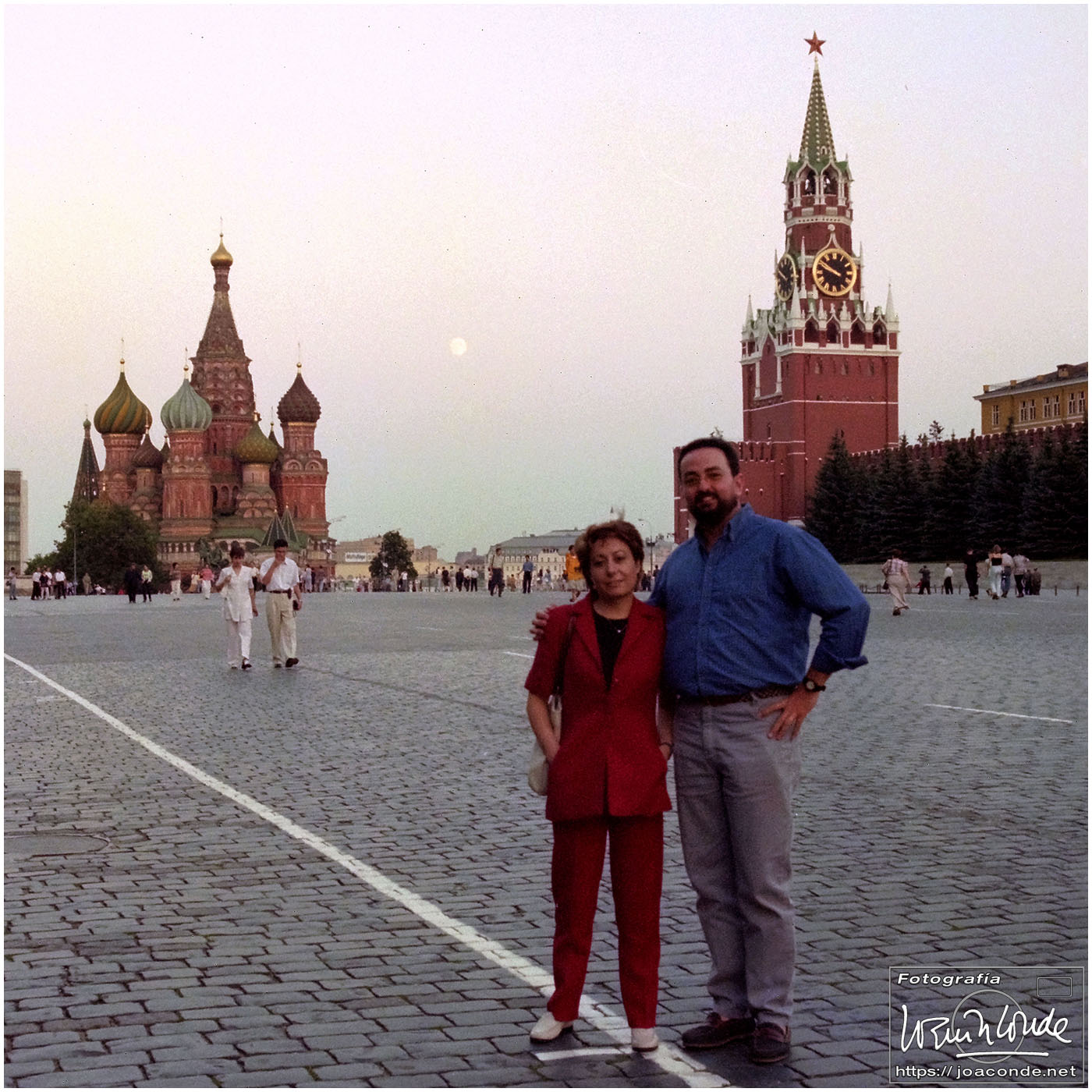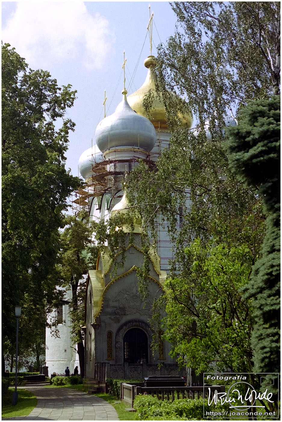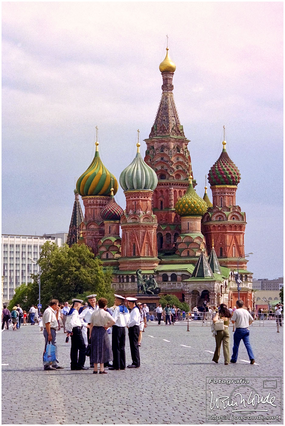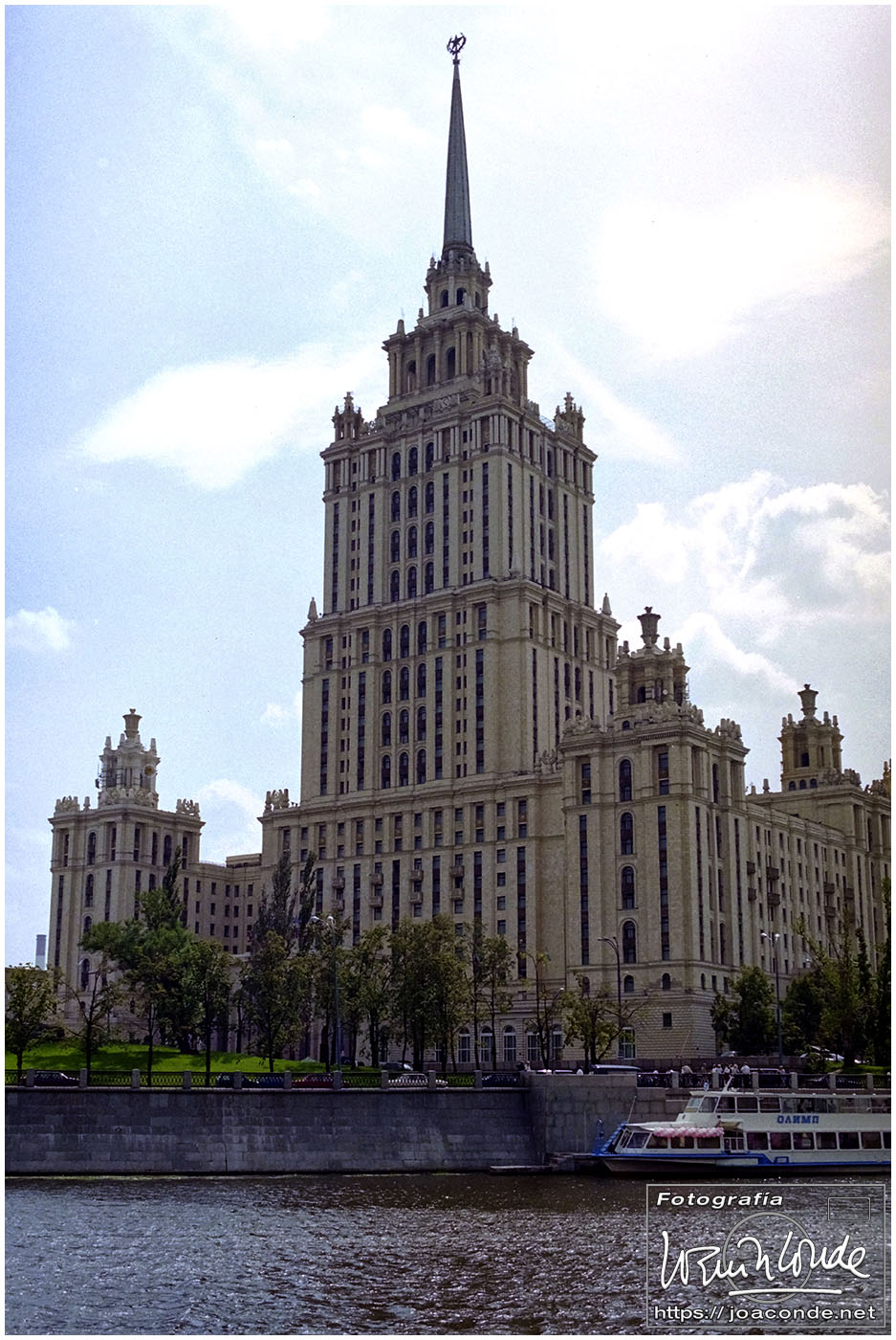 A primera hora llegamos a Moscú y fuimos al Hotel Intourist, un ladrillo en plena Plaza Roja, así que lo primero que vi y retraté fue la Catedral de San Basilio 😍 y la tumba de Lenin 🫤. Dimos una vuelta en bus por la inmensa ciudad, parando en el Convento Novodévichi, una maravilla Patrimonio de la Humanidad. Paseamos por el Parque de la Victoria hasta el Arco de Triunfo de la Plaza Tverskaya. Después comimos en un barco, navegando por el Moscova. Nos recibieron con el pan y la sal, según la tradición eslava. Pasamos delante de la Casa Blanca, del Hotel Ucrania (uno de los siete rascacielos estalinistas) y del Ministerio de Defensa. Mientras, algunos moscovitas se refrescaban en el río.