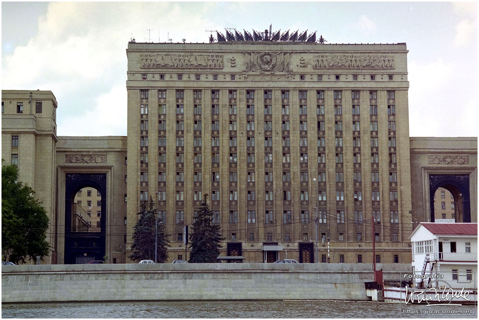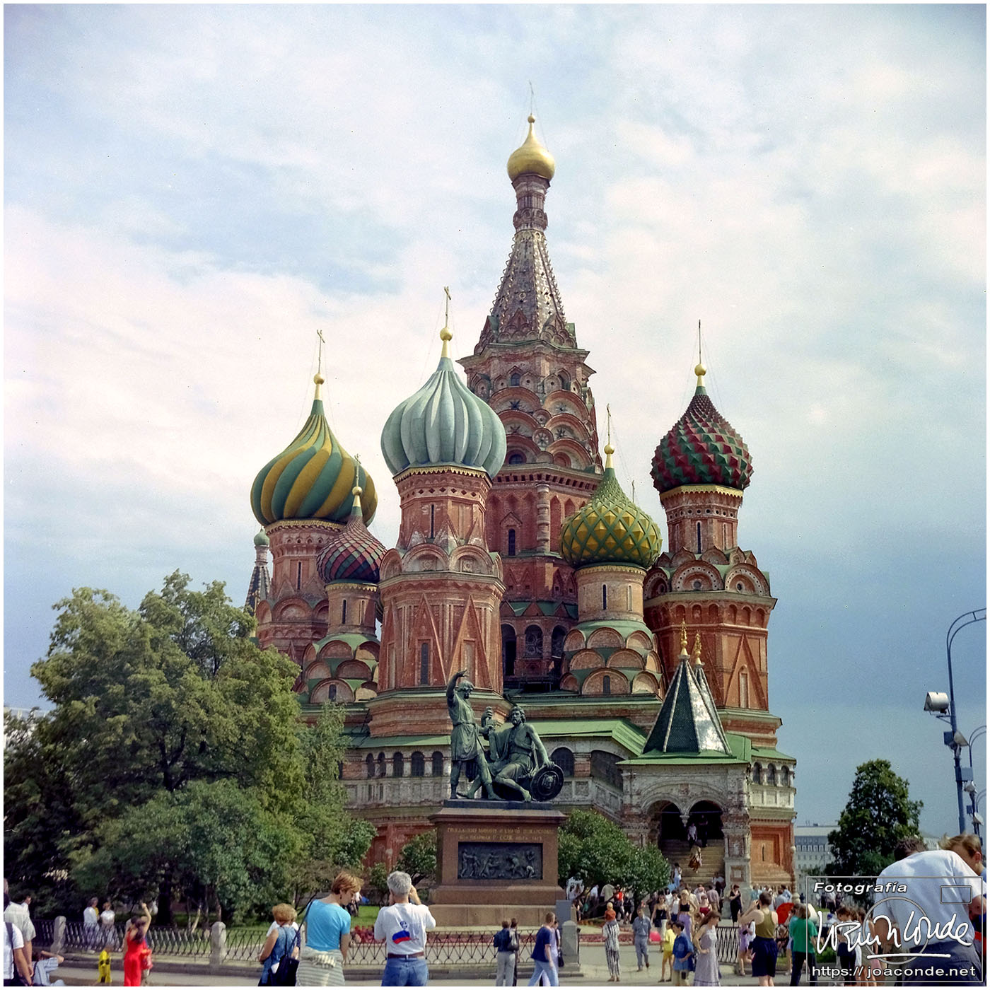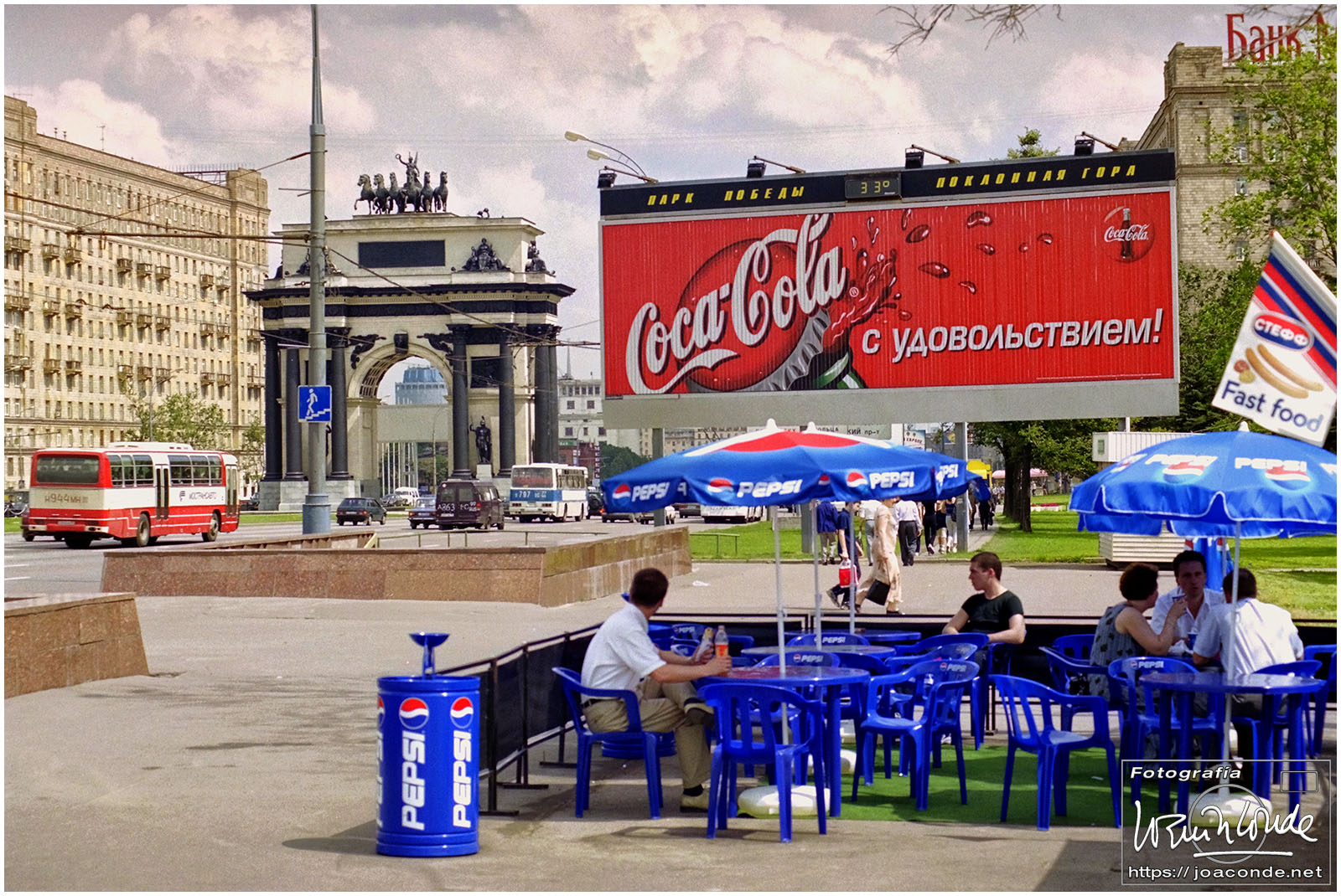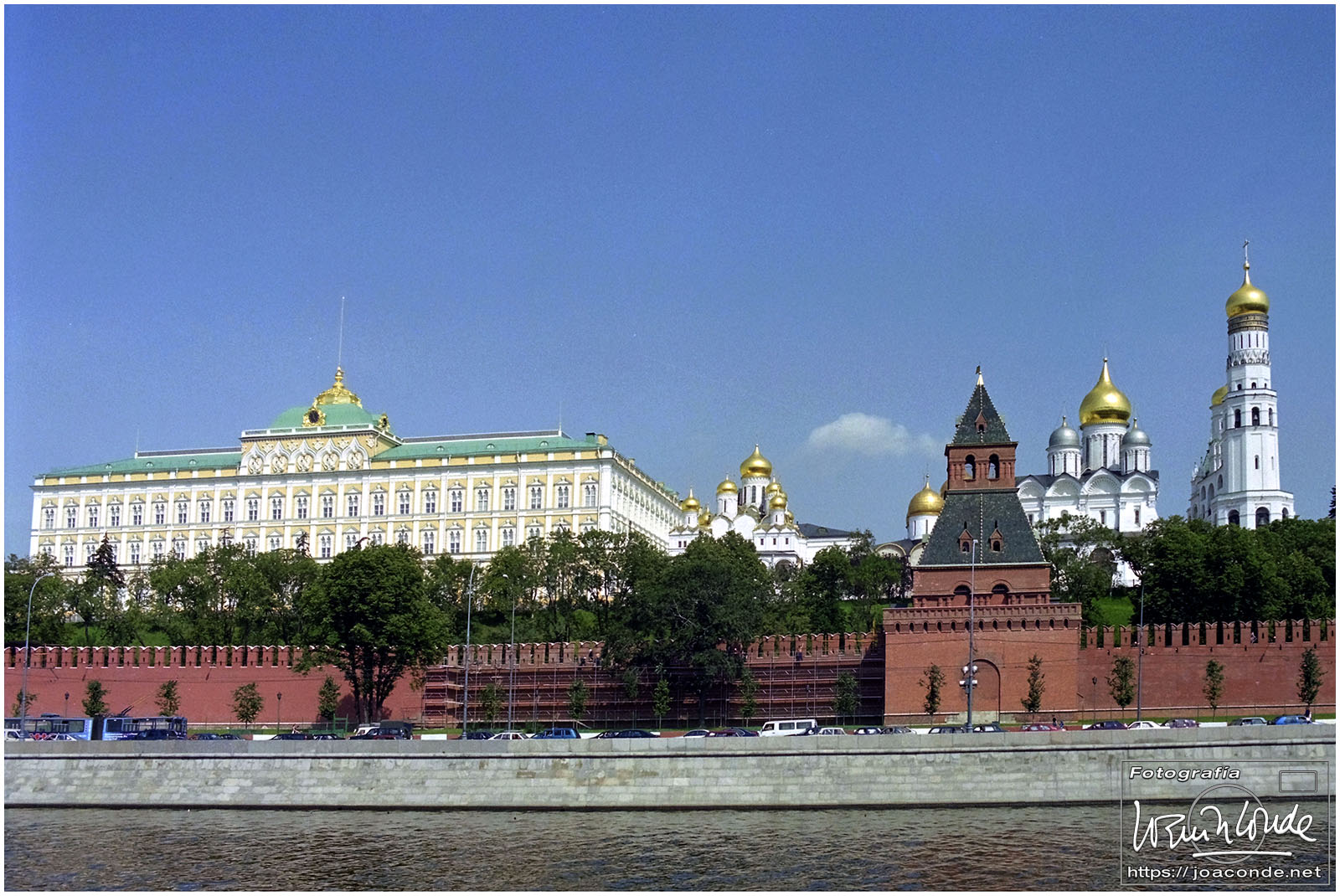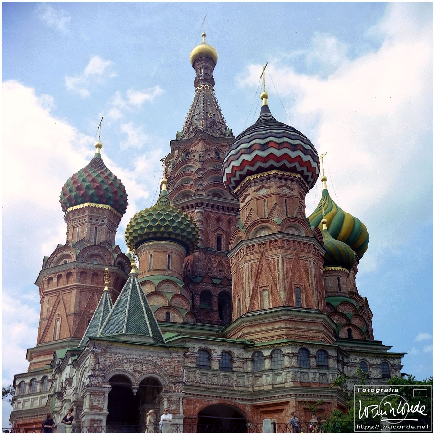 A primera hora llegamos a Moscú y fuimos al Hotel Intourist, un ladrillo en plena Plaza Roja, así que lo primero que vi y retraté fue la Catedral de San Basilio 😍 y la tumba de Lenin 🫤. Dimos una vuelta en bus por la inmensa ciudad, parando en el Convento Novodévichi, una maravilla Patrimonio de la Humanidad. Paseamos por el Parque de la Victoria hasta el Arco de Triunfo de la Plaza Tverskaya. Después comimos en un barco, navegando por el Moscova. Nos recibieron con el pan y la sal, según la tradición eslava. Pasamos delante de la Casa Blanca, del Hotel Ucrania (uno de los siete rascacielos estalinistas) y del Ministerio de Defensa. Mientras, algunos moscovitas se refrescaban en el río.