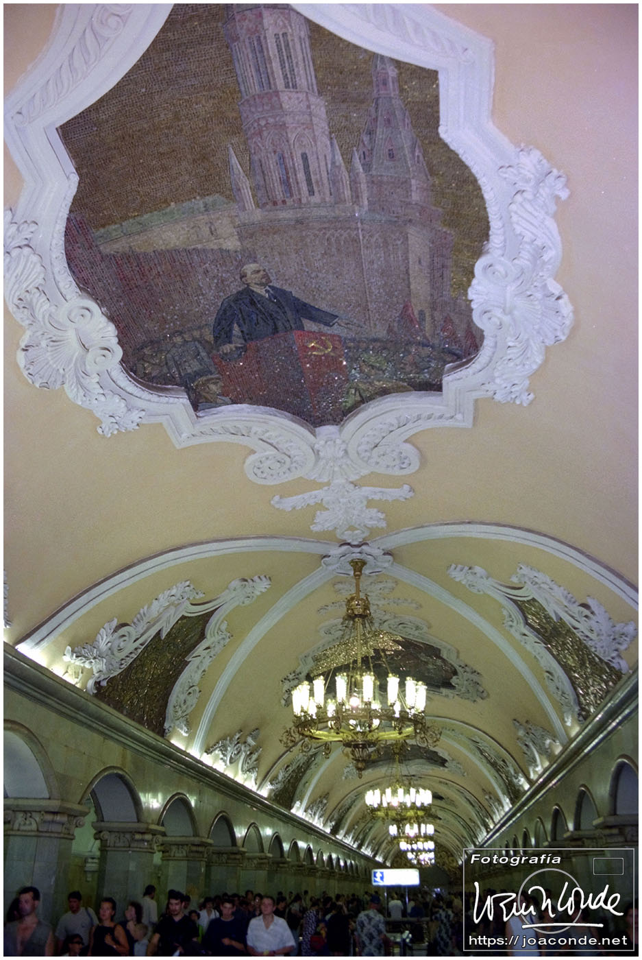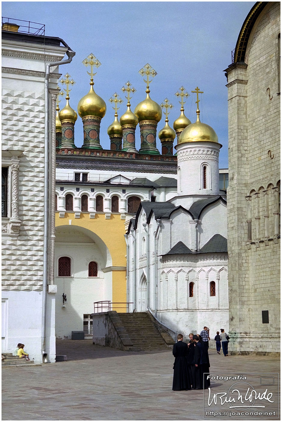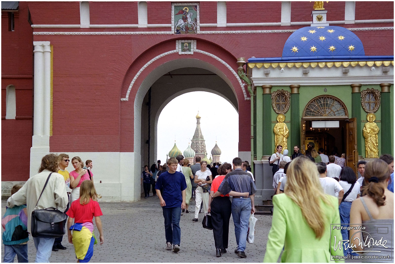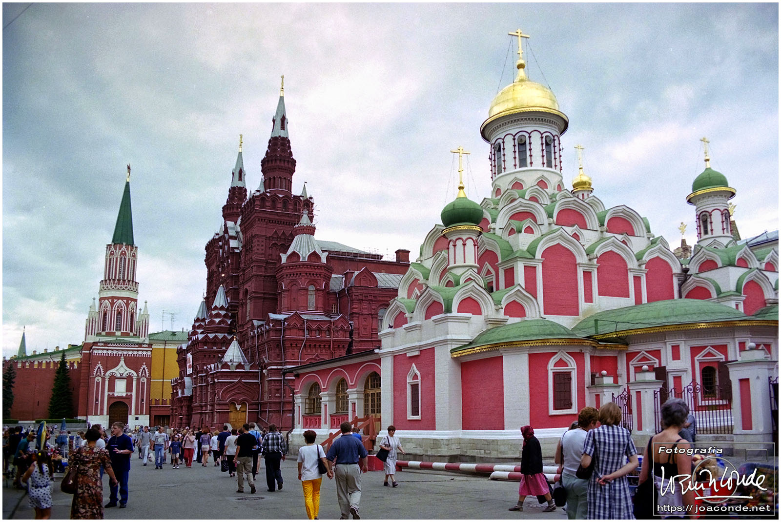 A primera hora llegamos a Moscú y fuimos al Hotel Intourist, un ladrillo en plena Plaza Roja, así que lo primero que vi y retraté fue la Catedral de San Basilio 😍 y la tumba de Lenin 🫤. Dimos una vuelta en bus por la inmensa ciudad, parando en el Convento Novodévichi, una maravilla Patrimonio de la Humanidad. Paseamos por el Parque de la Victoria hasta el Arco de Triunfo de la Plaza Tverskaya. Después comimos en un barco, navegando por el Moscova. Nos recibieron con el pan y la sal, según la tradición eslava. Pasamos delante de la Casa Blanca, del Hotel Ucrania (uno de los siete rascacielos estalinistas) y del Ministerio de Defensa. Mientras, algunos moscovitas se refrescaban en el río.