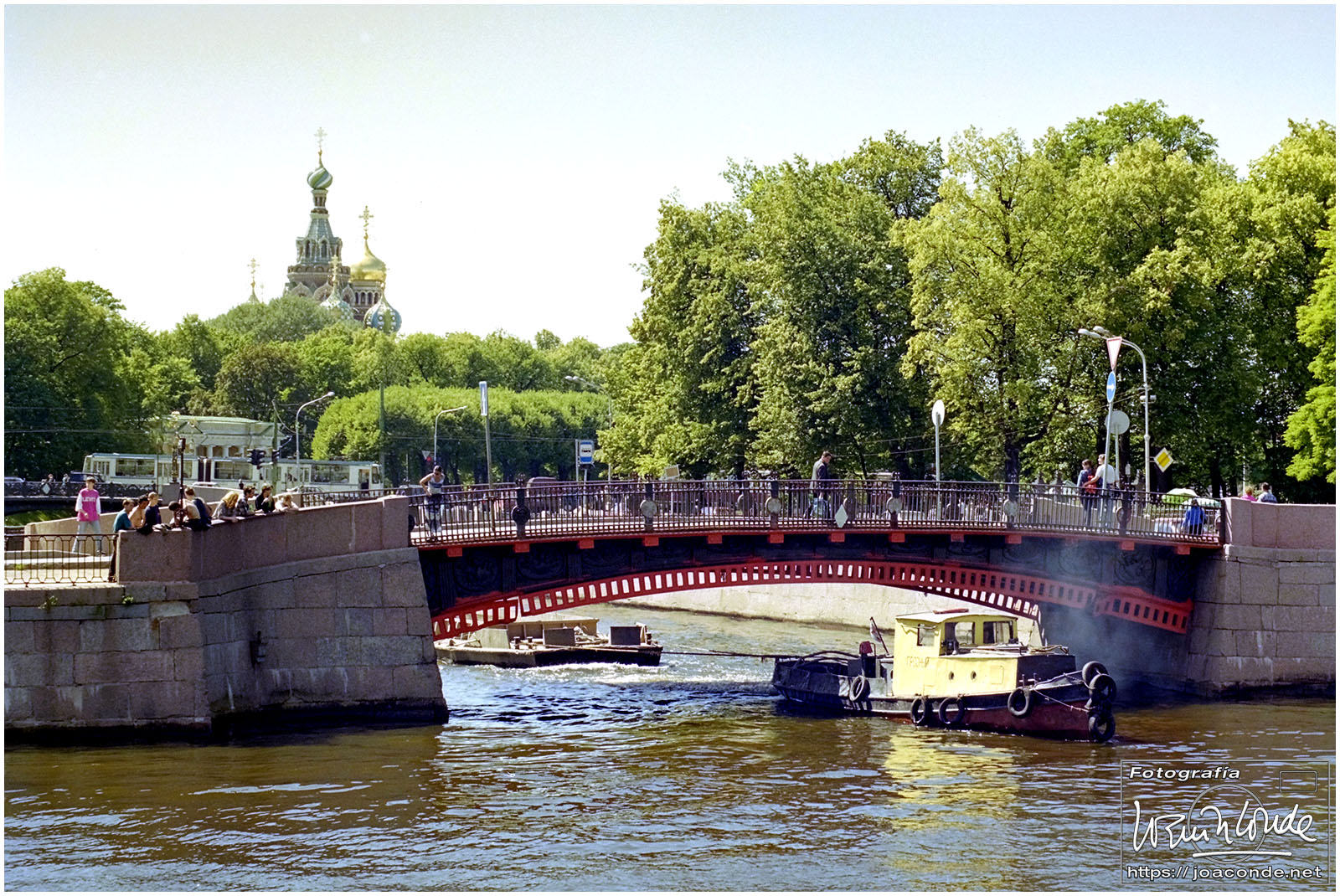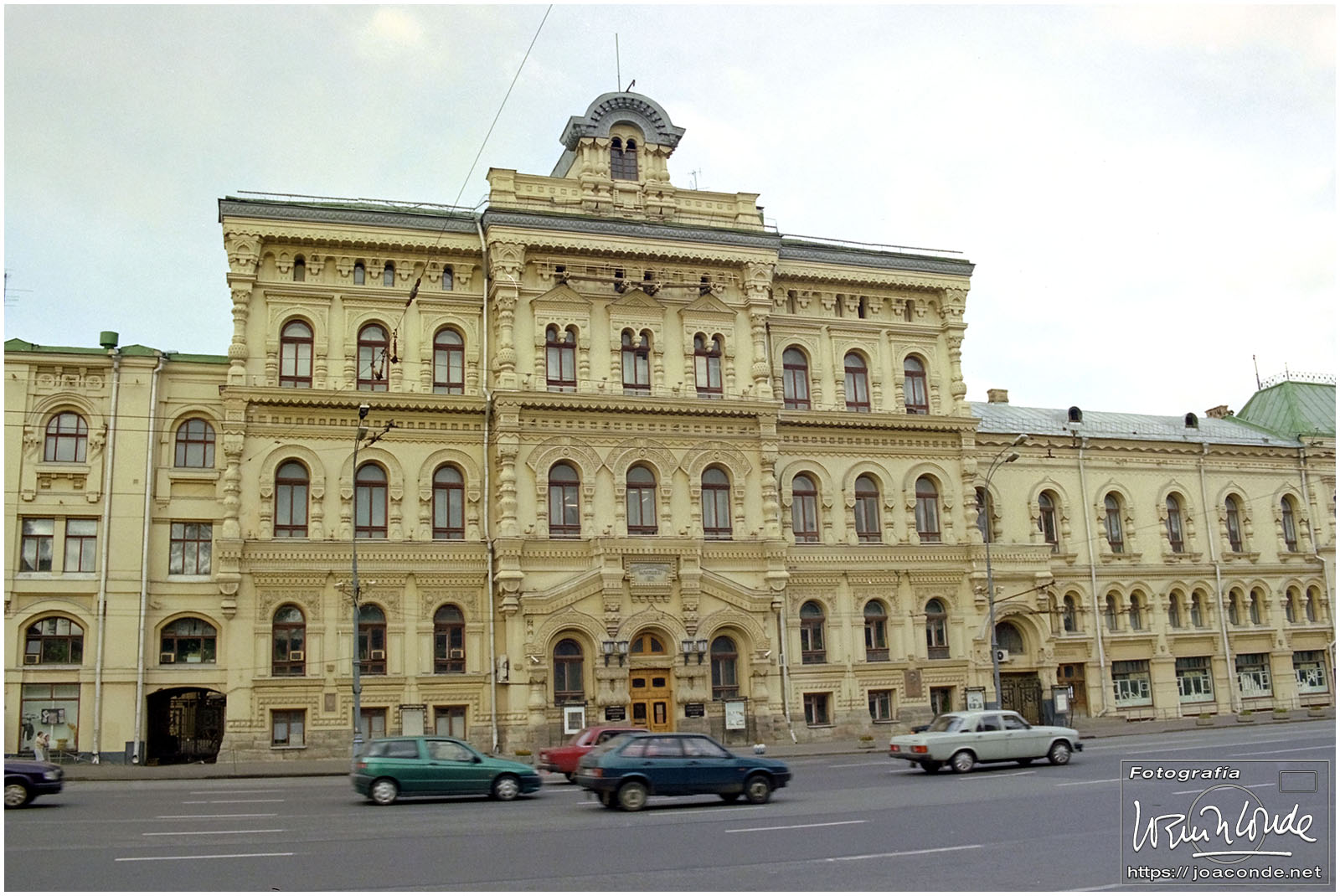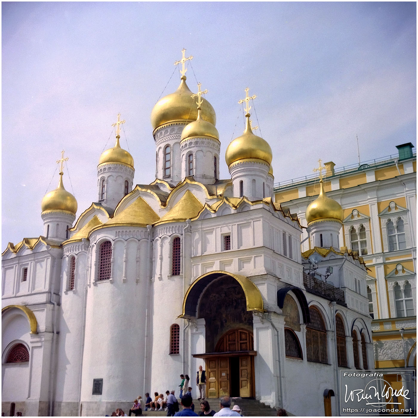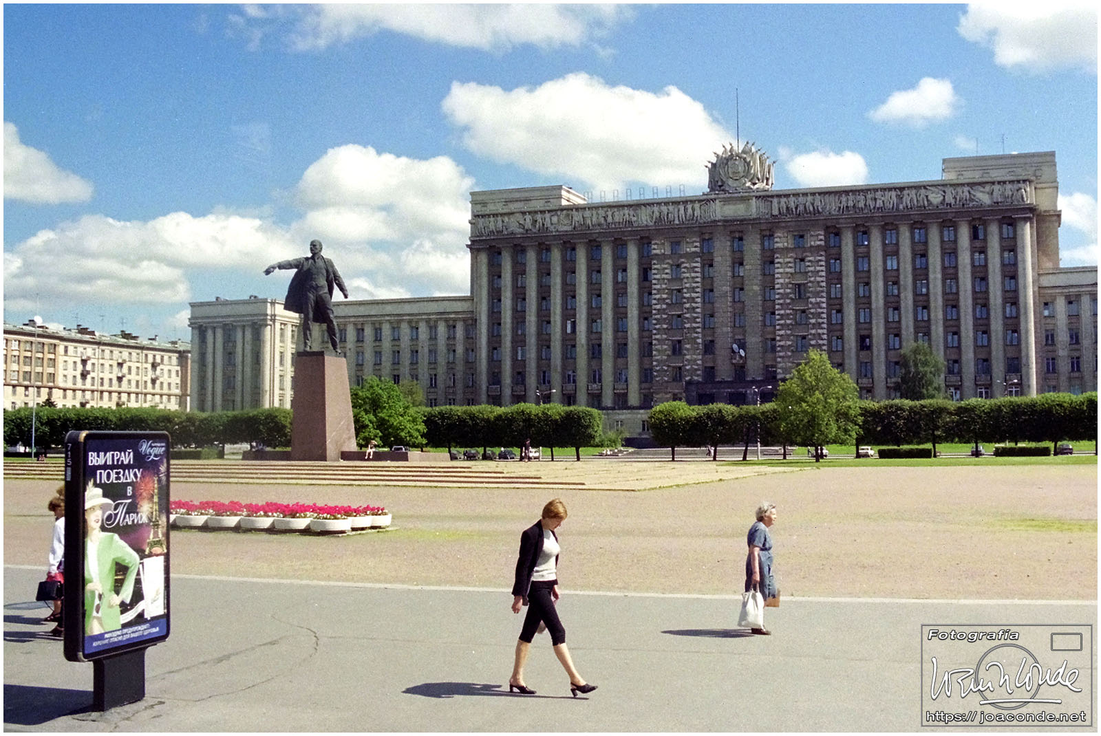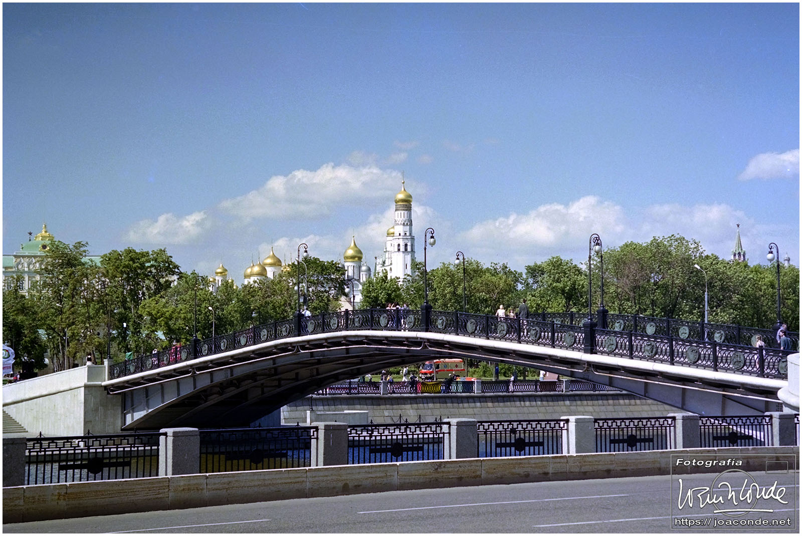 A primera hora llegamos a Moscú y fuimos al Hotel Intourist, un ladrillo en plena Plaza Roja, así que lo primero que vi y retraté fue la Catedral de San Basilio 😍 y la tumba de Lenin 🫤. Dimos una vuelta en bus por la inmensa ciudad, parando en el Convento Novodévichi, una maravilla Patrimonio de la Humanidad. Paseamos por el Parque de la Victoria hasta el Arco de Triunfo de la Plaza Tverskaya. Después comimos en un barco, navegando por el Moscova. Nos recibieron con el pan y la sal, según la tradición eslava. Pasamos delante de la Casa Blanca, del Hotel Ucrania (uno de los siete rascacielos estalinistas) y del Ministerio de Defensa. Mientras, algunos moscovitas se refrescaban en el río.