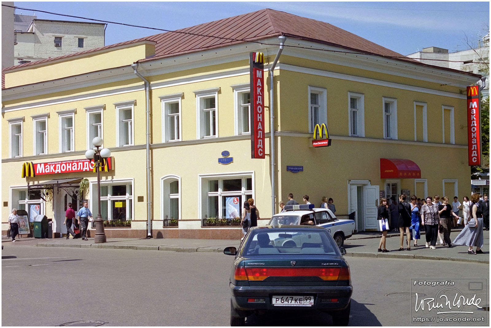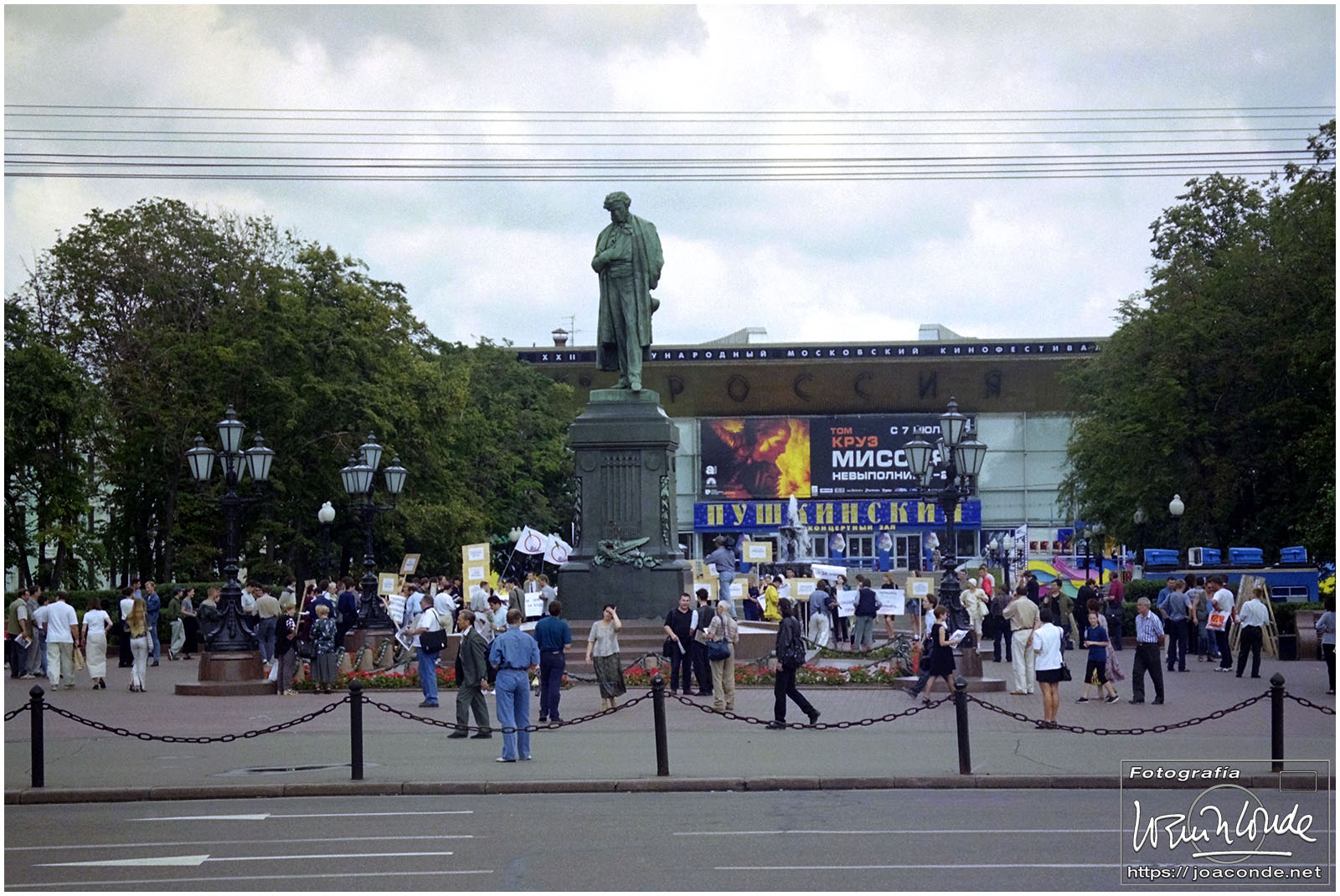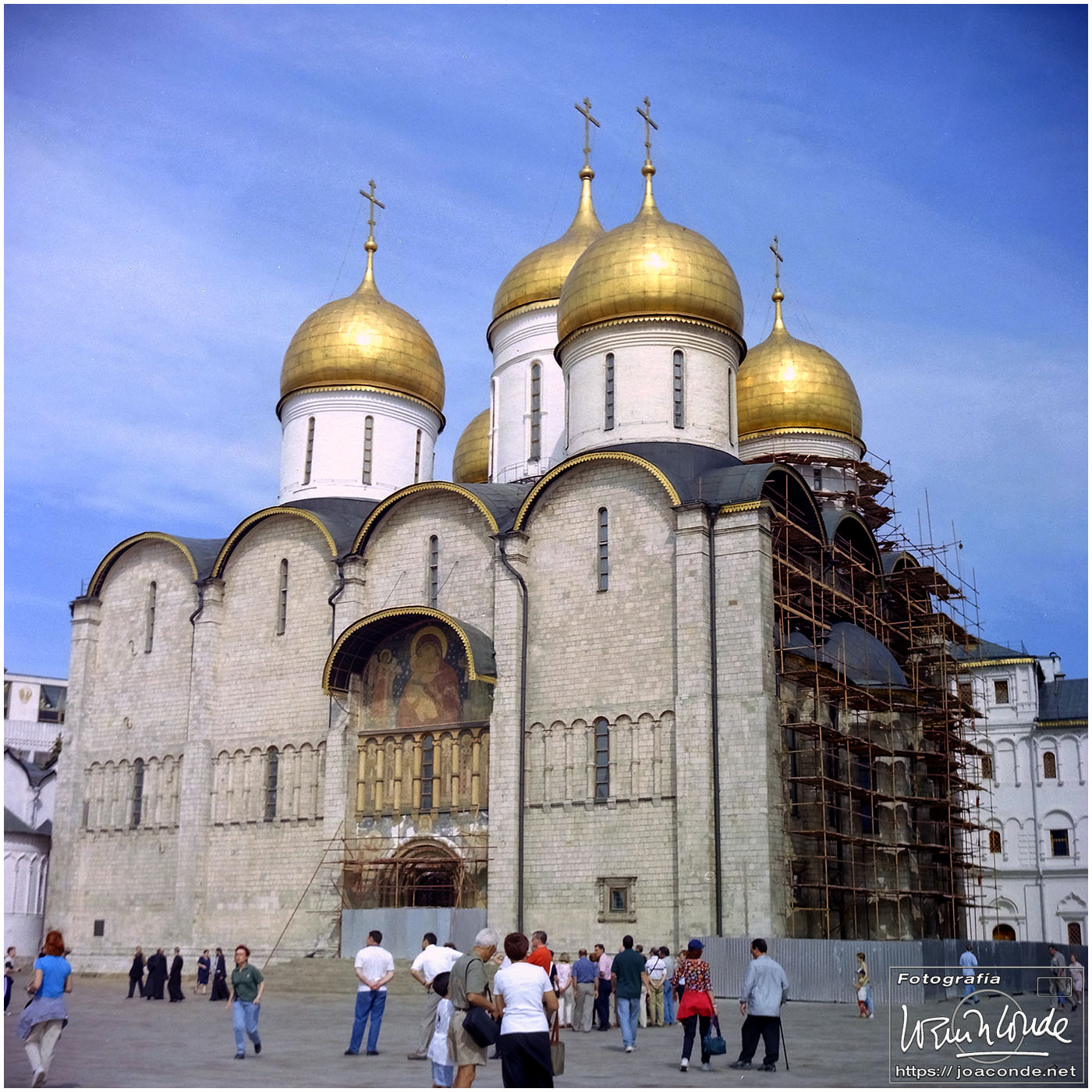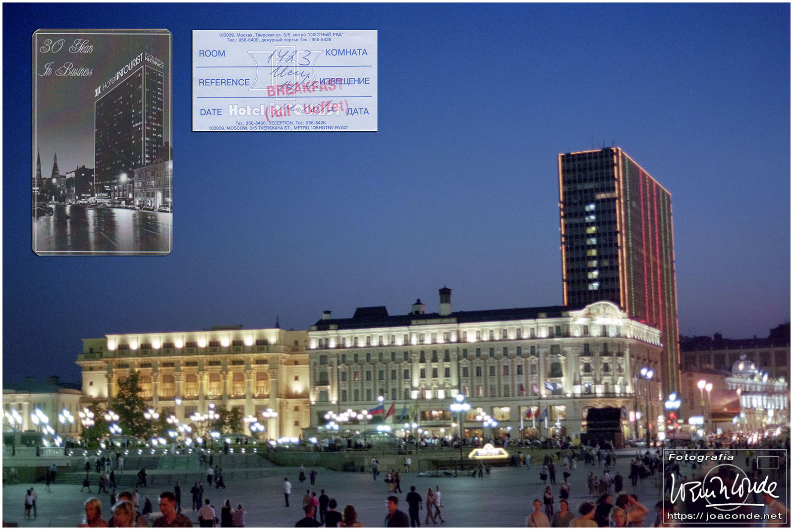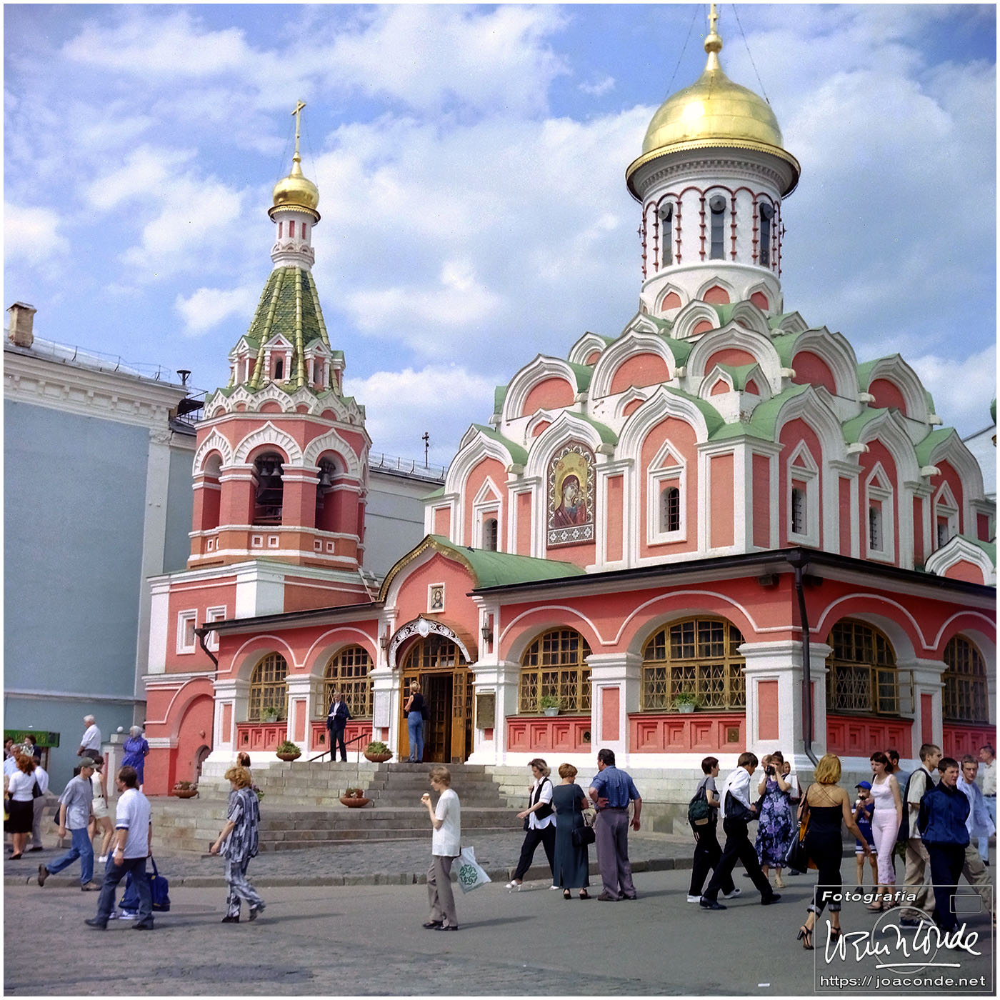 A primera hora llegamos a Moscú y fuimos al Hotel Intourist, un ladrillo en plena Plaza Roja, así que lo primero que vi y retraté fue la Catedral de San Basilio 😍 y la tumba de Lenin 🫤. Dimos una vuelta en bus por la inmensa ciudad, parando en el Convento Novodévichi, una maravilla Patrimonio de la Humanidad. Paseamos por el Parque de la Victoria hasta el Arco de Triunfo de la Plaza Tverskaya. Después comimos en un barco, navegando por el Moscova. Nos recibieron con el pan y la sal, según la tradición eslava. Pasamos delante de la Casa Blanca, del Hotel Ucrania (uno de los siete rascacielos estalinistas) y del Ministerio de Defensa. Mientras, algunos moscovitas se refrescaban en el río.