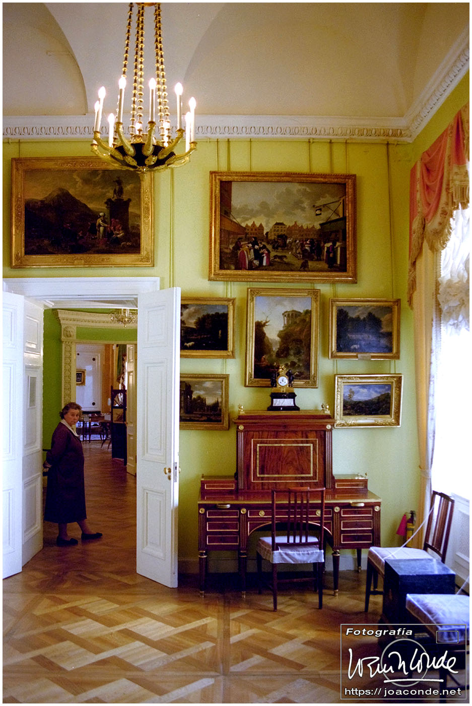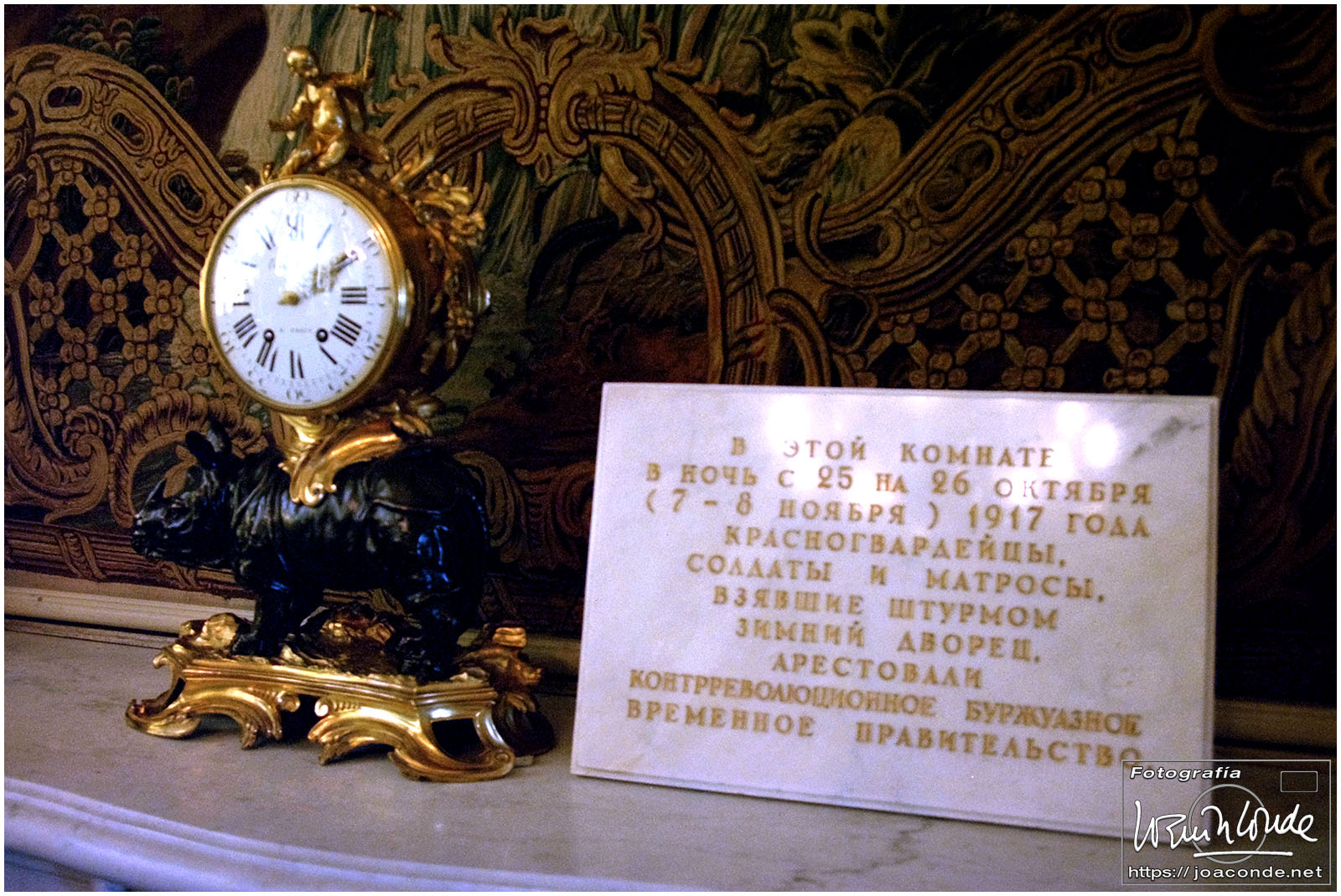 El Hermitage, además de ser un palacio enorme —150 m de largo— albergaba una colección formada por más de tres millones de piezas, antigüedades, cuadros y esculturas de la Europa Occidental, arte oriental, piezas arqueológicas, arte ruso, joyas y armas. Allí estaba el reloj parado a las 2:10 desde la noche del 25 al 26 de octubre de 1917, triunfo de la Revolución. Y también la mayor colección de pintura española del Siglo de Oro fuera de nuestras fronteras, que llegó al Hermitage en 1814, al final de la guerra de la Independencia. Hice muchísimas diapositivas para mis clases.