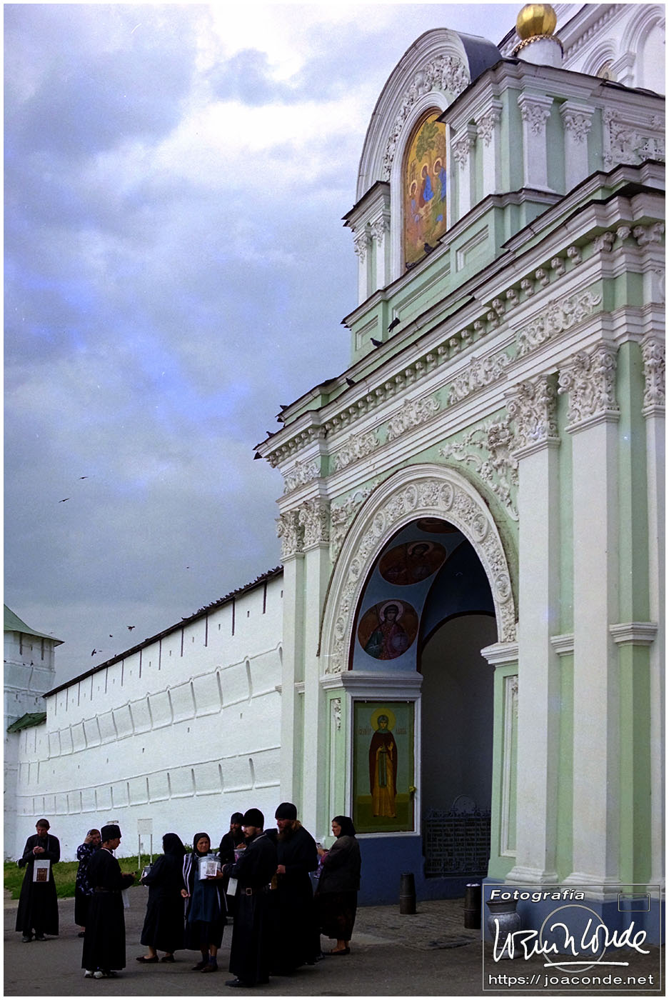 Fuimos de excursión al Monasterio de San Sergio, Patrimonio de la Humanidad, unos 70 km al norte de Moscú. Por el camino paramos en Radonezh, en la Iglesia de la Transfiguración, pero estaban celebrando un oficio y no pudimos pasar. Esa zona estaba llena de dachas, o casas de campo. San Sergio era el monasterio más importante de la iglesia ortodoxa. No se podían hacer fotos, pero alguna se me escapó 😉.