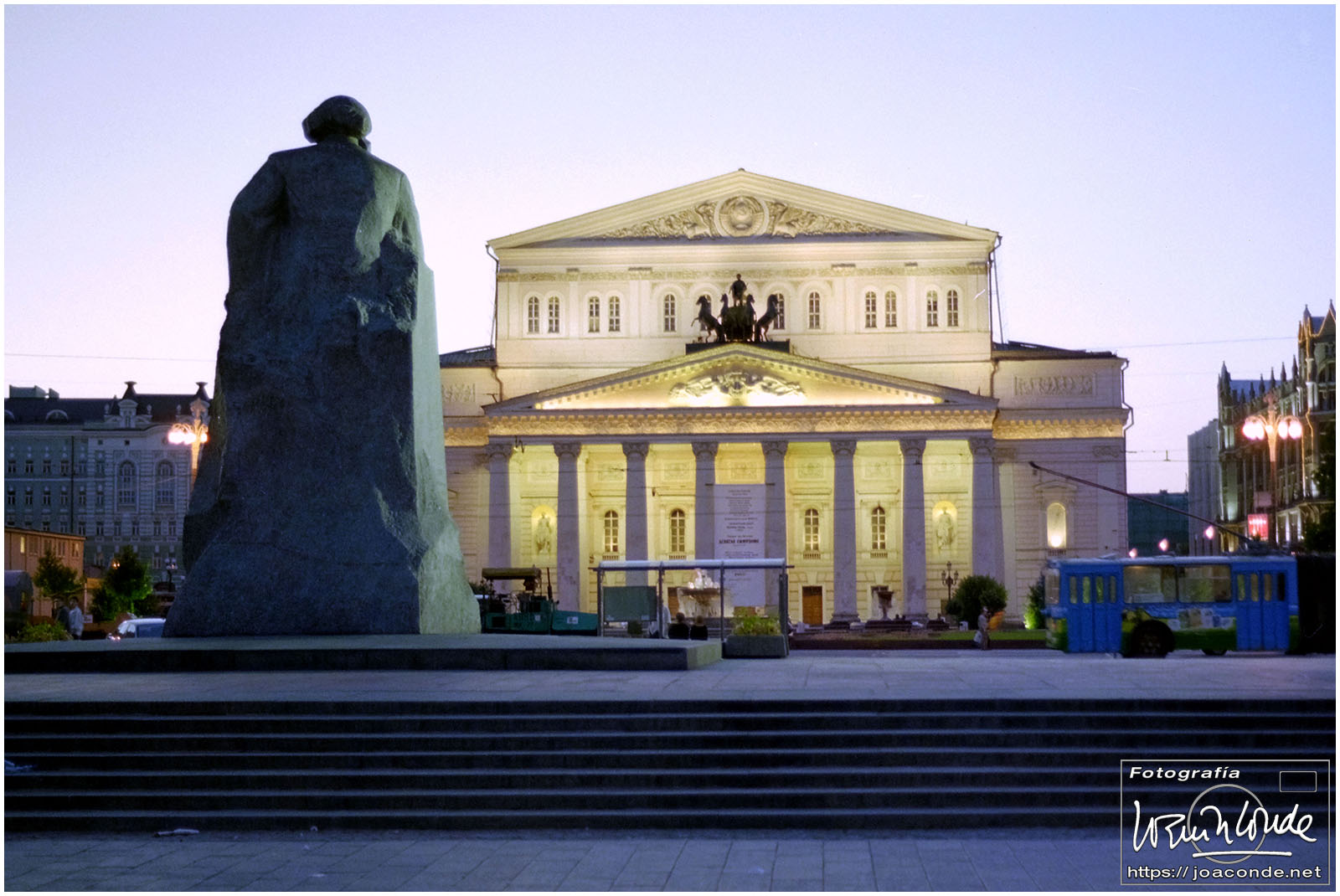 De regreso a Moscú pasamos por Koroliov, llamada así en honor al científico del mismo nombre y famosa por su centro de Construcción Aeroespacial. El resto de la tarde paseamos por los alrededores del hotel; las manzanas que se veían pequeñitas en el plano, eran infinitas cuando las recorríamos. Vimos el Gran Teatro (Bolshói en ruso), la estatua de Marx, el Okhotny Ryad —centro comercial impresionante—, y naturalmente nuestra «plaza bonita«, con la siempre deslumbrante Catedral de San Basilio.