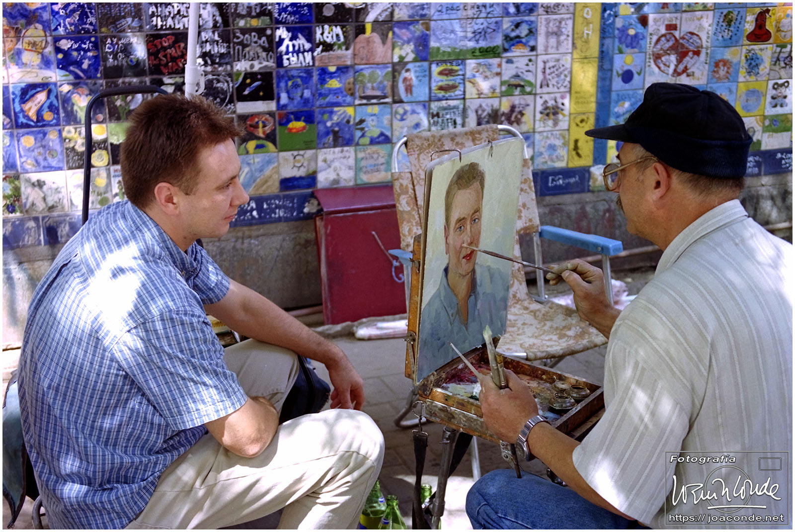 El último día en Rusia hicimos una visita imprescindible: el Kremlin de Moscú. Fue impresionante; nada más atravesar sus murallas, cuatro palacios y cuatro catedrales, cañonazos y campanazas. Después, a media mañana paseamos por el Arbat, un barrio céntrico de bohemios. Era difícil orientarse; en San Petersburgo había algunos letreros en cristiano, pero aquí, todos estaban en ruso. Vimos soldados, punkis, hare krishnas y muchos, muchos artistas; a uno de ellos le compramos un cuadrito de San Basilio, hecho con acuarela y bolígrafo.