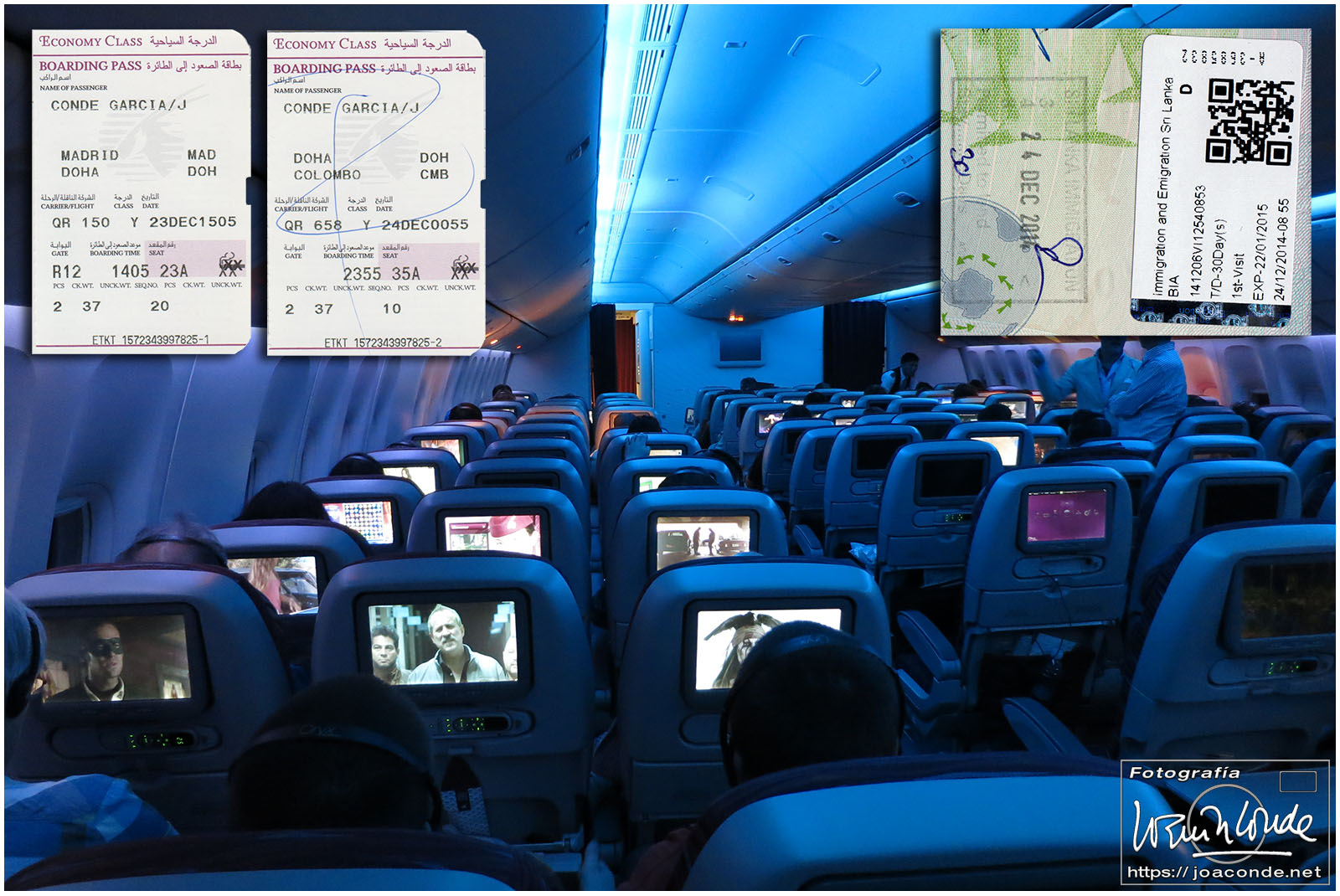 Volamos con Qatar , vía Doha, a mediodía del 23 de diciembre. En Colombo hicimos los trámites de inmigración y más tarde nos dirigimos al Chaaya Vilage, en Habarana, donde celebramos la Nochebuena.