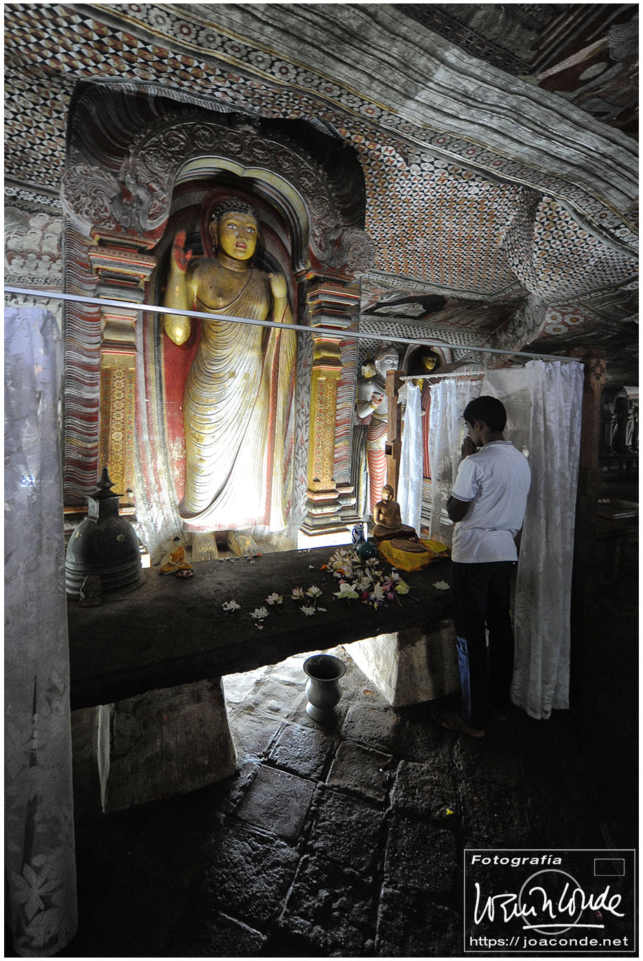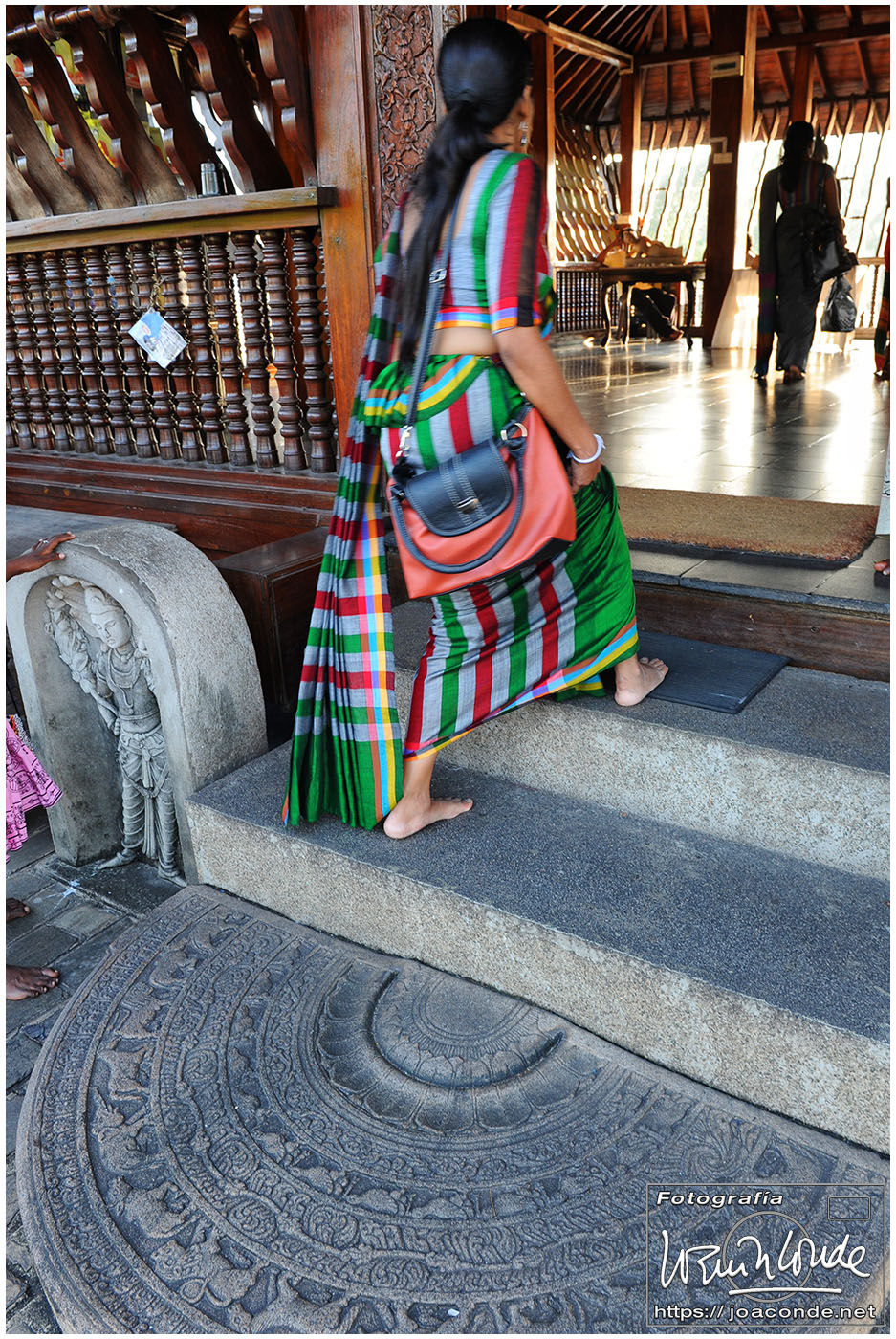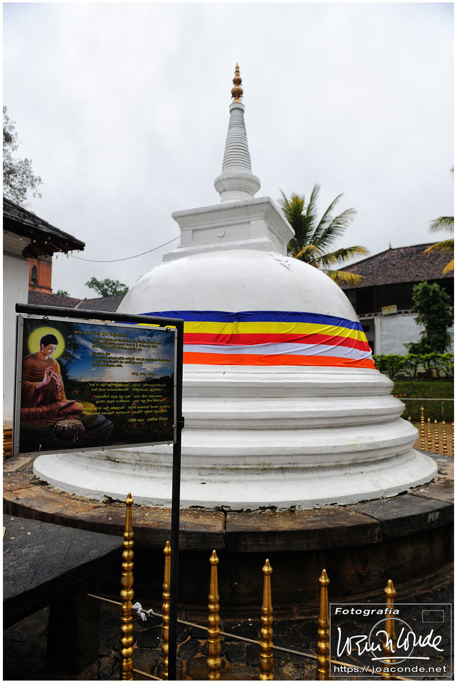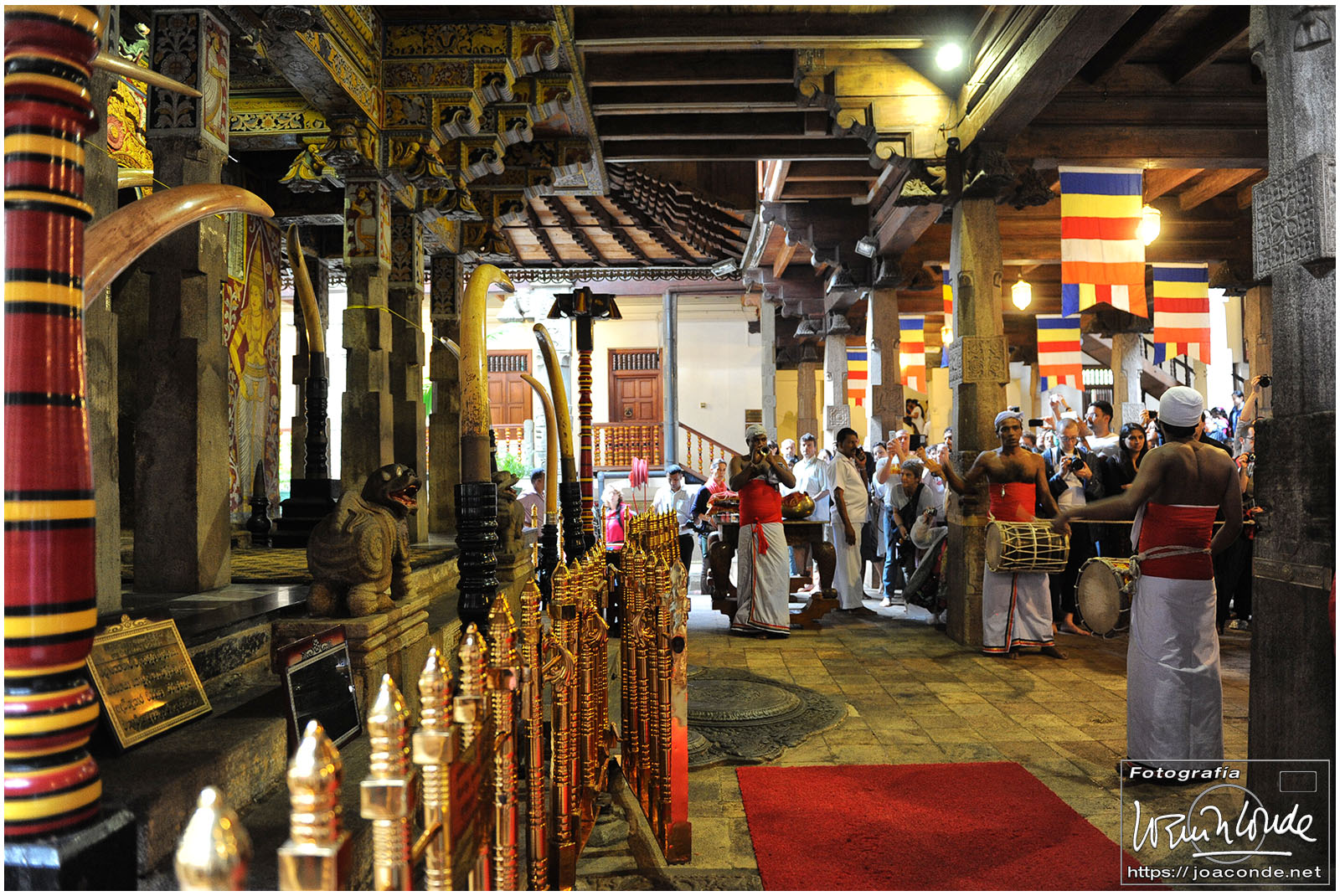 Un lugar que me impactó especialmente en Sri Lanka fue el Templo del Diente de Buda, Sri Dalada Maligawa, en la ciudad de Kandy. Cada día, desde muy temprano, acudían al templo miles de devotos para venerar la reliquia. La multitud se dirigía a la primera planta del templo, donde se guardaba el diente original, traído desde India en el s. IV a.d.C. Durante unos momentos inenarrables, la energía de la reliquia o los cientos de fieles que empujaban 😉, me levantaron los pies del suelo. No sé cómo pude pude hacer las fotos.