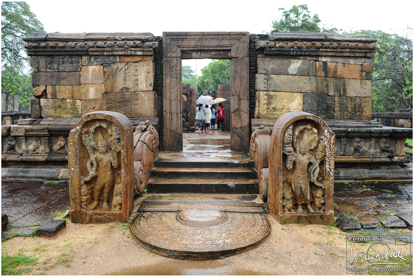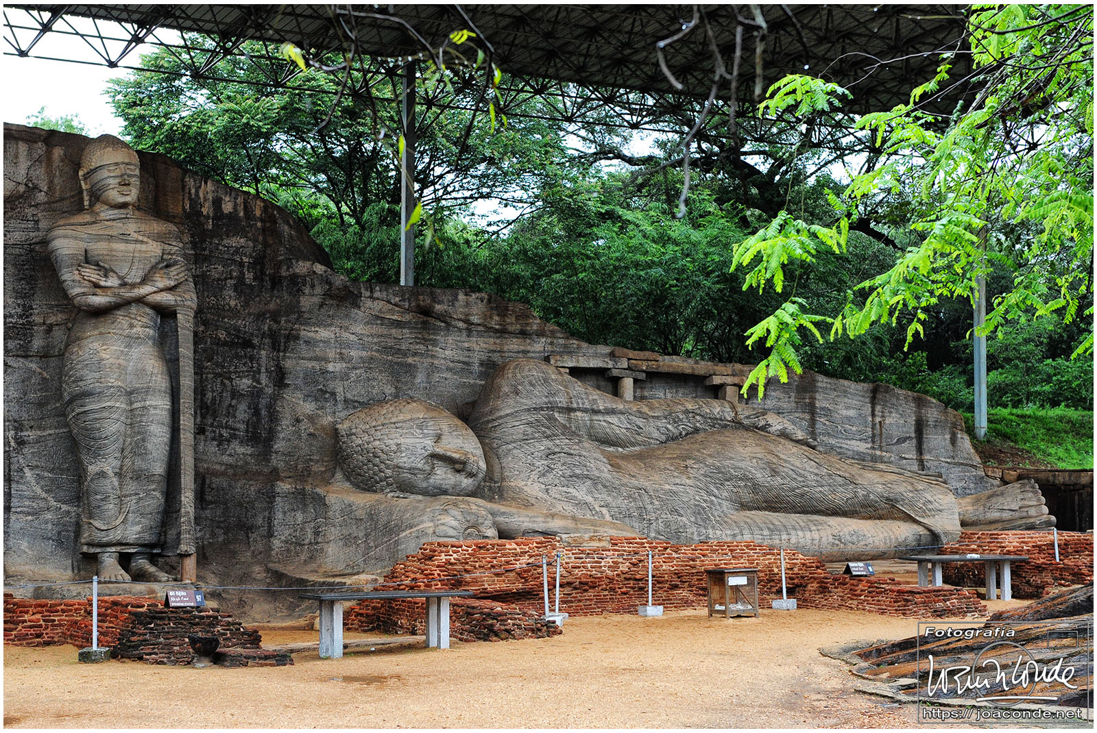 Amaneció muy lluvioso. Ese día visitamos dos maravillas que eran Patrimonio de la Humanidad: La Roca del León de Sigiriya y los Budas de Gal Vihara en Polonnaruwa. Primero ascendemos a la enorme roca en la que estaban excavadas varias estancias. Una escalinata metálica permitía acceder a la galería de los frescos (del s. V) donde estaban representadas una veintena de doncellas.