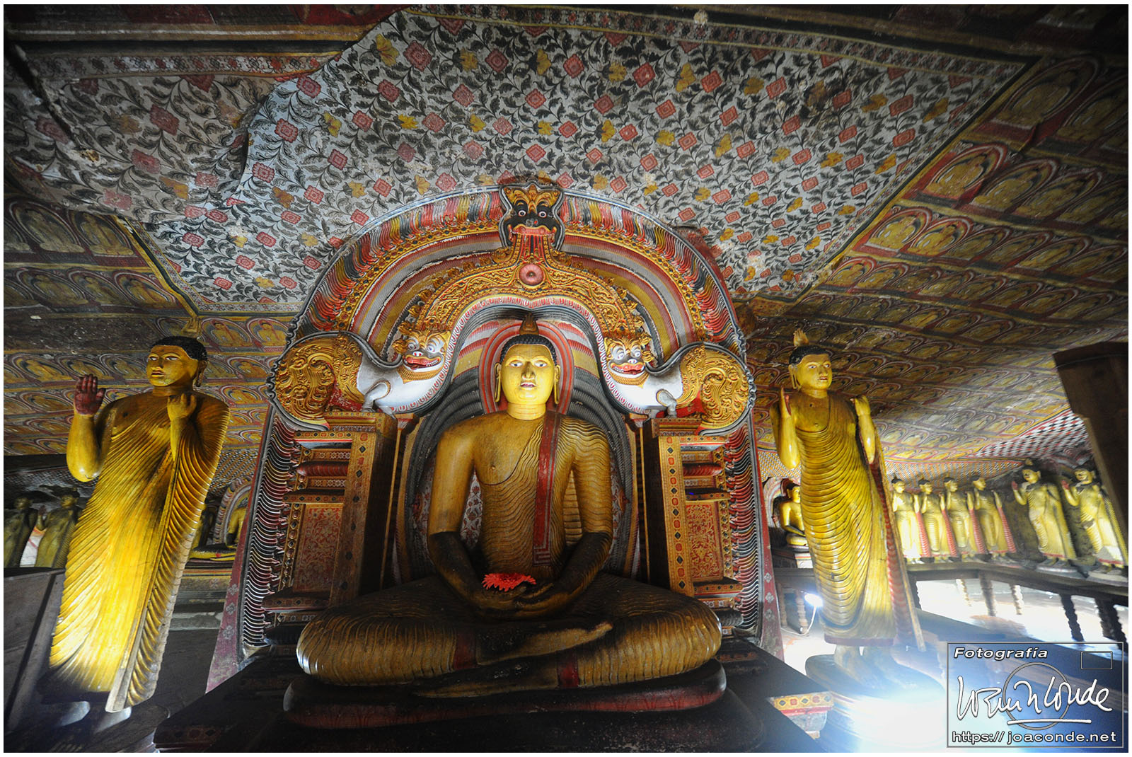 El Templo de Oro de Dambulla, también Patrimonio de la Humanidad, era el complejo de cuevas y monasterios más grande y mejor conservado de Sri Lanka. Parecía que no había pasado el tiempo desde su construcción. Perfectamente ubicadas en las cinco cuevas, descubrí centenares de figuras de Buda y otras deidades hinduistas. El silencio y la semioscuridad invitaban al recogimiento. Por la tarde asistimos a un espectáculo de bailes locales, ya en la ciudad de Kandy. De vuelta al hotel, caía un aguacero impresionante.
